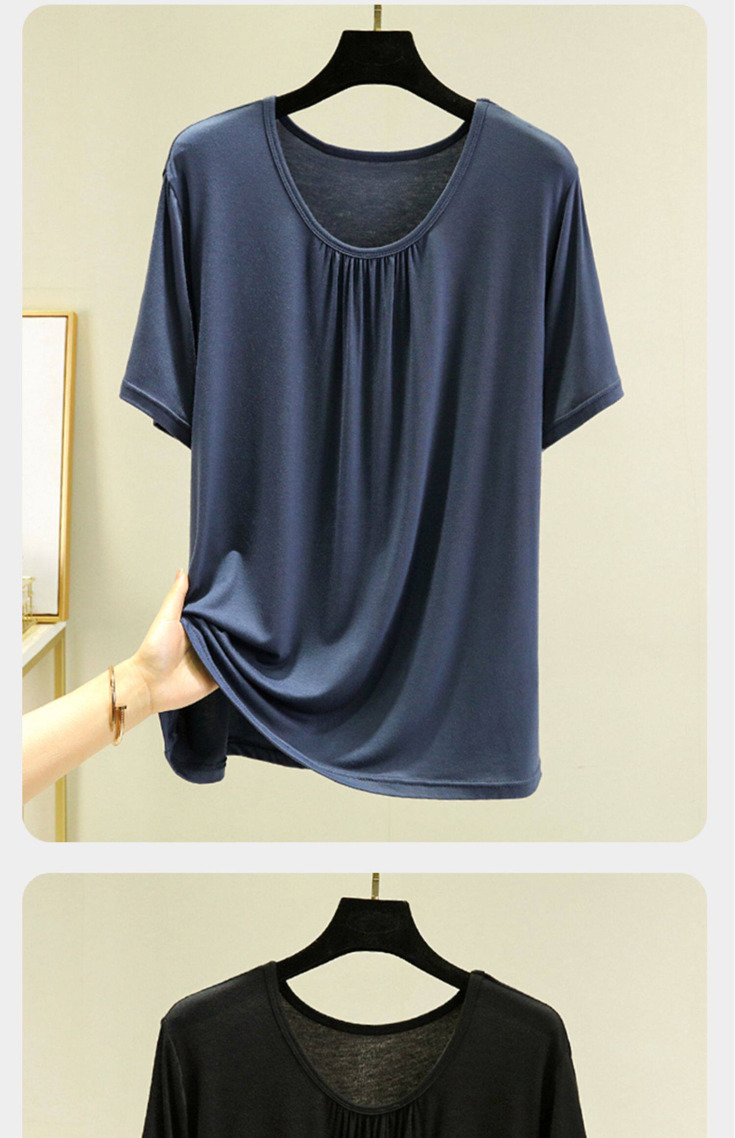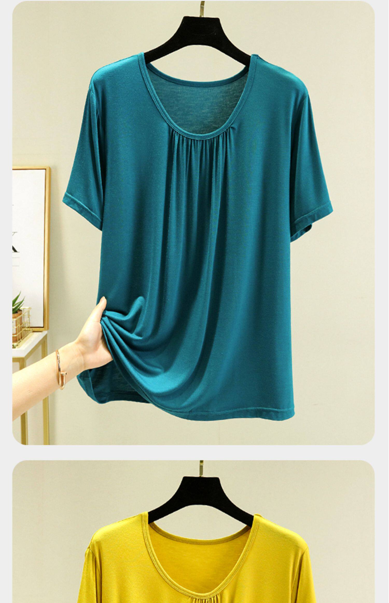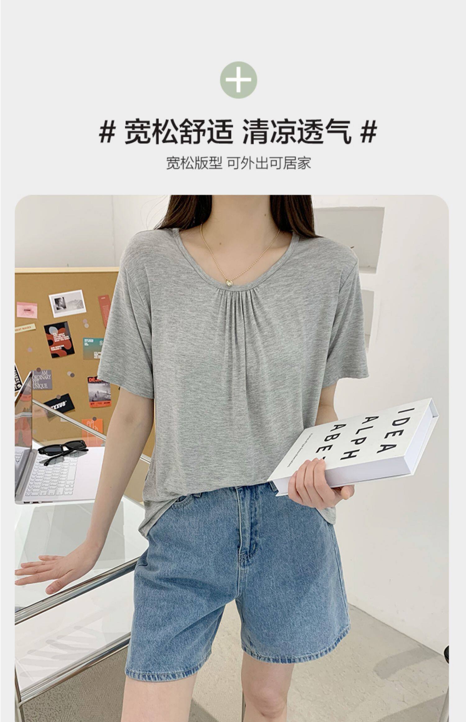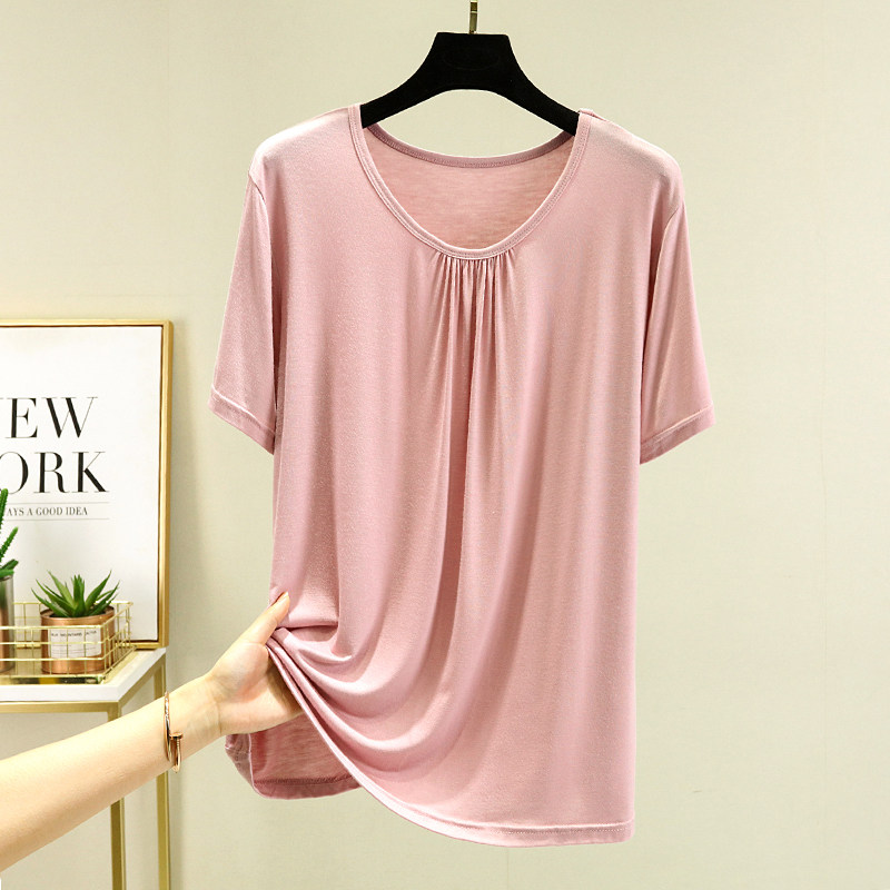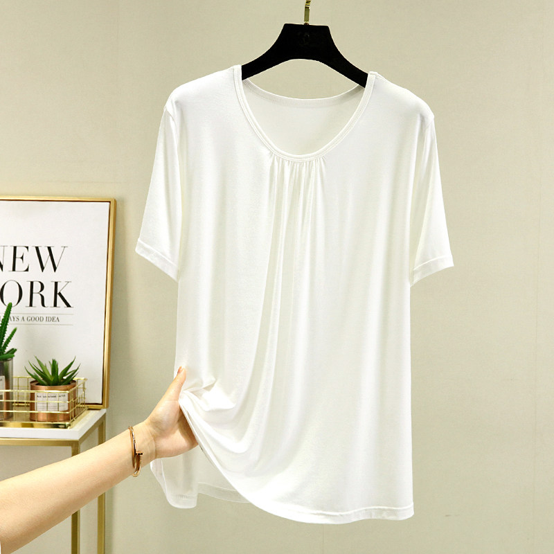 Однотонная футболка с коротким рукавом, белье для повседневной носки с круглым воротником, большой размер, свободный крой, короткий рукав