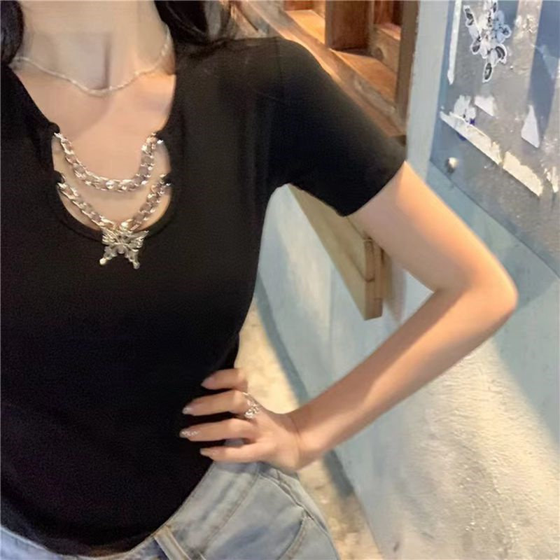 Брендовая короткая футболка, сексуальные черные штаны, популярно в интернете, 2026 года, высокая талия