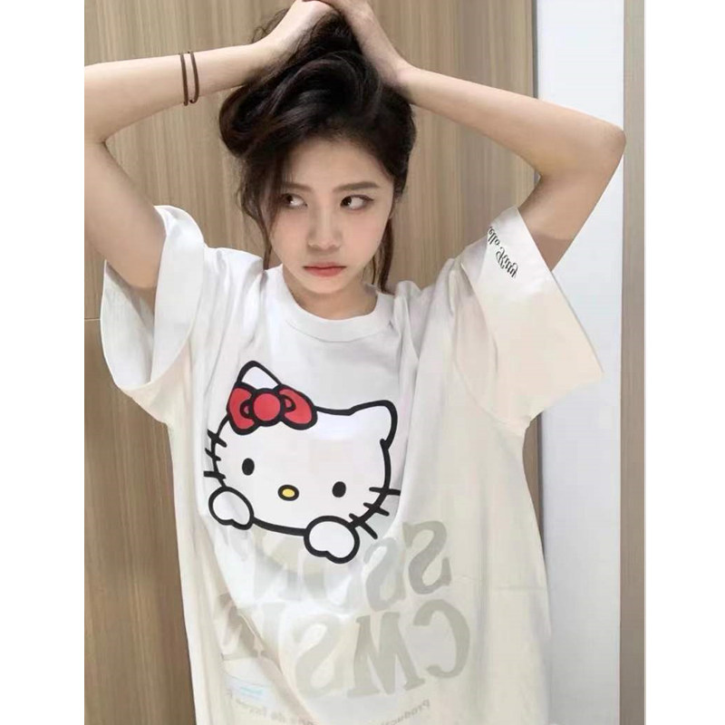Hello kitty, Tide, японская хлопковая дизайнерская футболка с коротким рукавом, этнический стиль, тренд сезона