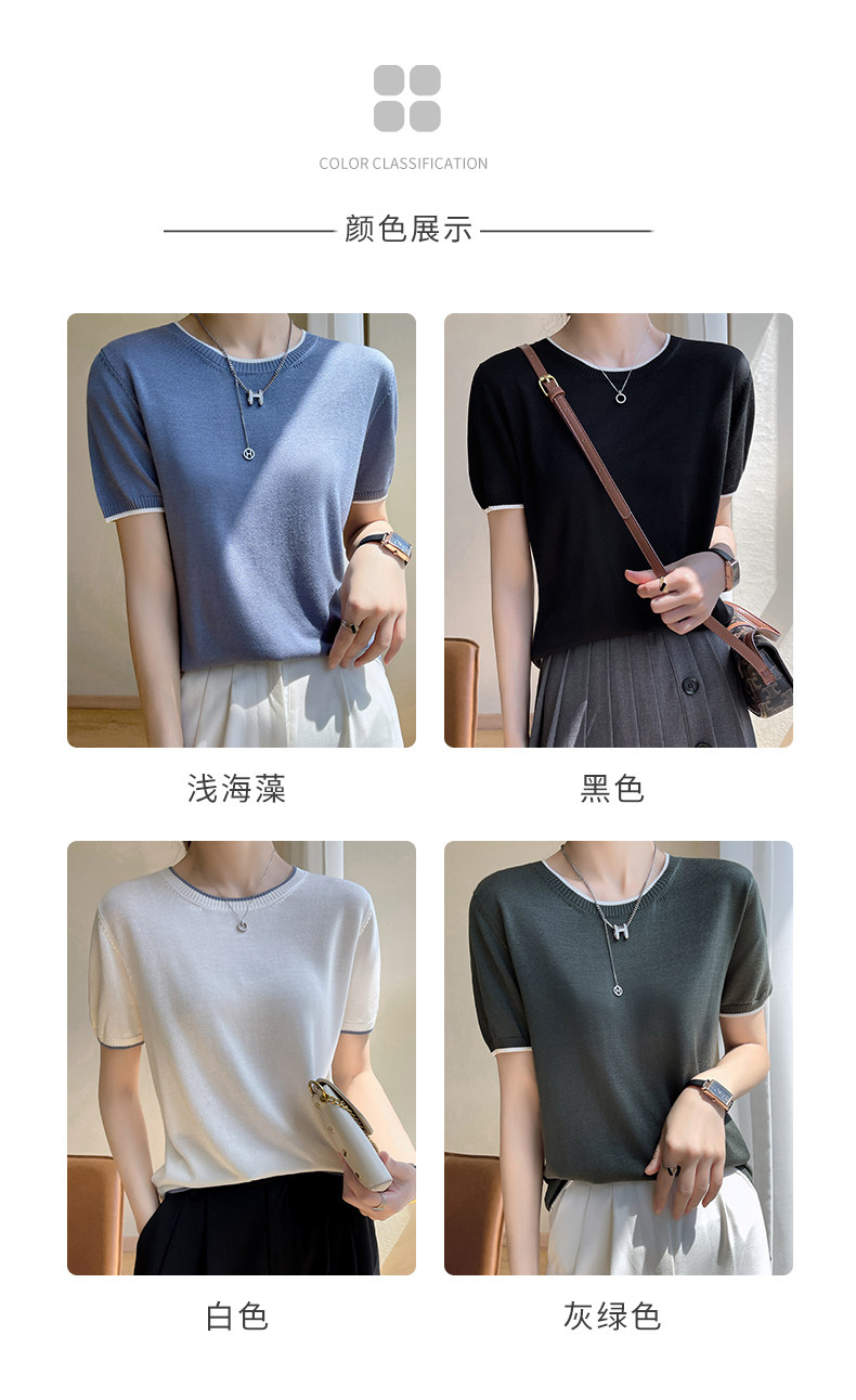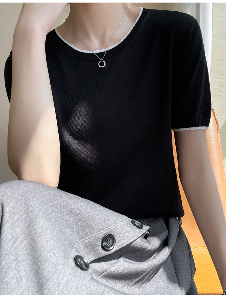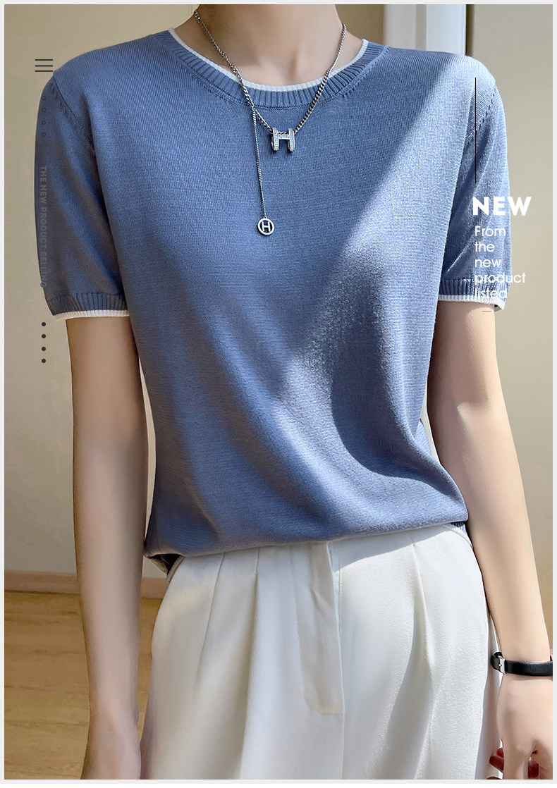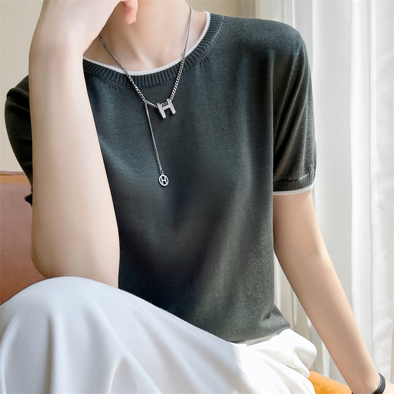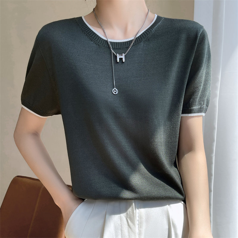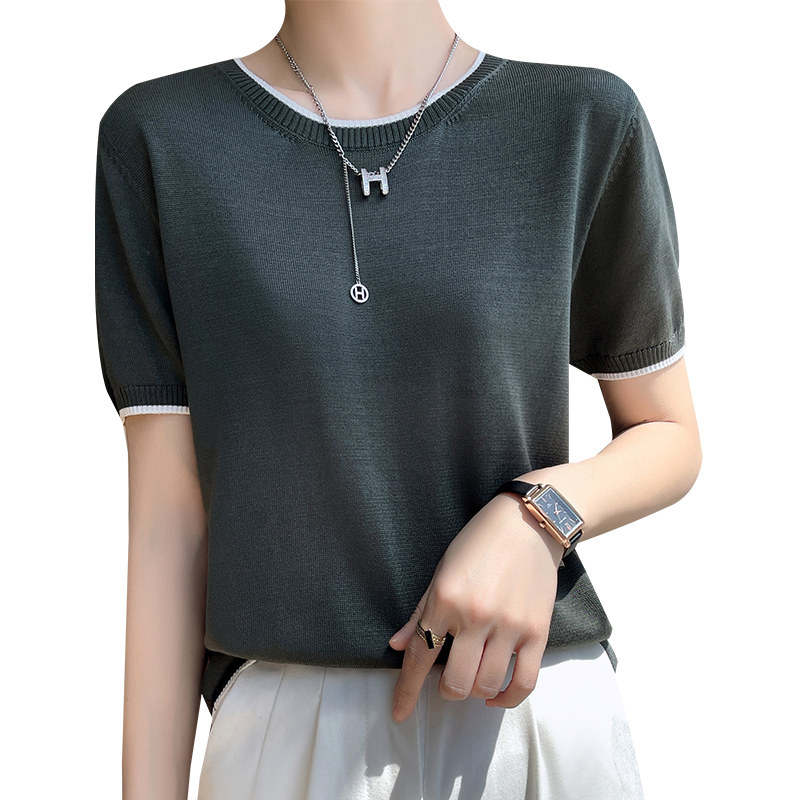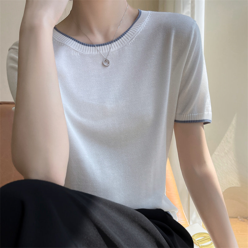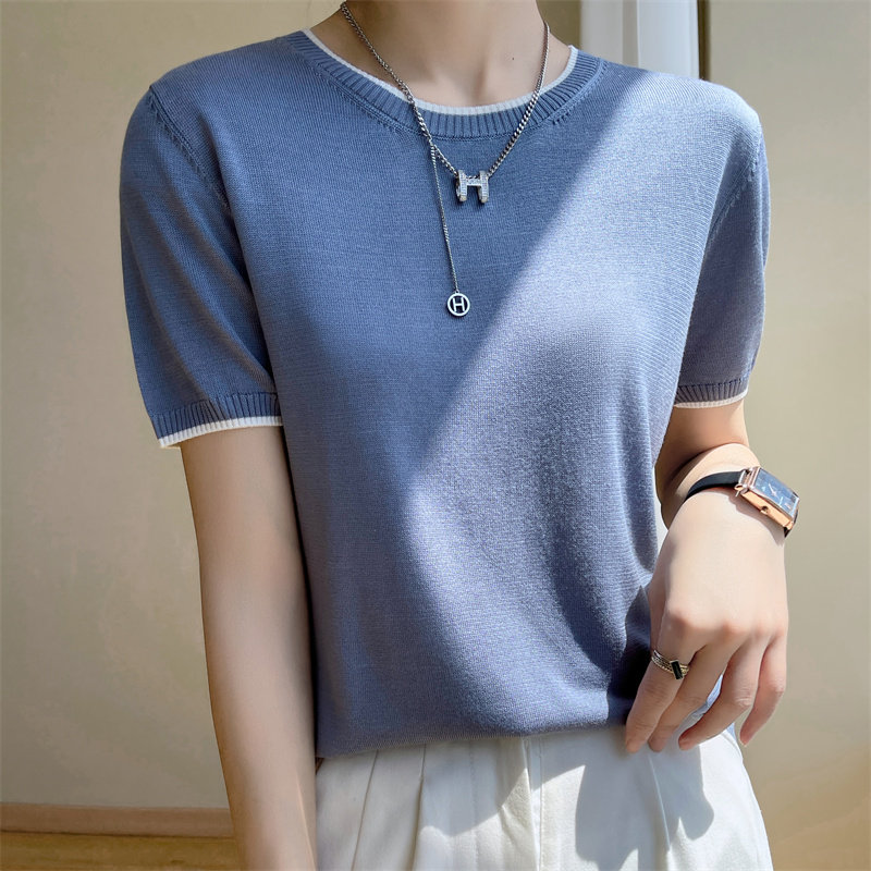 Летняя тонкая футболка, трикотажный короткий свитер с круглым воротником, коллекция 2022