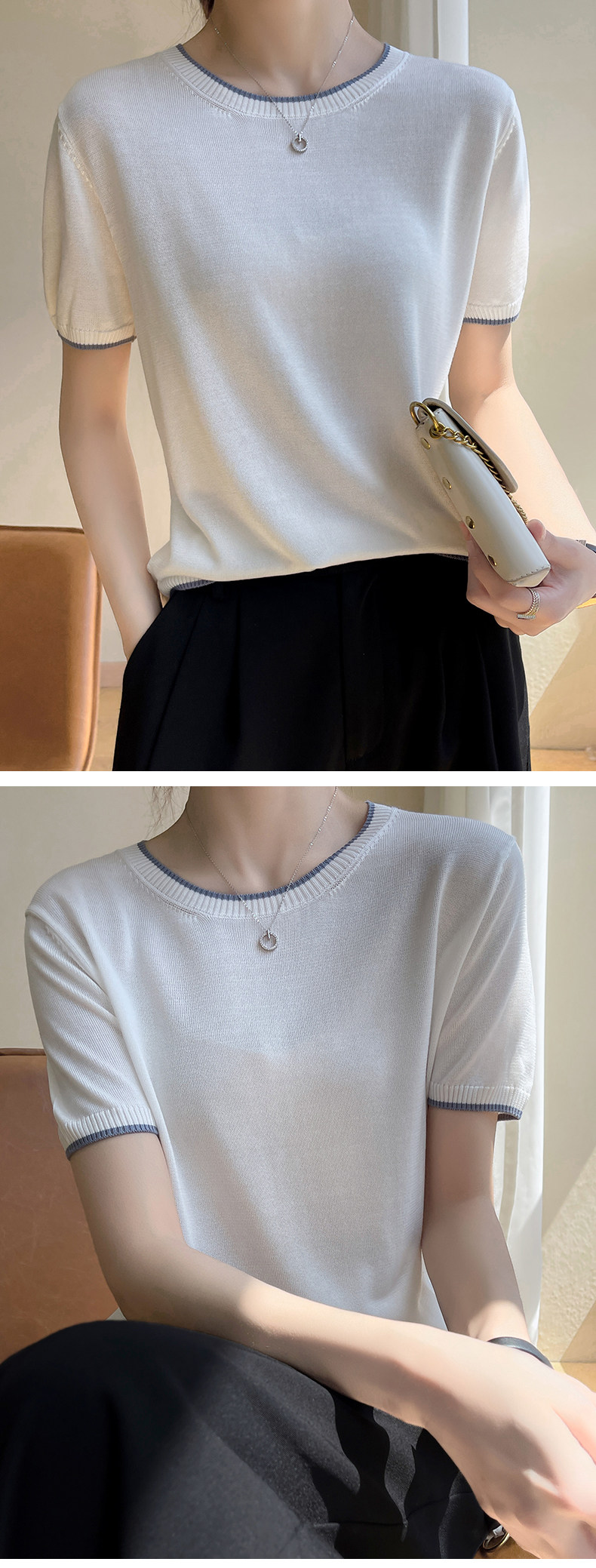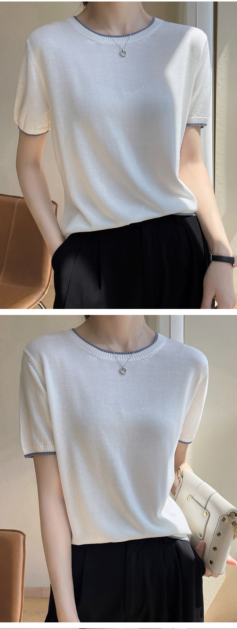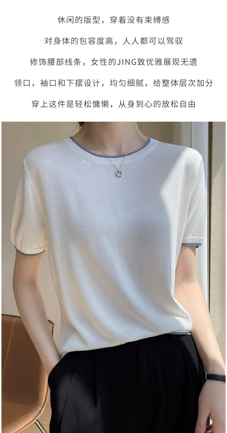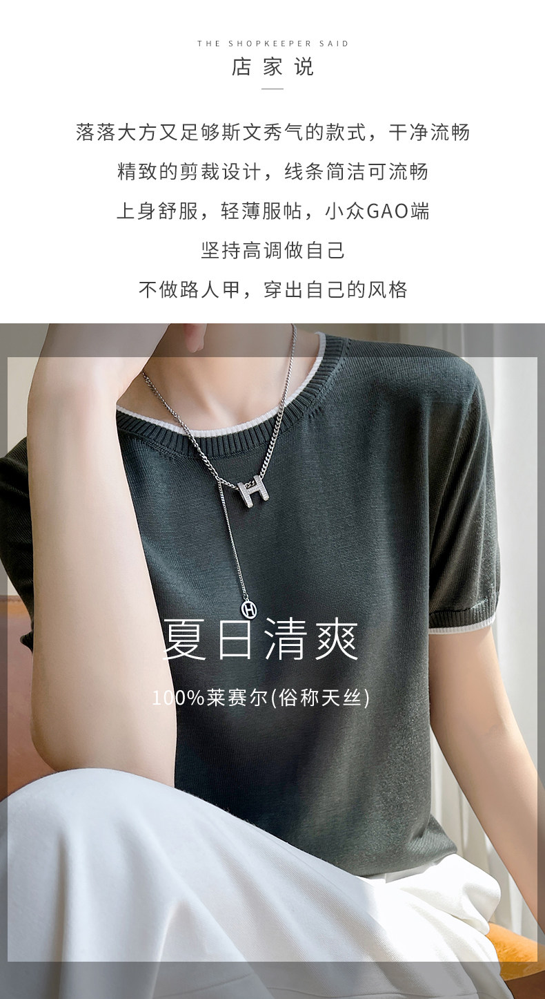 Летняя тонкая футболка, трикотажный короткий свитер с круглым воротником, коллекция 2022