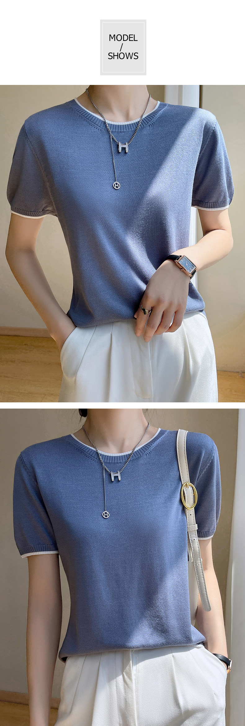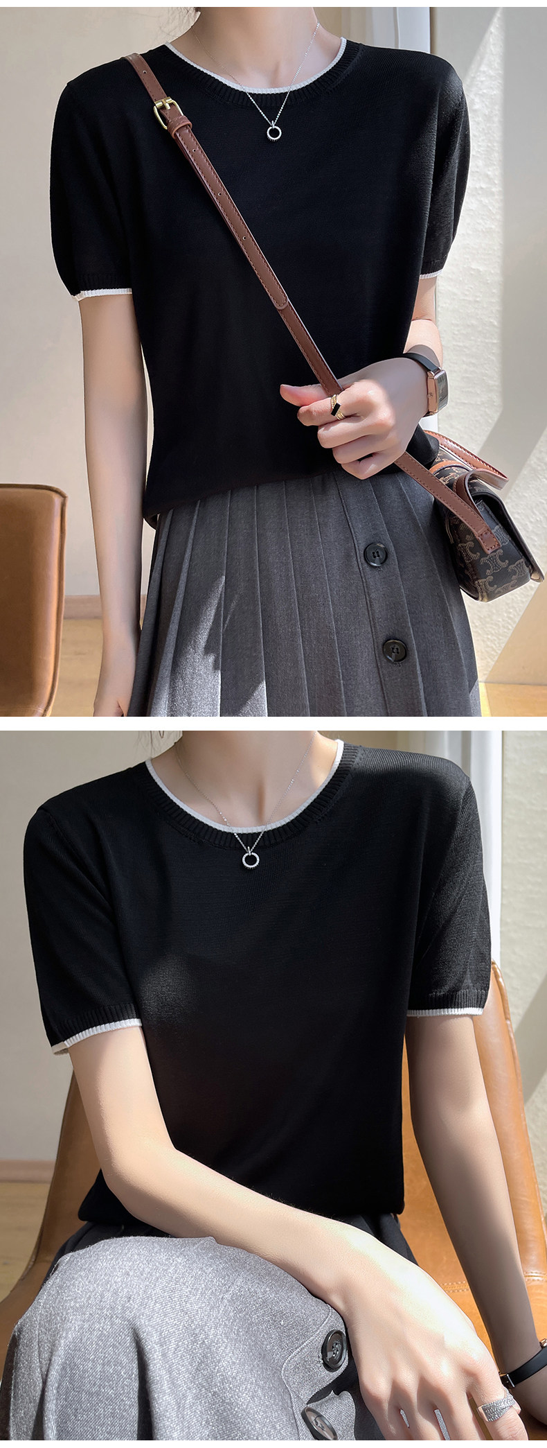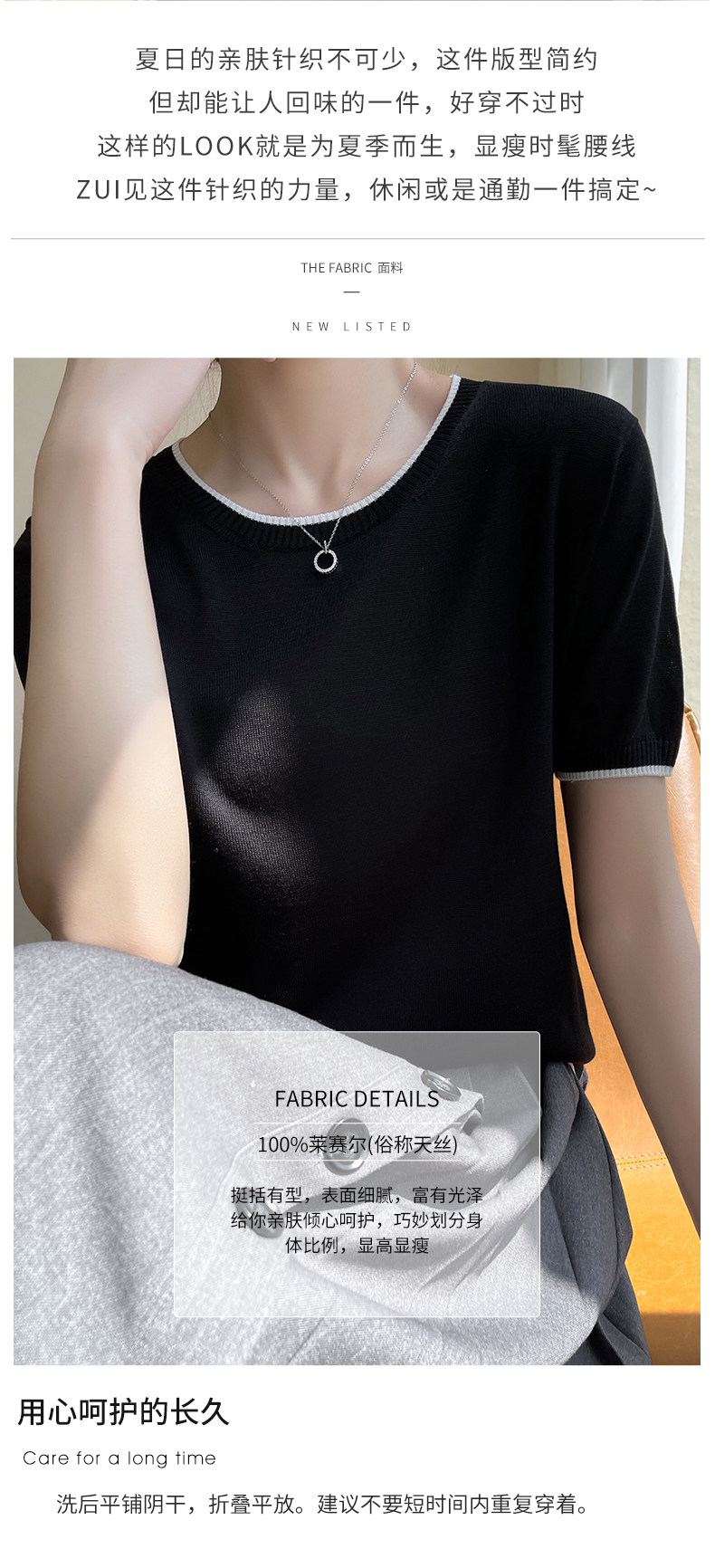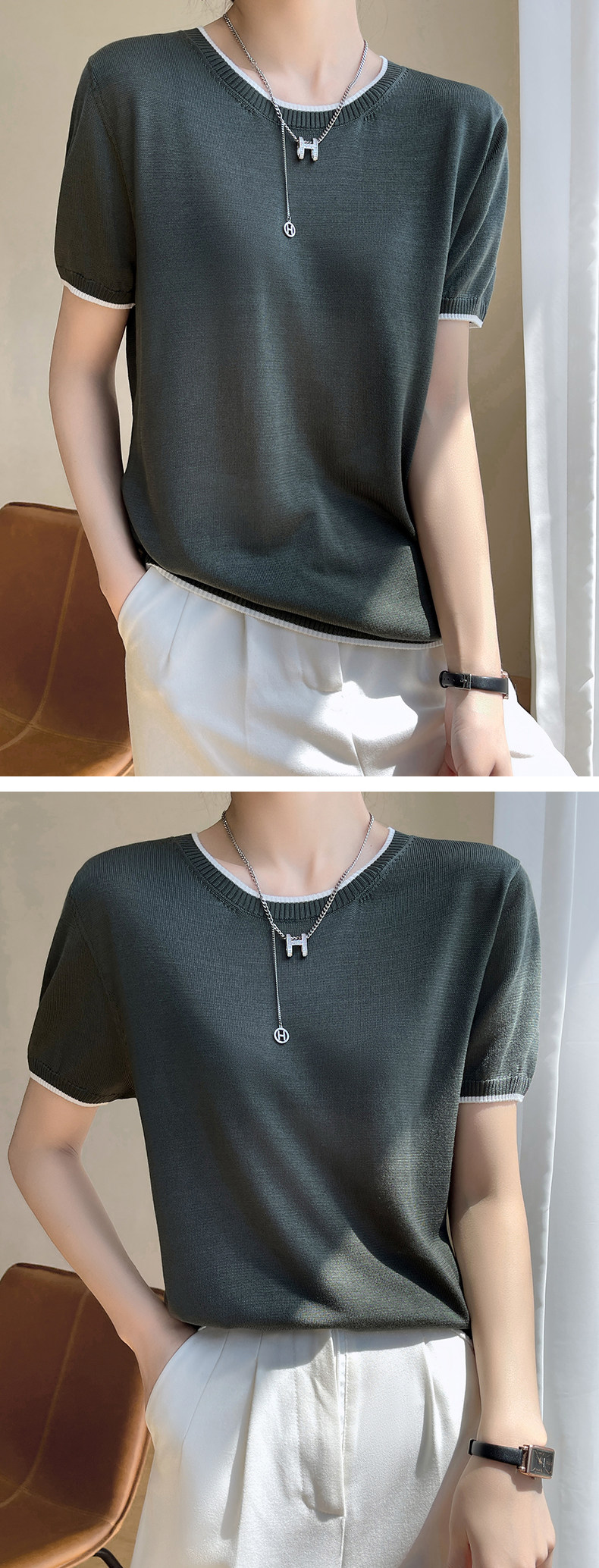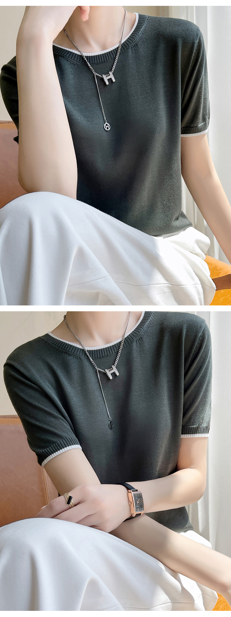 Летняя тонкая футболка, трикотажный короткий свитер с круглым воротником, коллекция 2022