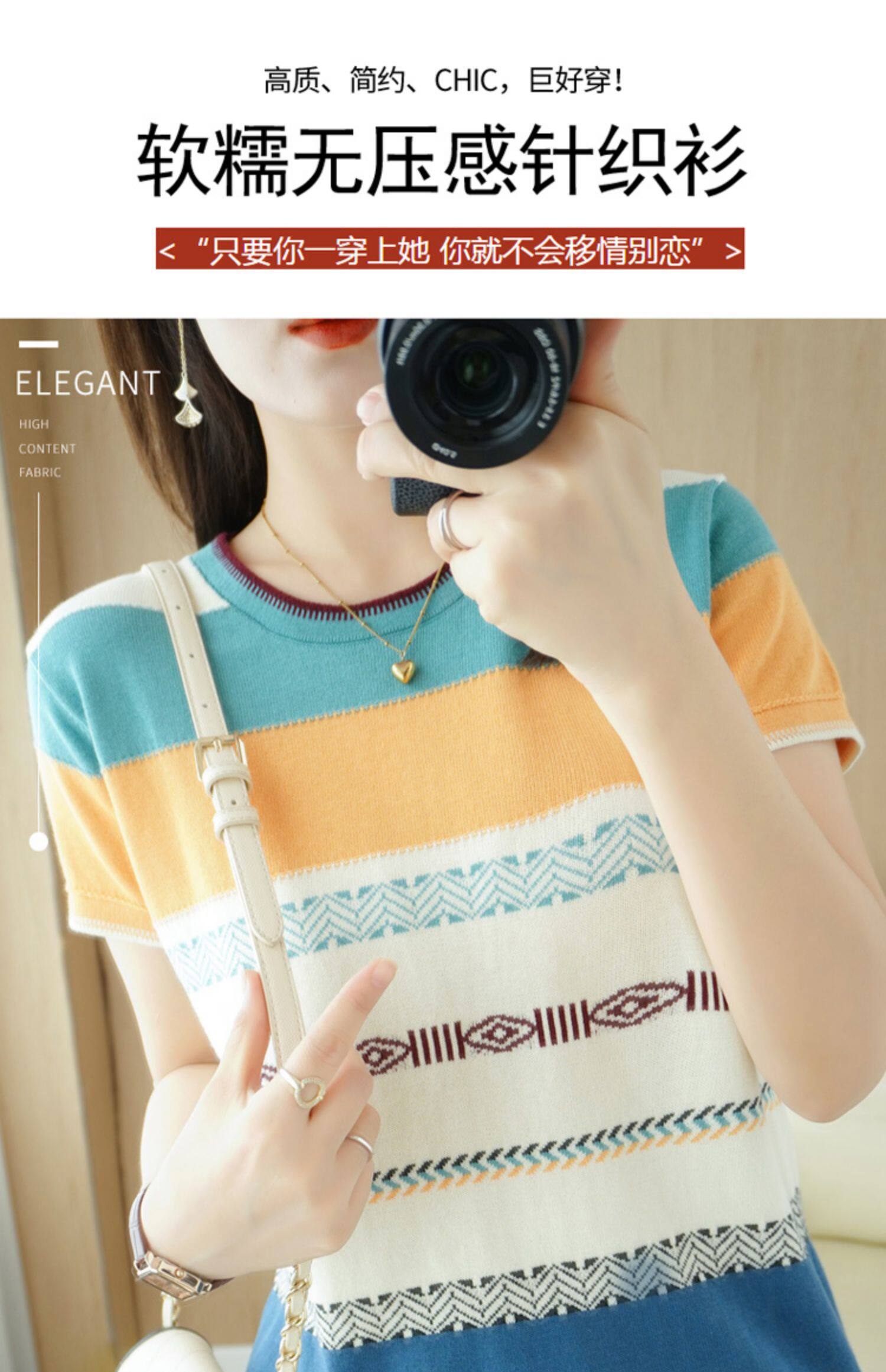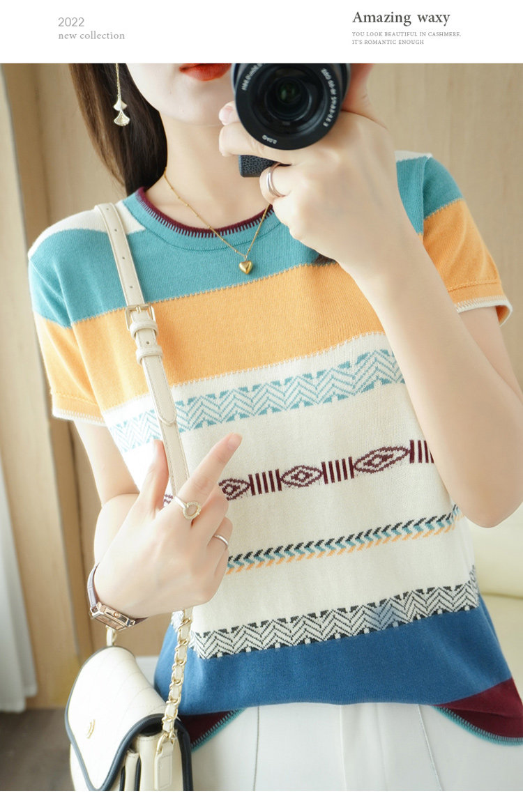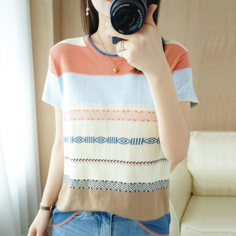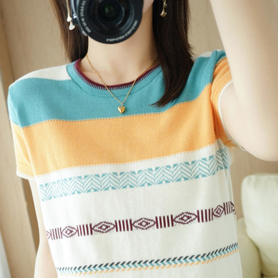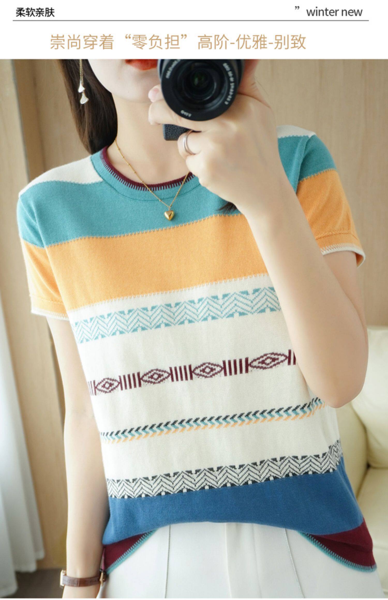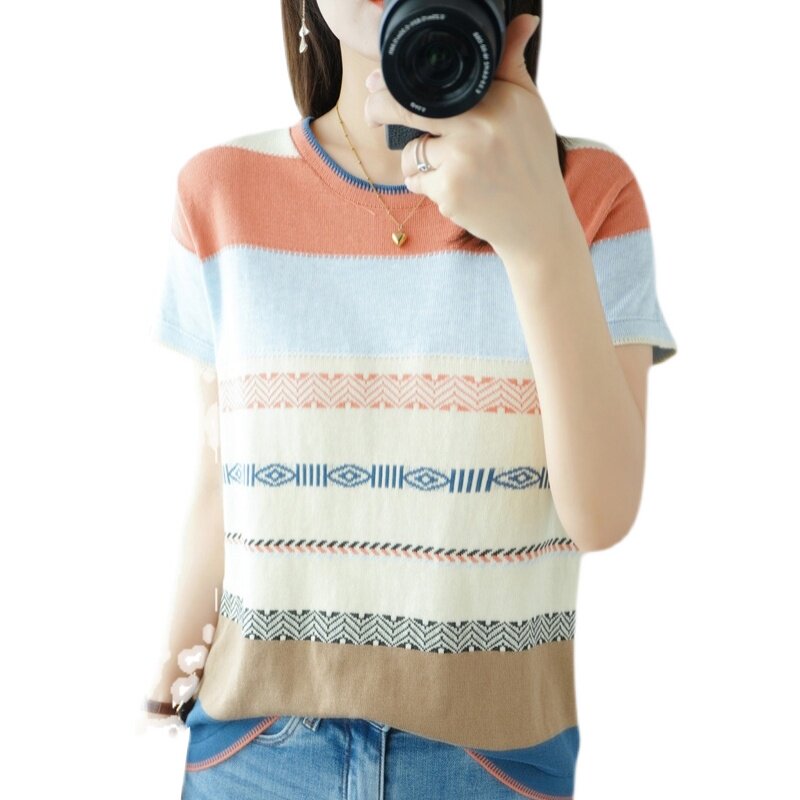 Летняя однотонная футболка с коротким рукавом, радужный трикотажный базовый свитер, из хлопка и льна