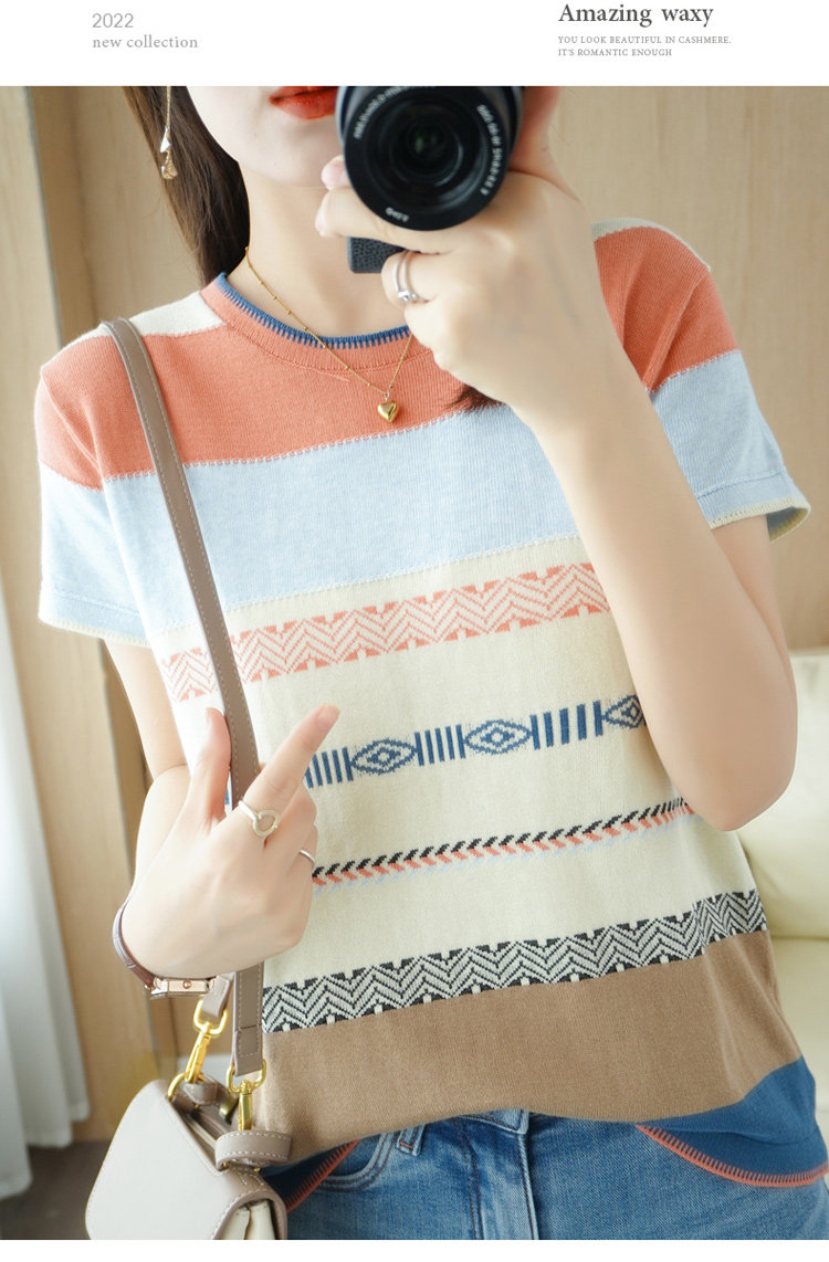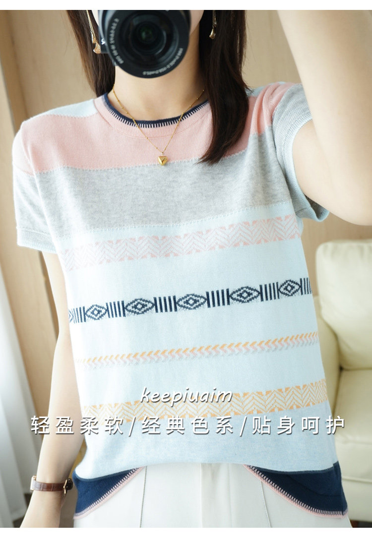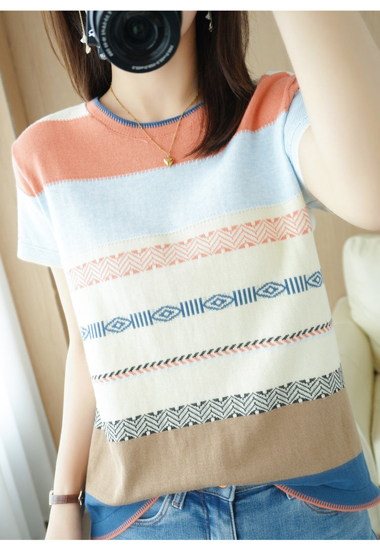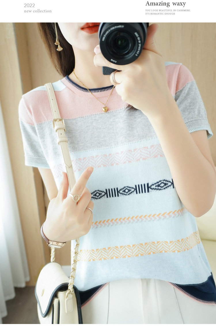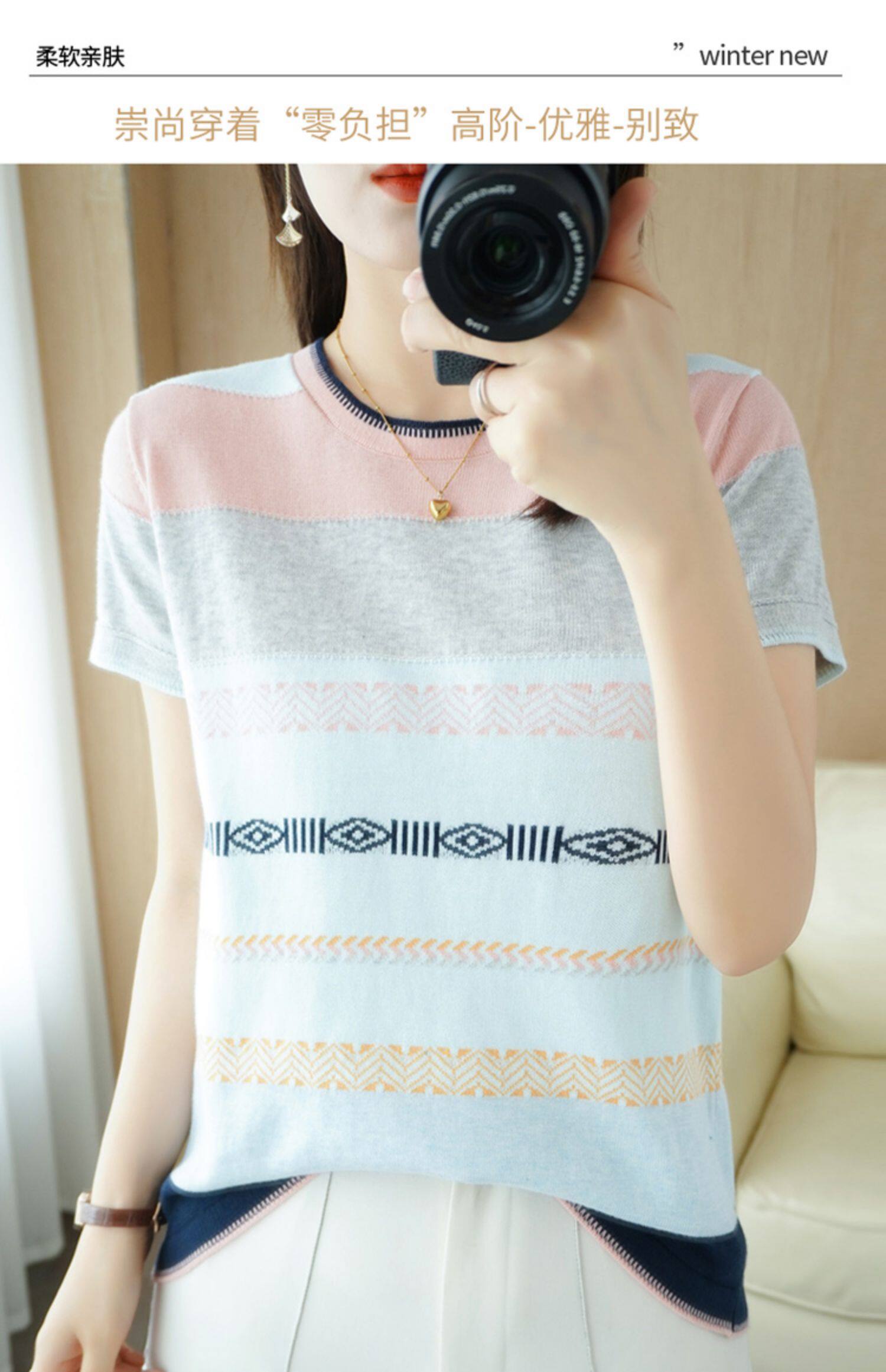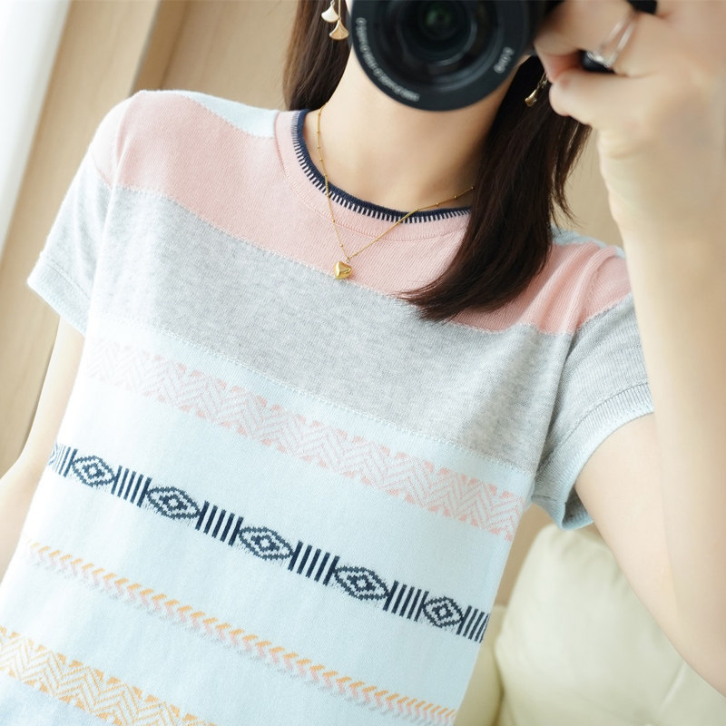 Летняя однотонная футболка с коротким рукавом, радужный трикотажный базовый свитер, из хлопка и льна