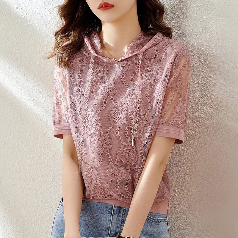 Летняя футболка с коротким рукавом с капюшоном, летняя одежда, свободный крой, по фигуре, подходит для подростков
