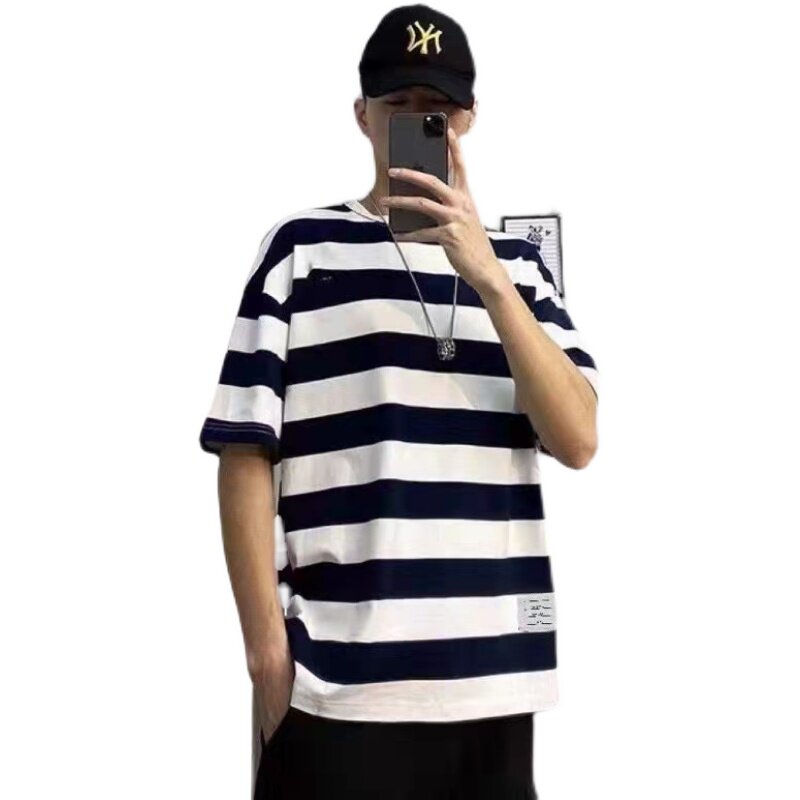 Японская летняя футболка с коротким рукавом с круглым воротником