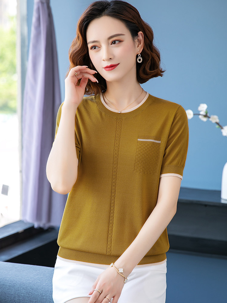 Шелковая футболка, тонкая летняя летняя одежда, летний трикотажный свитер