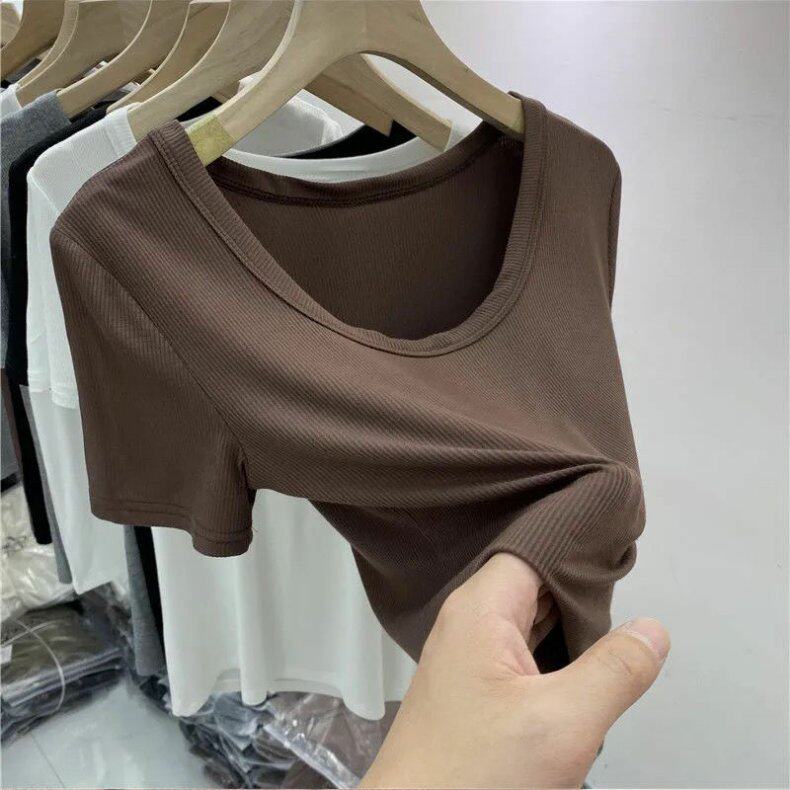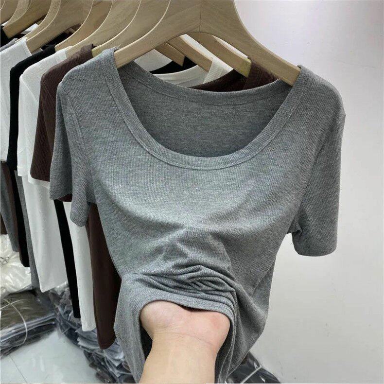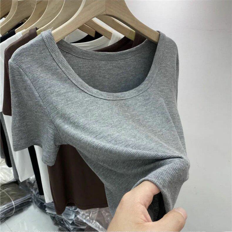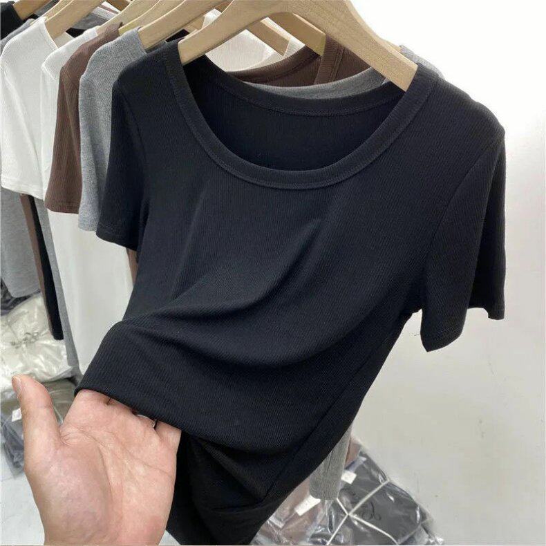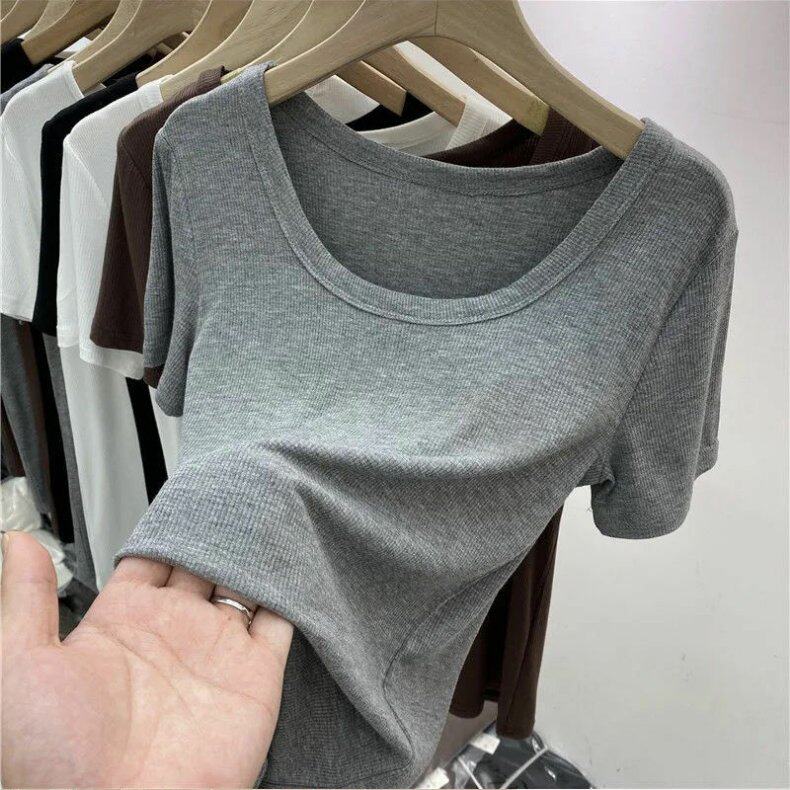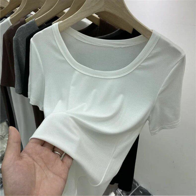 Tide, японская летняя приталенная тонкая футболка с круглым воротником