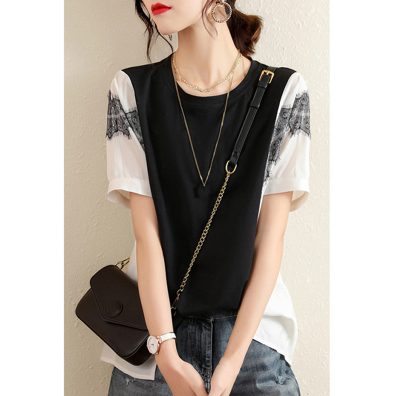 Кружевная летняя футболка с коротким рукавом, базовый комплект для отдыха, оверсайз