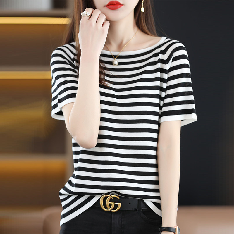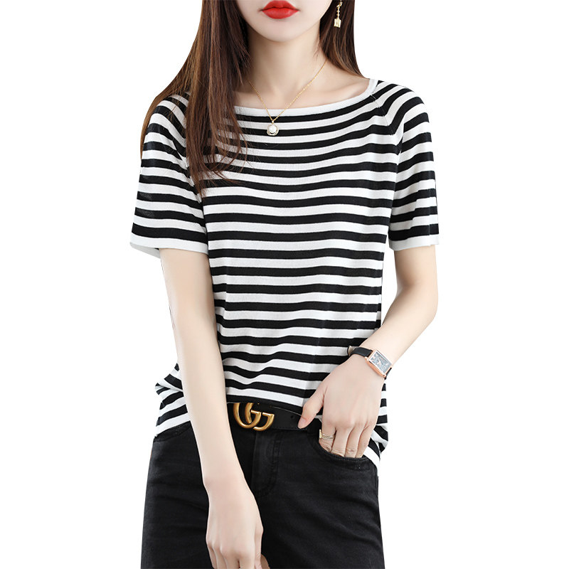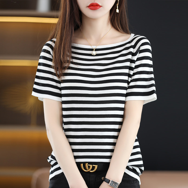 Летняя трикотажная тонкая футболка с коротким рукавом, квадратный вырез, свободный крой, большой размер