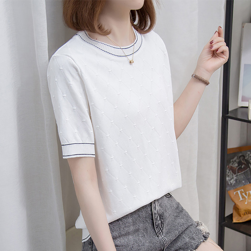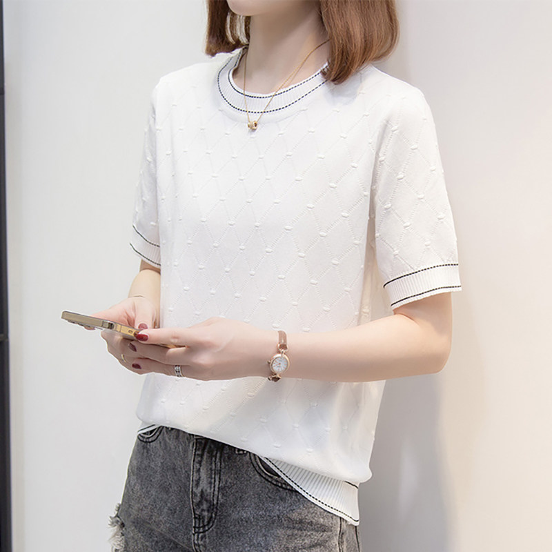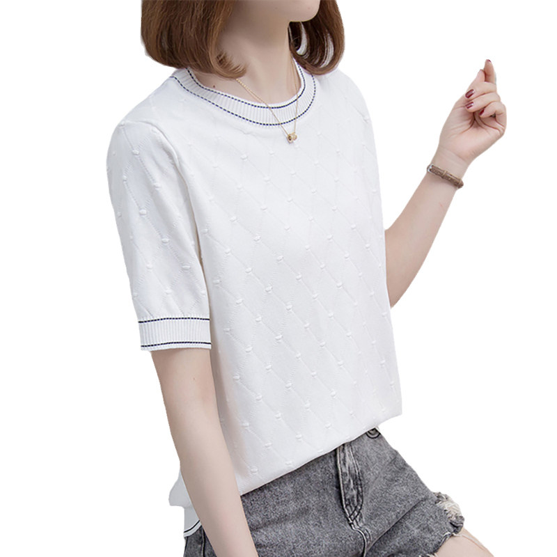 Трикотажная летняя футболка с коротким рукавом, белая летняя одежда, большой размер