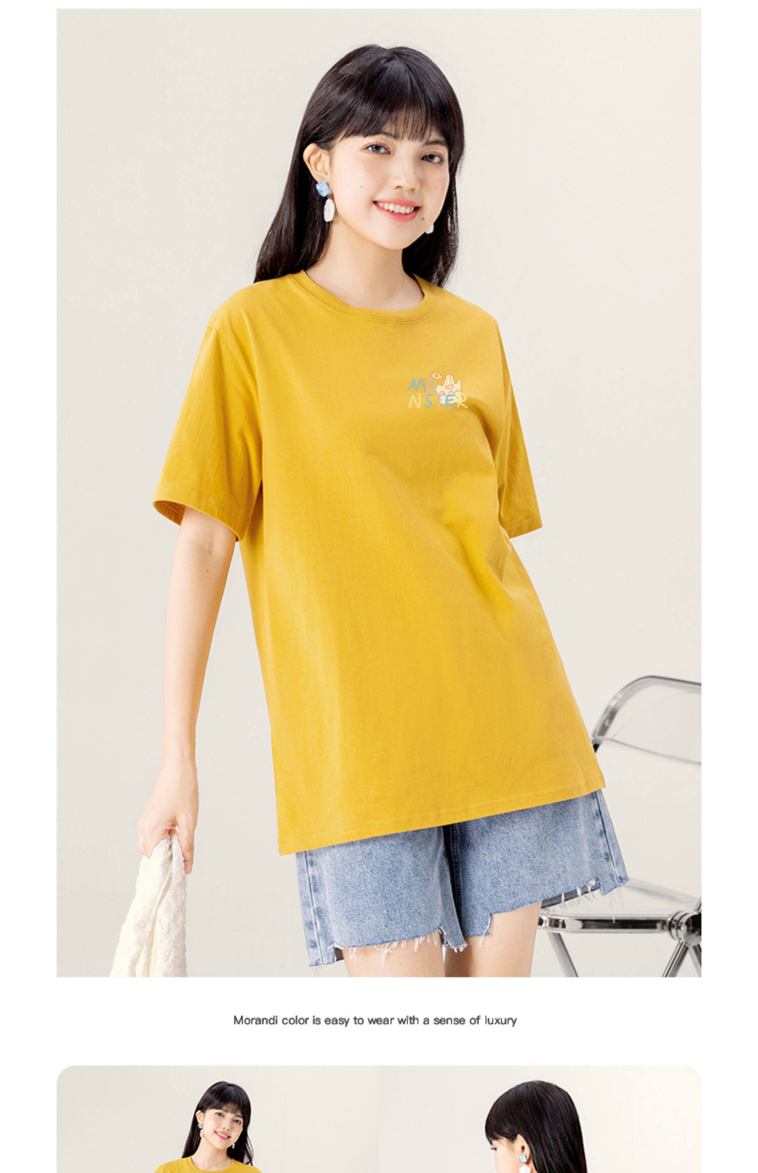 Мультяшная хлопковая летняя футболка с коротким рукавом, небольшая дизайнерская толстовка, свободный крой, тренд сезона