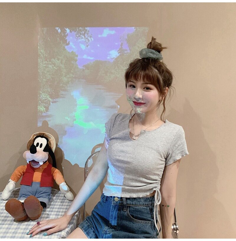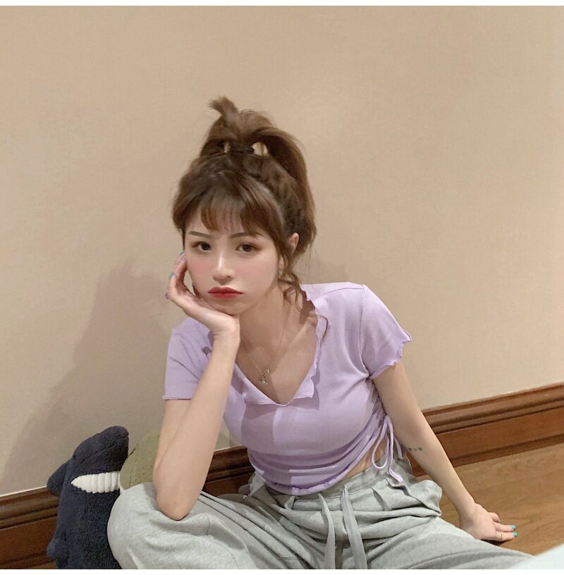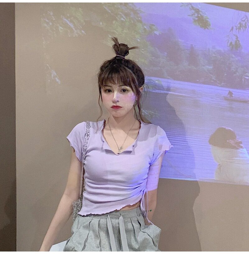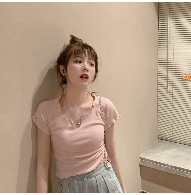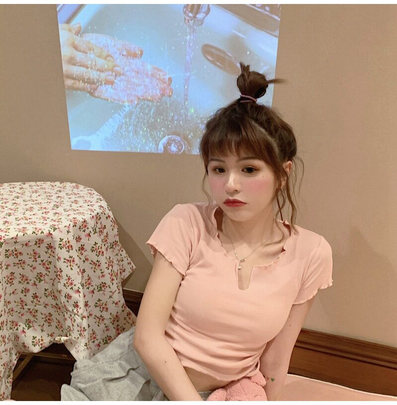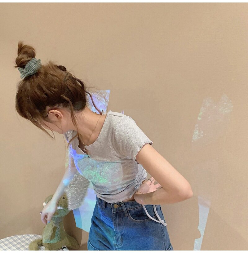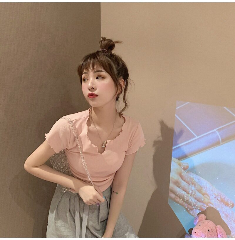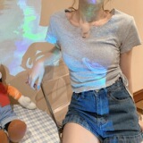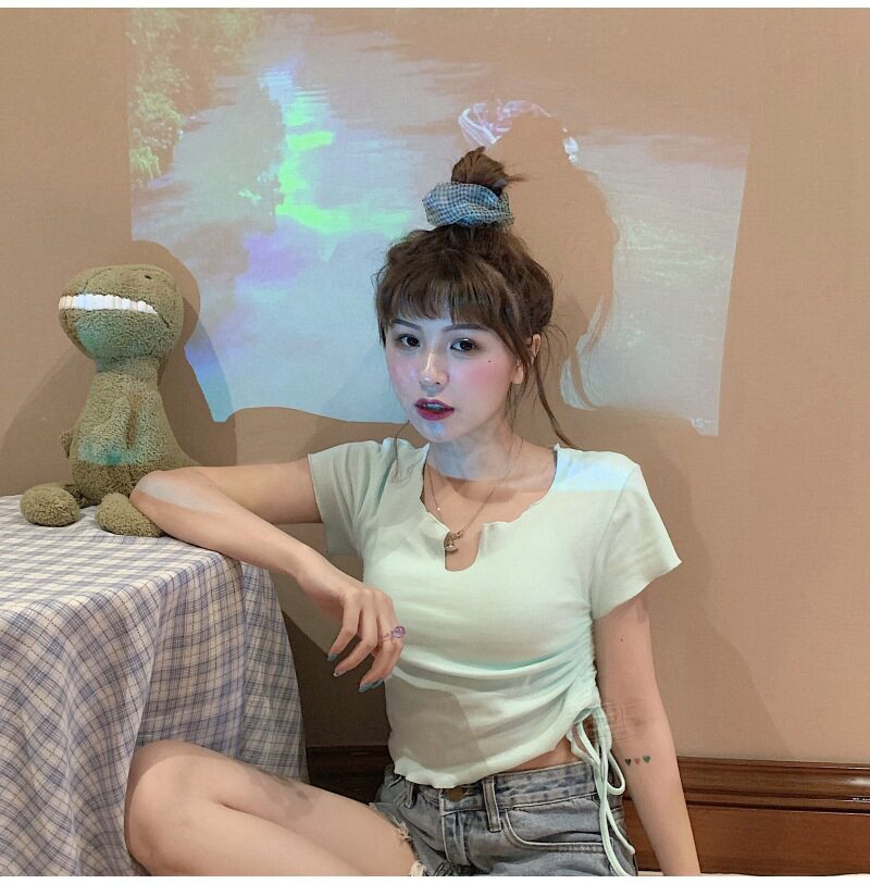 Сексуальная короткая футболка, короткий рукав, с рукавом