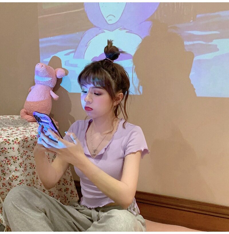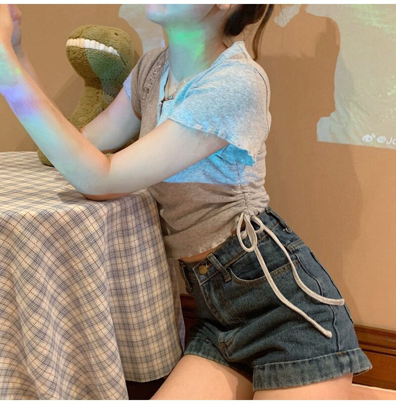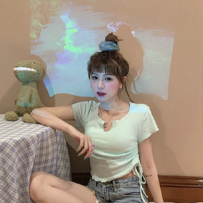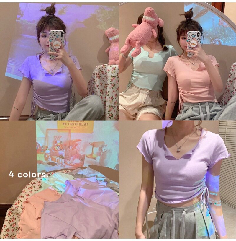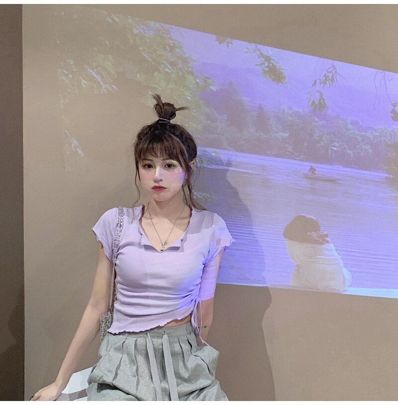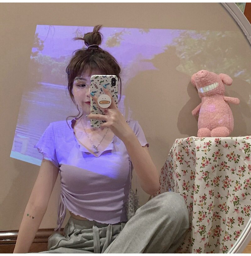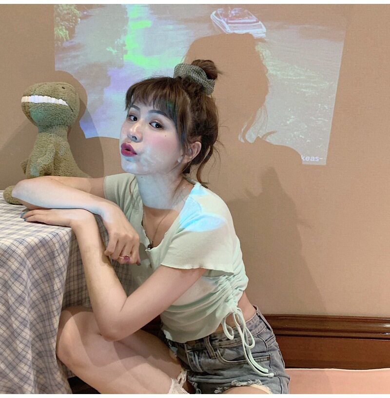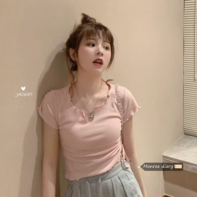 Сексуальная короткая футболка, короткий рукав, с рукавом