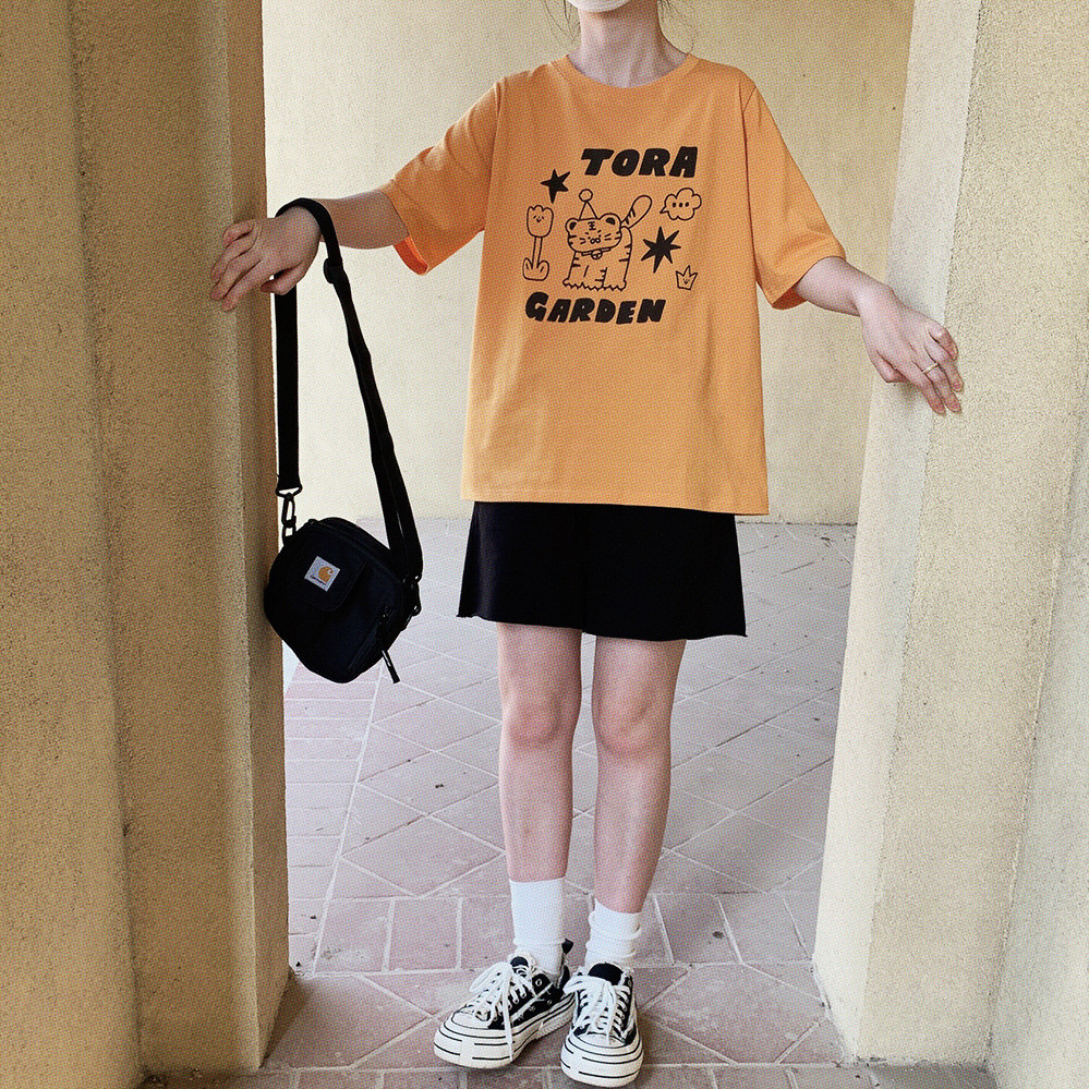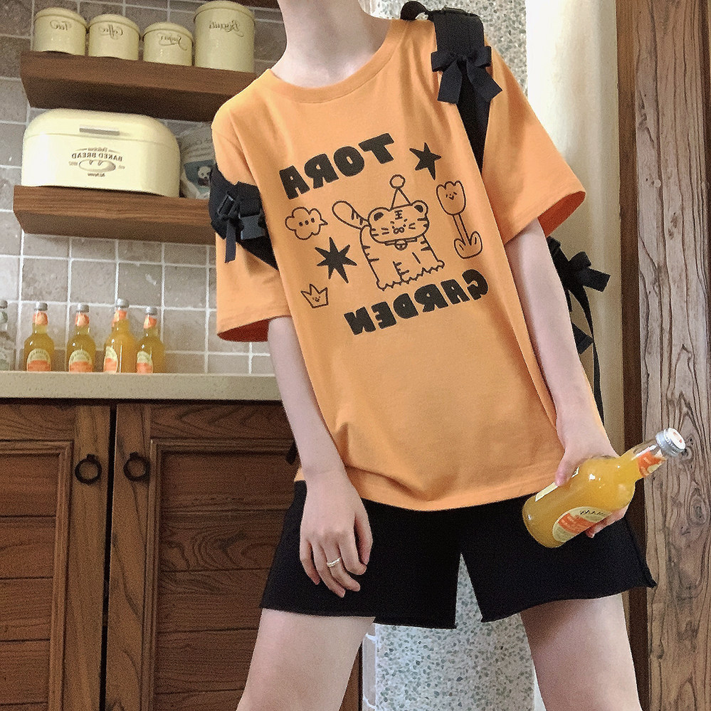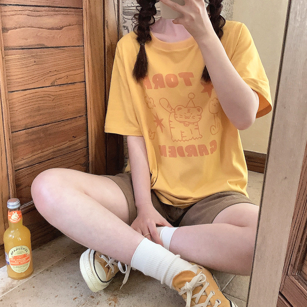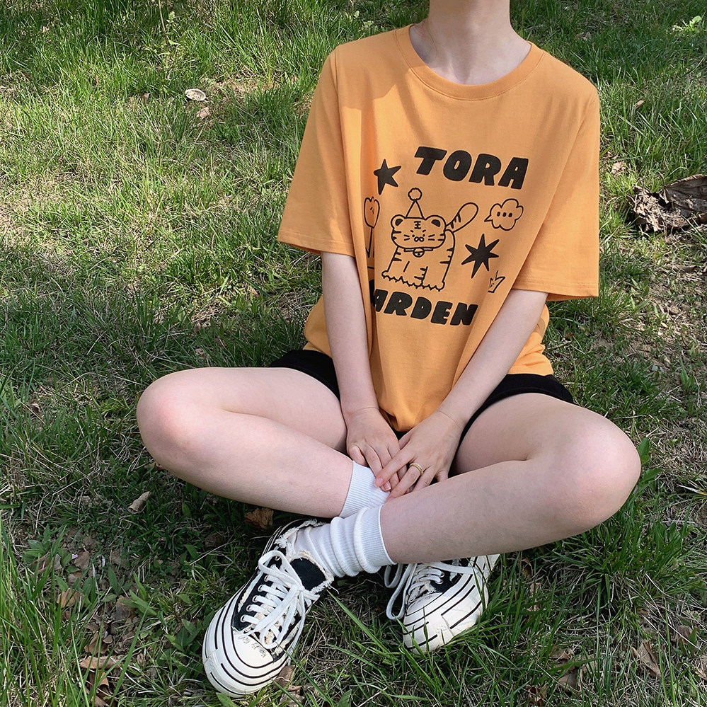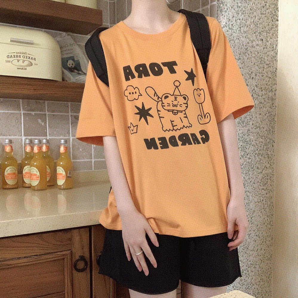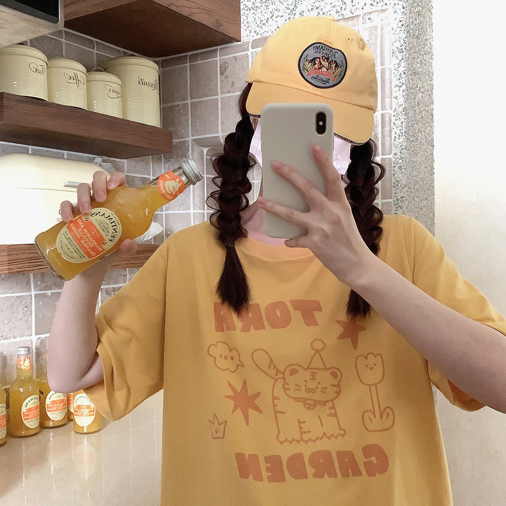 Оранжевая желтая футболка с коротким рукавом с круглым воротником, свободный крой