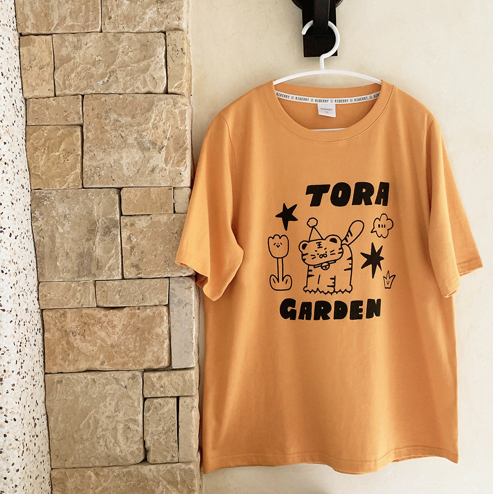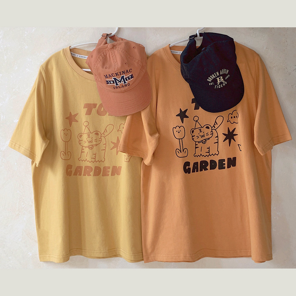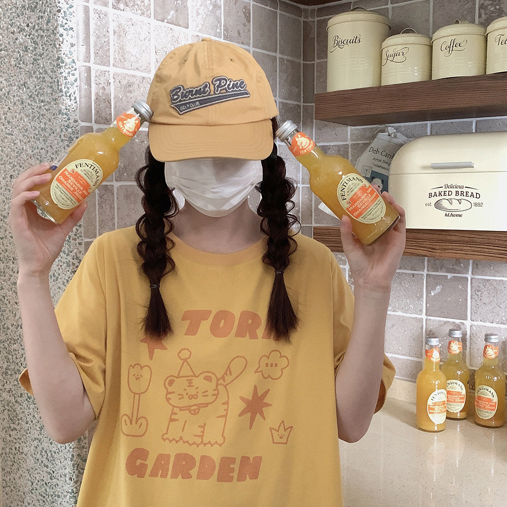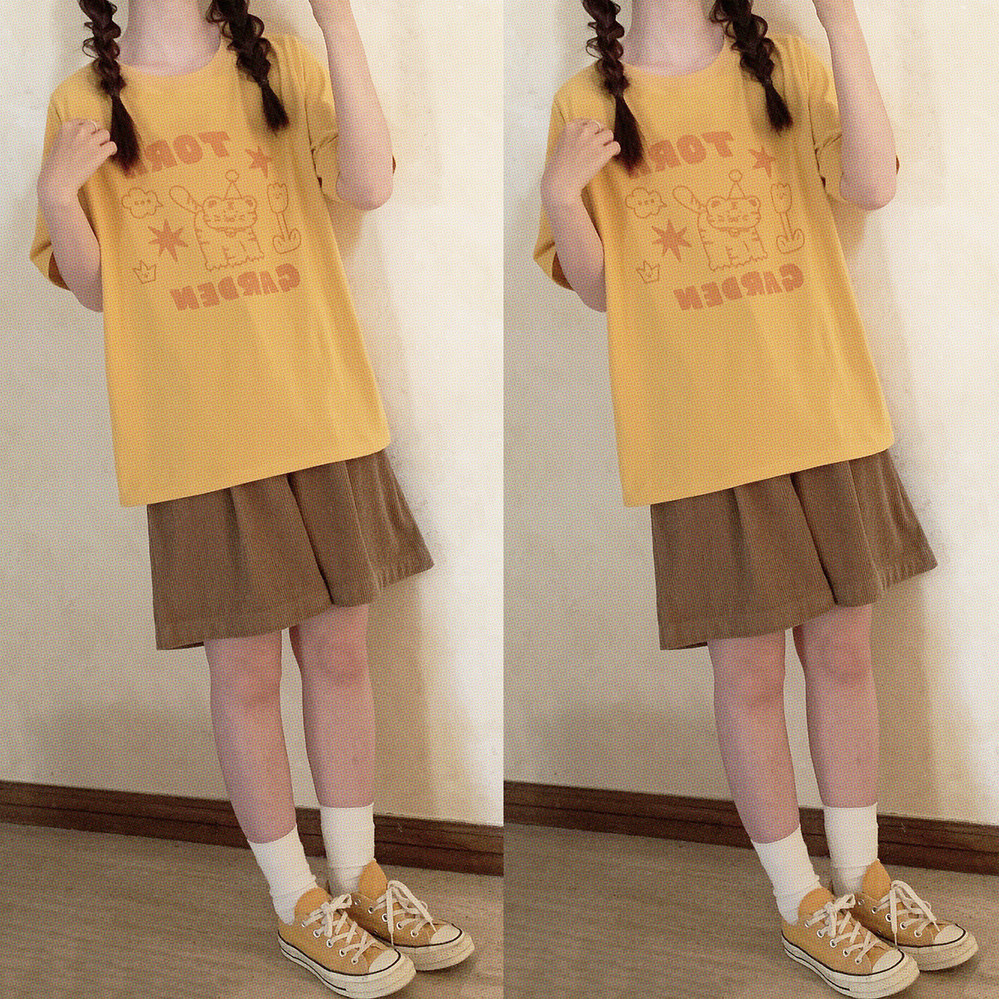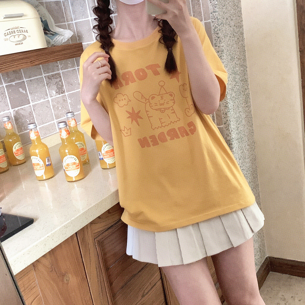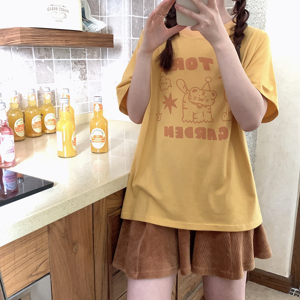 Оранжевая желтая футболка с коротким рукавом с круглым воротником, свободный крой