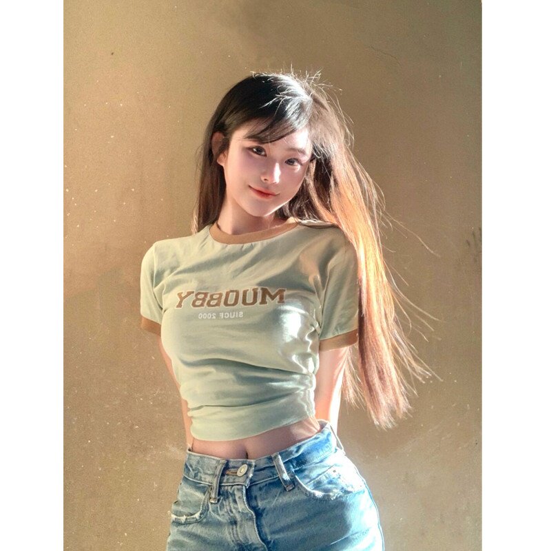 Ретро летняя приталенная короткая футболка с коротким рукавом, в американском стиле