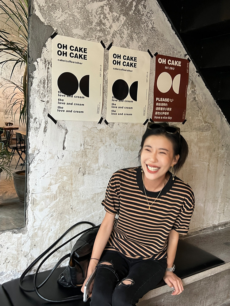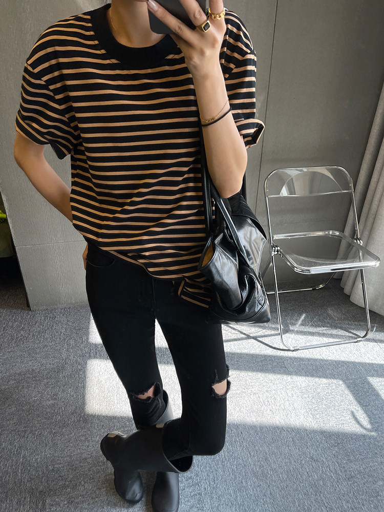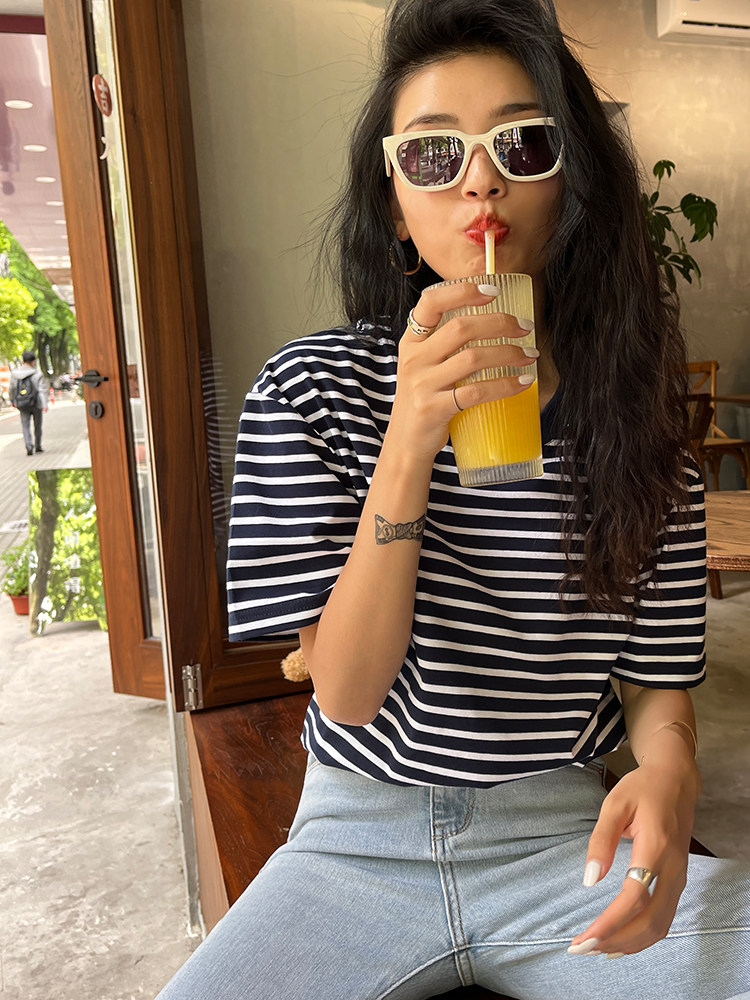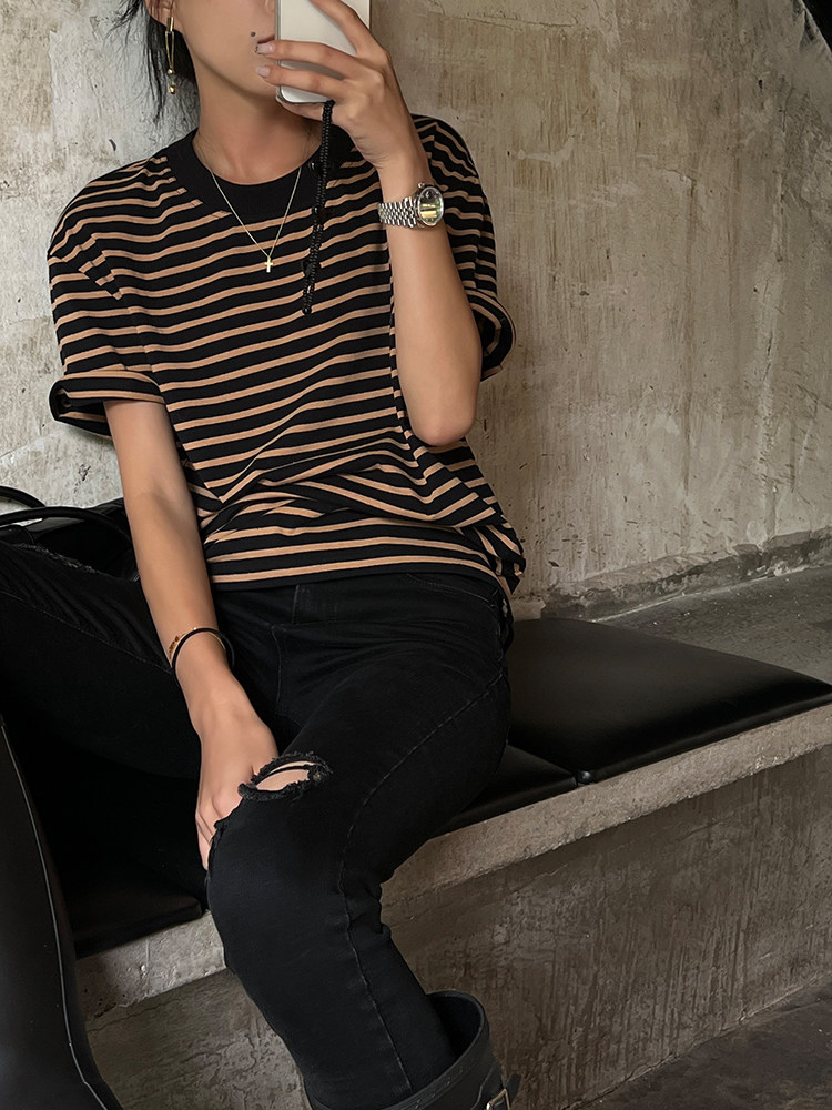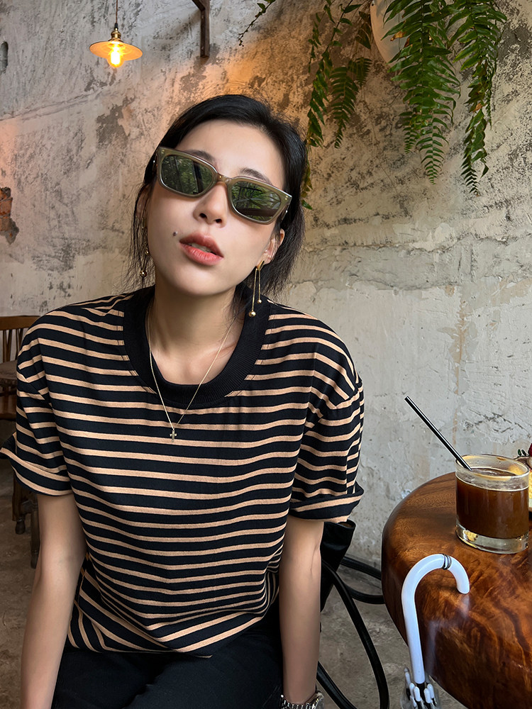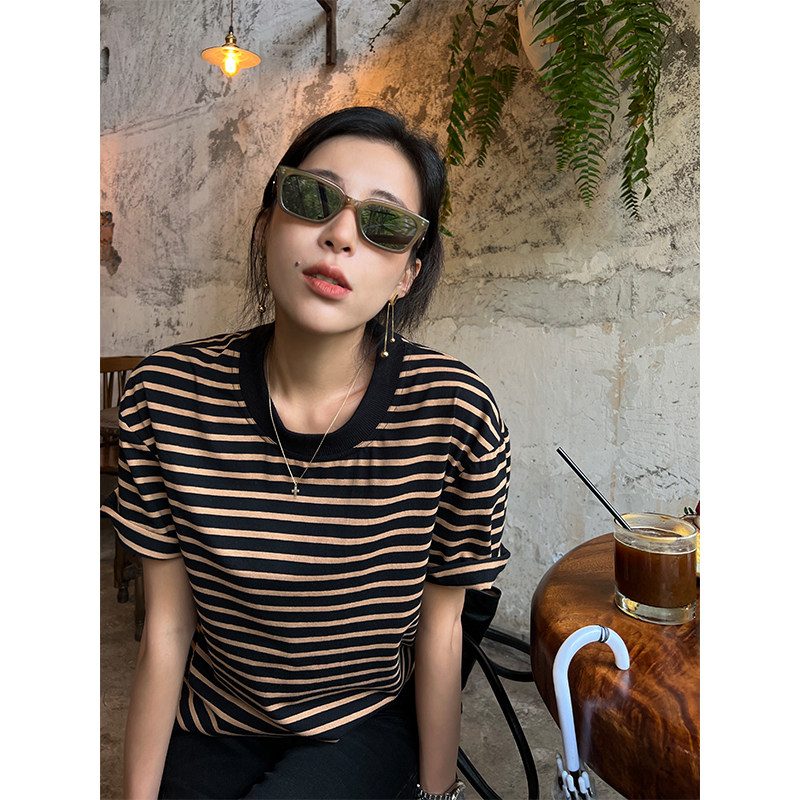 Хлопковая летняя ретро футболка с коротким рукавом с круглым воротником, коллекция 2023, оверсайз, в американском стиле