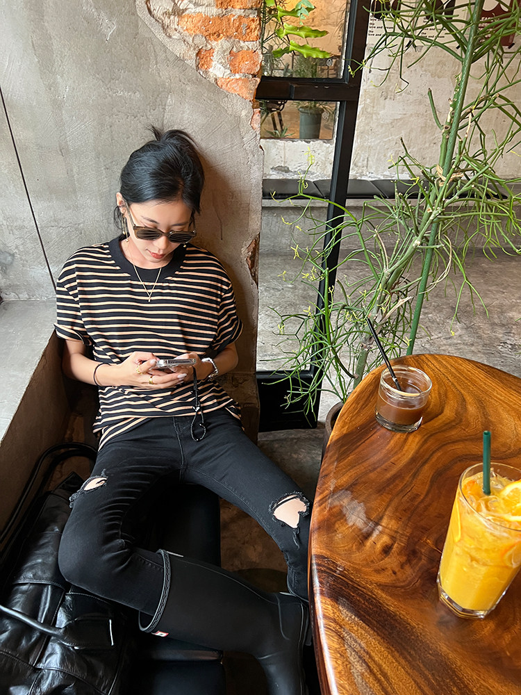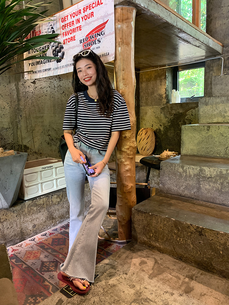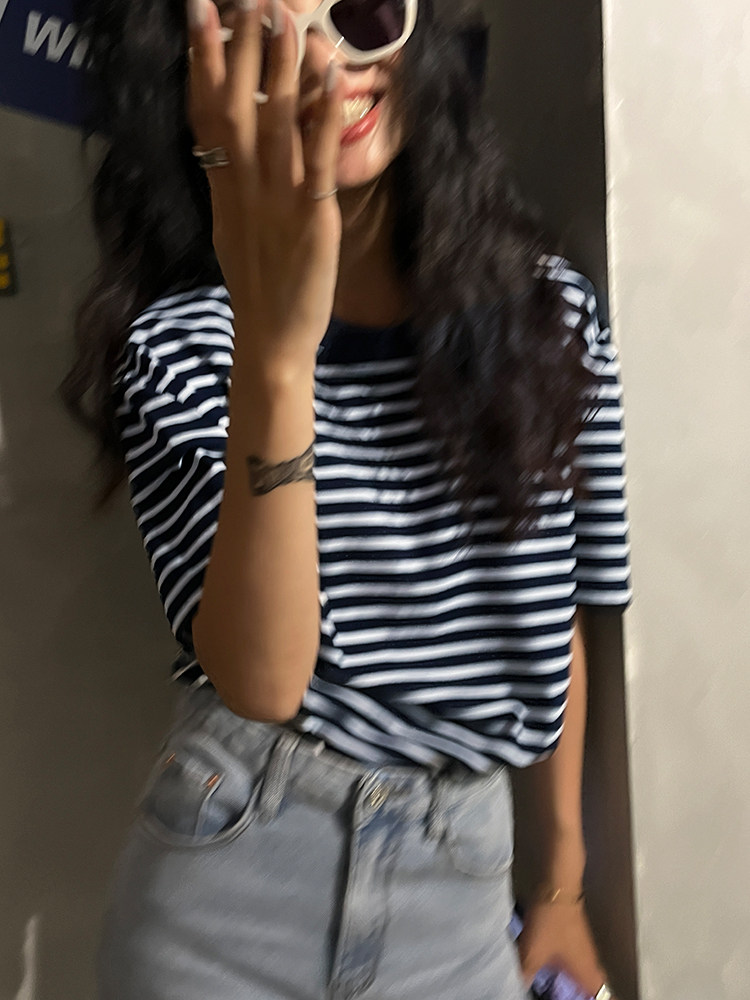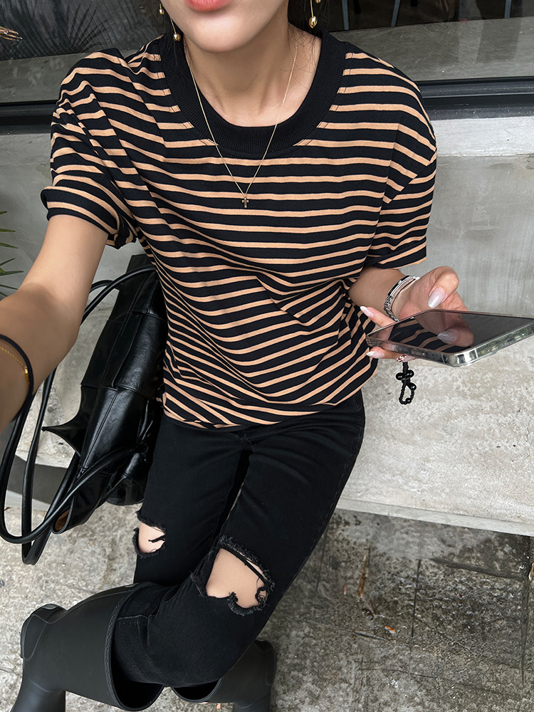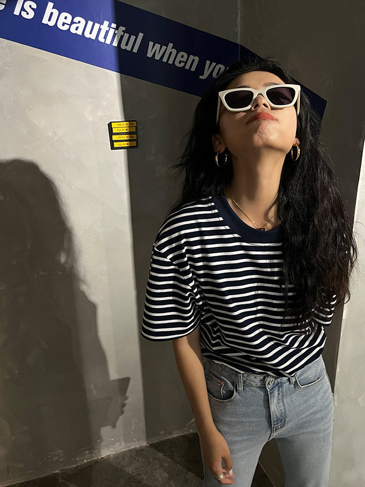 Хлопковая летняя ретро футболка с коротким рукавом с круглым воротником, коллекция 2023, оверсайз, в американском стиле