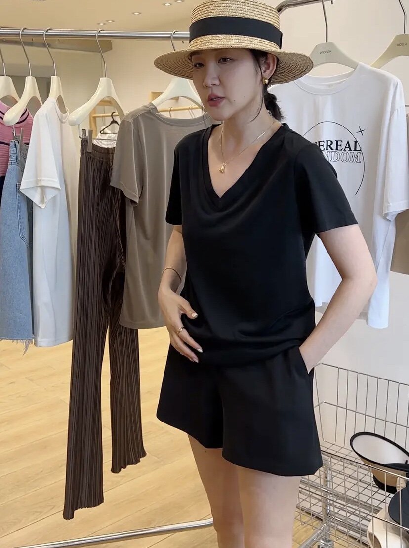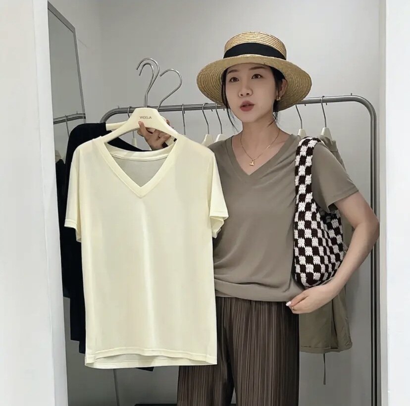 Маска для лица, шелковая футболка, V-образный вырез, 2024 года, новая коллекция, оверсайз, короткий рукав
