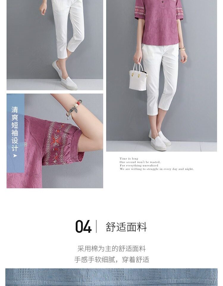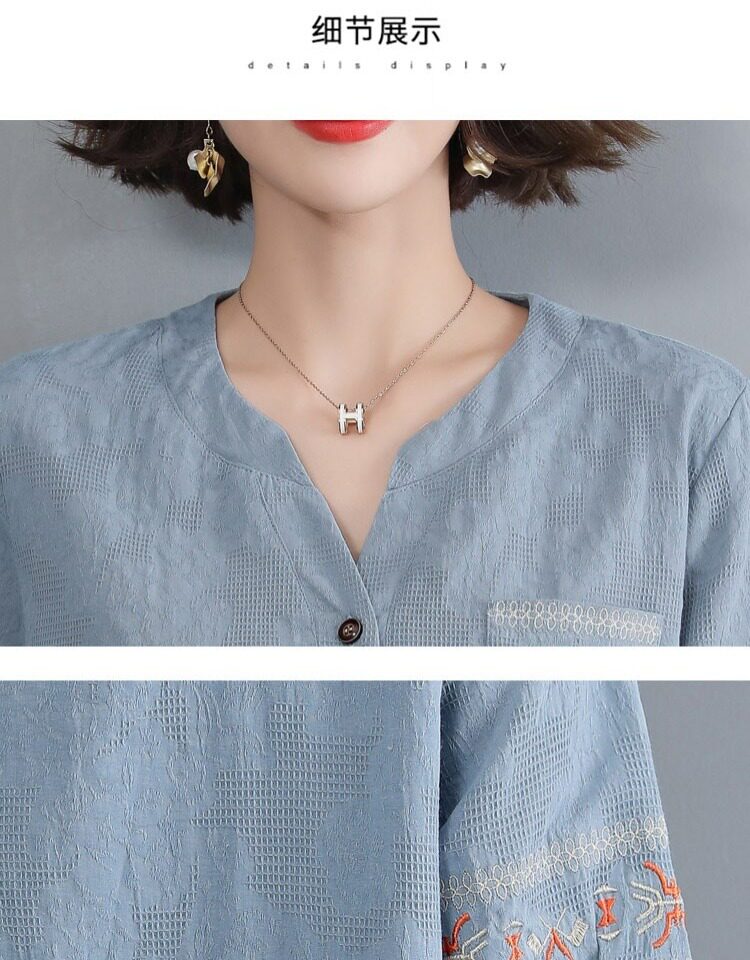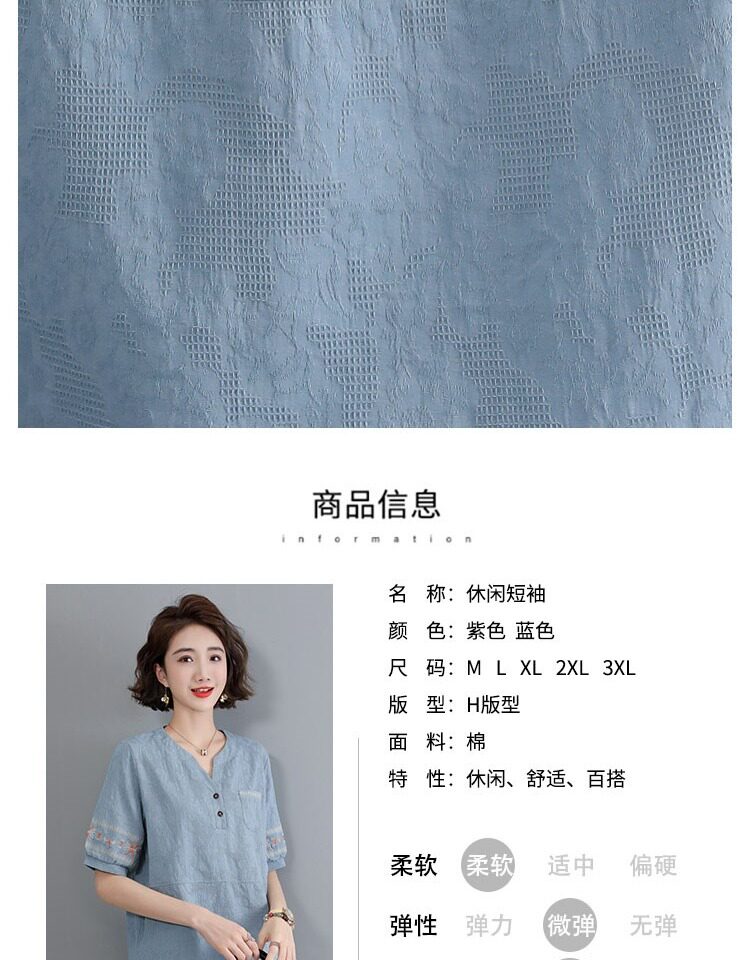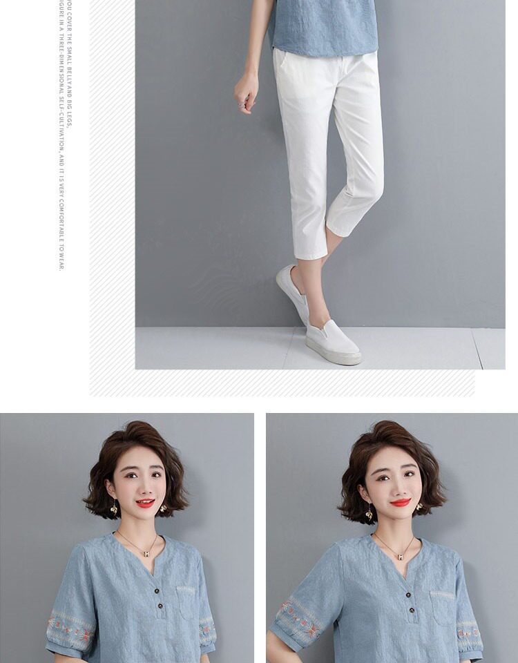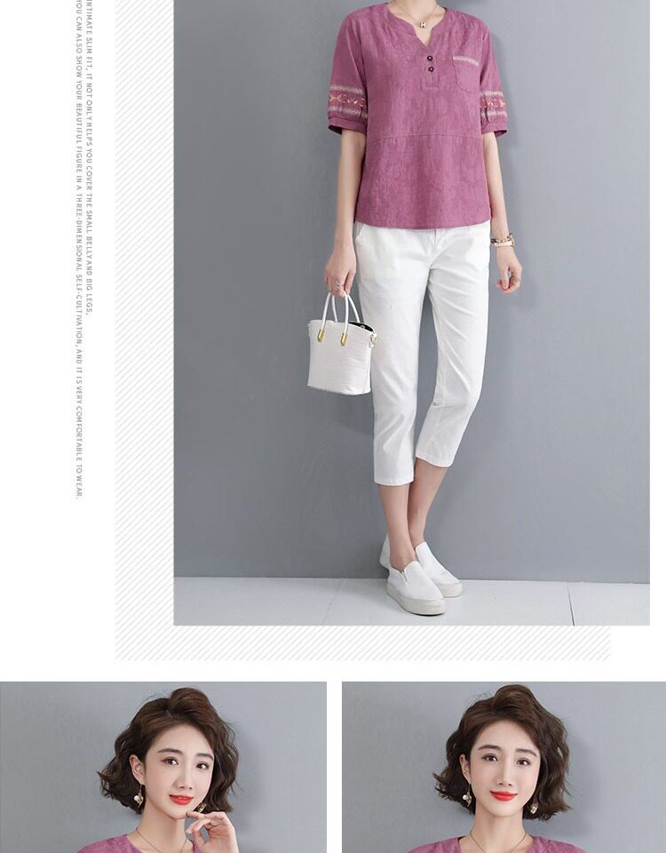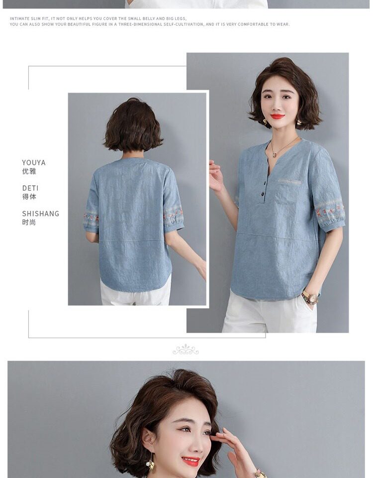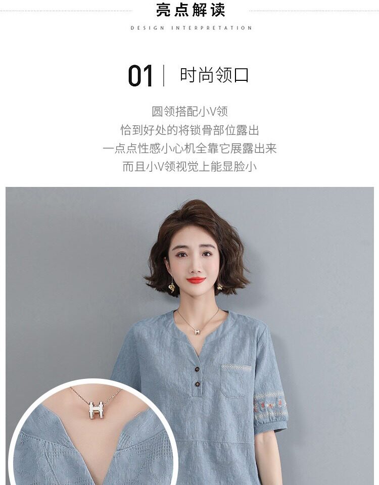 Летняя футболка, летняя одежда, модная рубашка, из хлопка и льна, V-образный вырез, короткий рукав