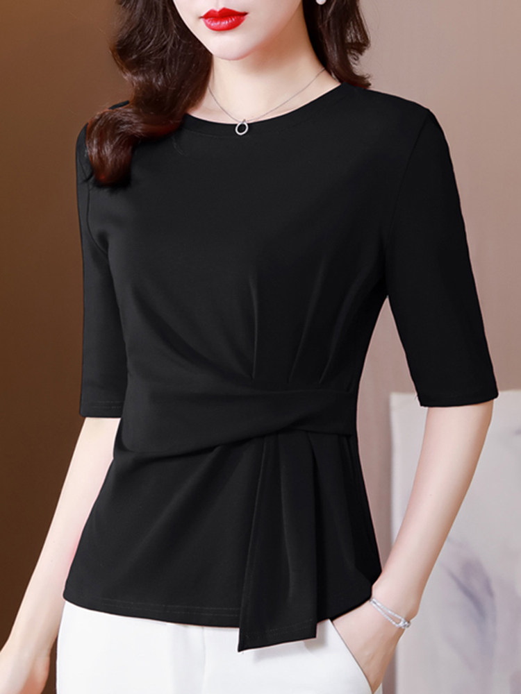 Хлопковая летняя футболка с коротким рукавом, летний приталенный корсет, в западном стиле, свободный крой