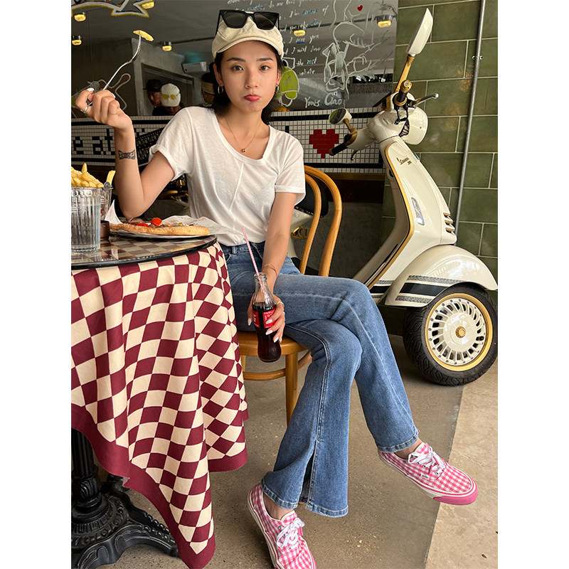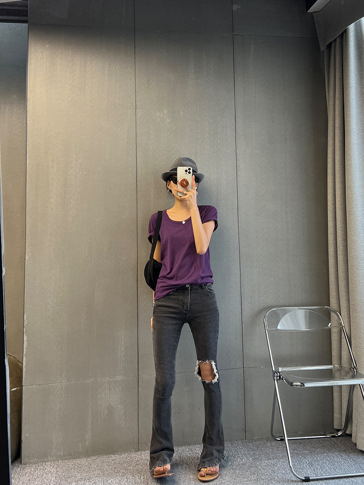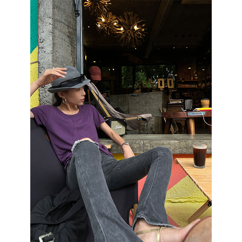 Тонкая летняя футболка с коротким рукавом, свободный крой