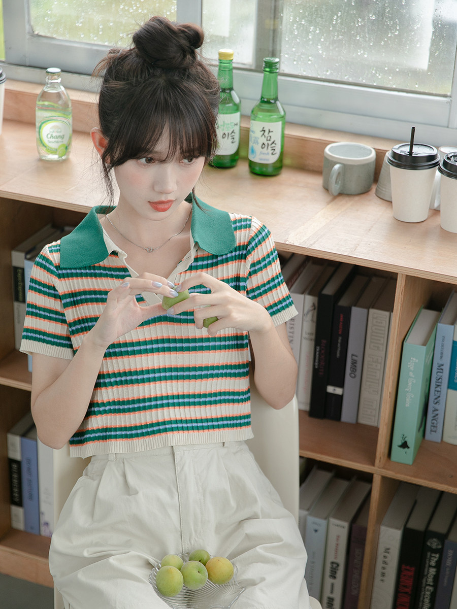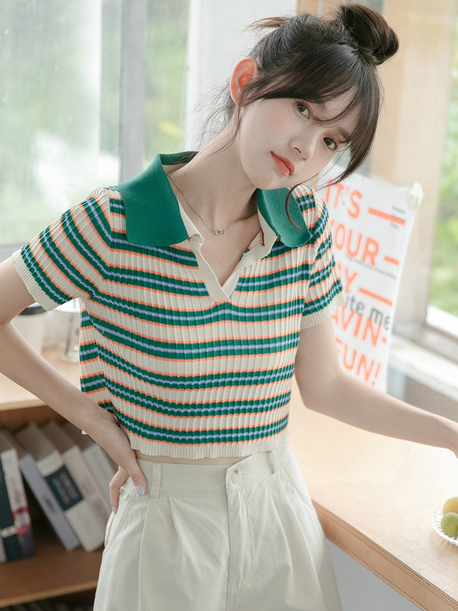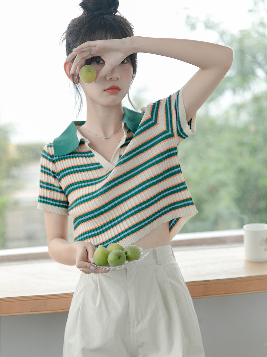 Дизайнерская короткая футболка с коротким рукавом, тренд сезона, коллекция 2023, воротник поло