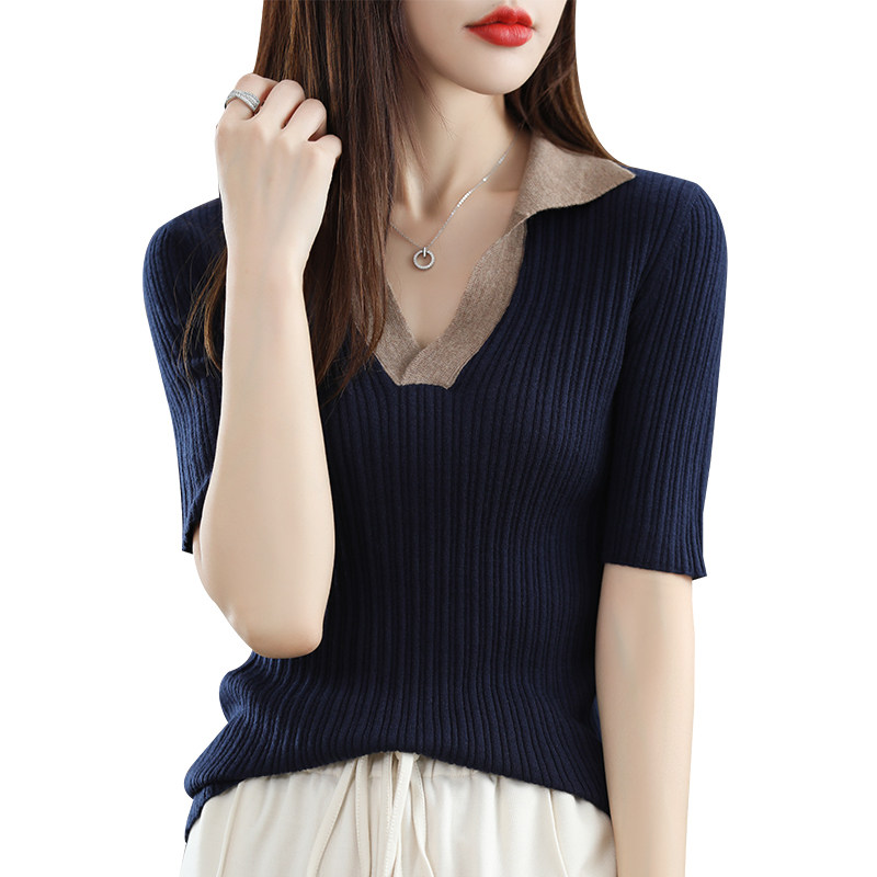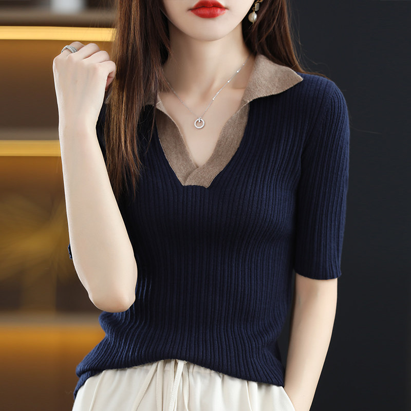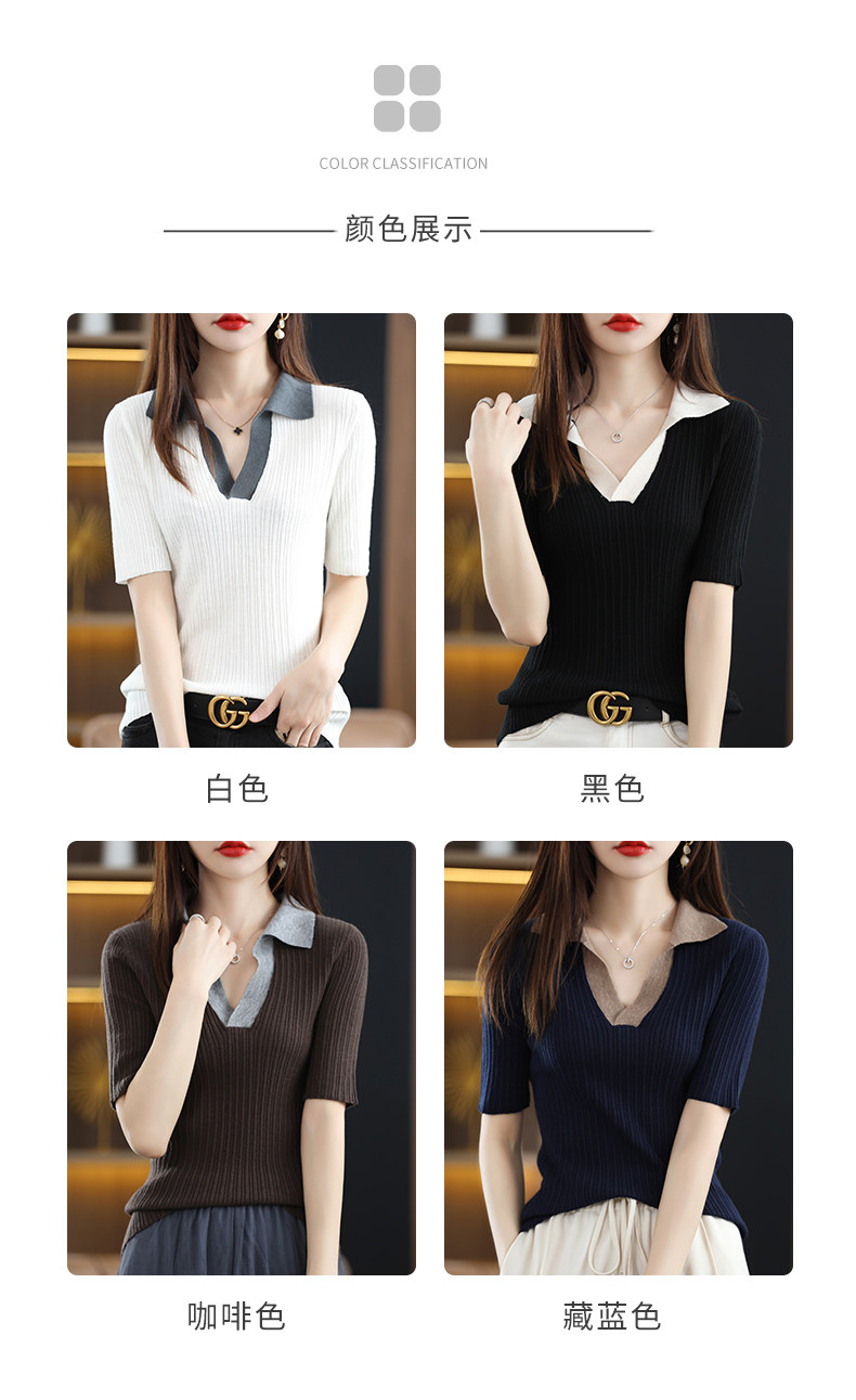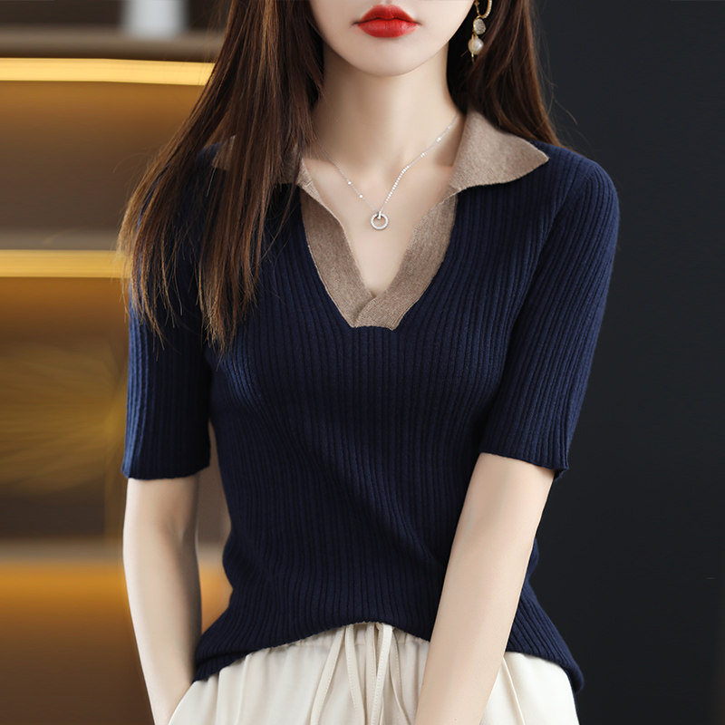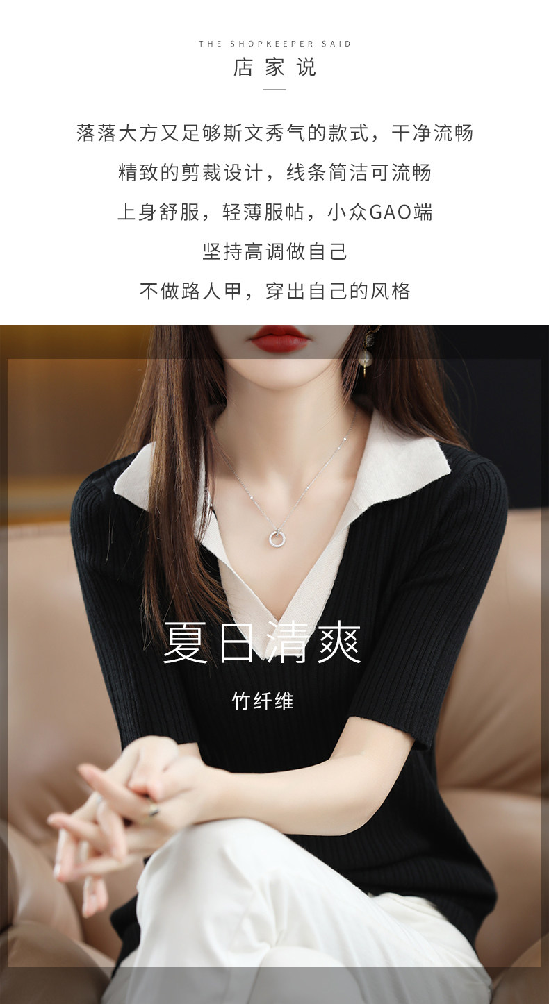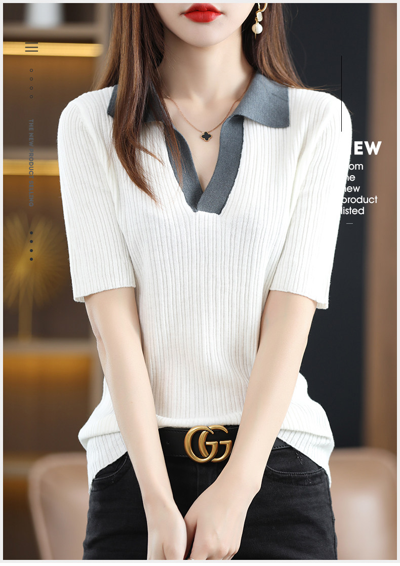 Летняя шелковая футболка, трикотажный короткий свитер, коллекция 2022, воротник поло