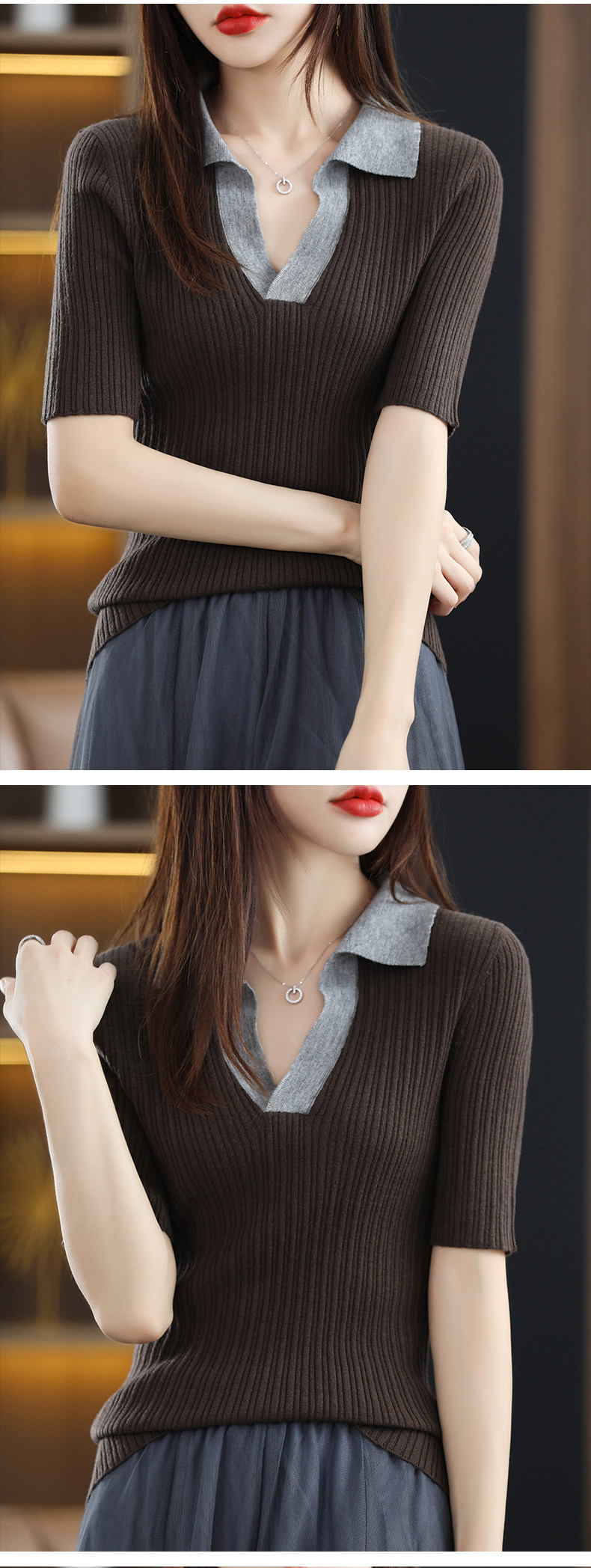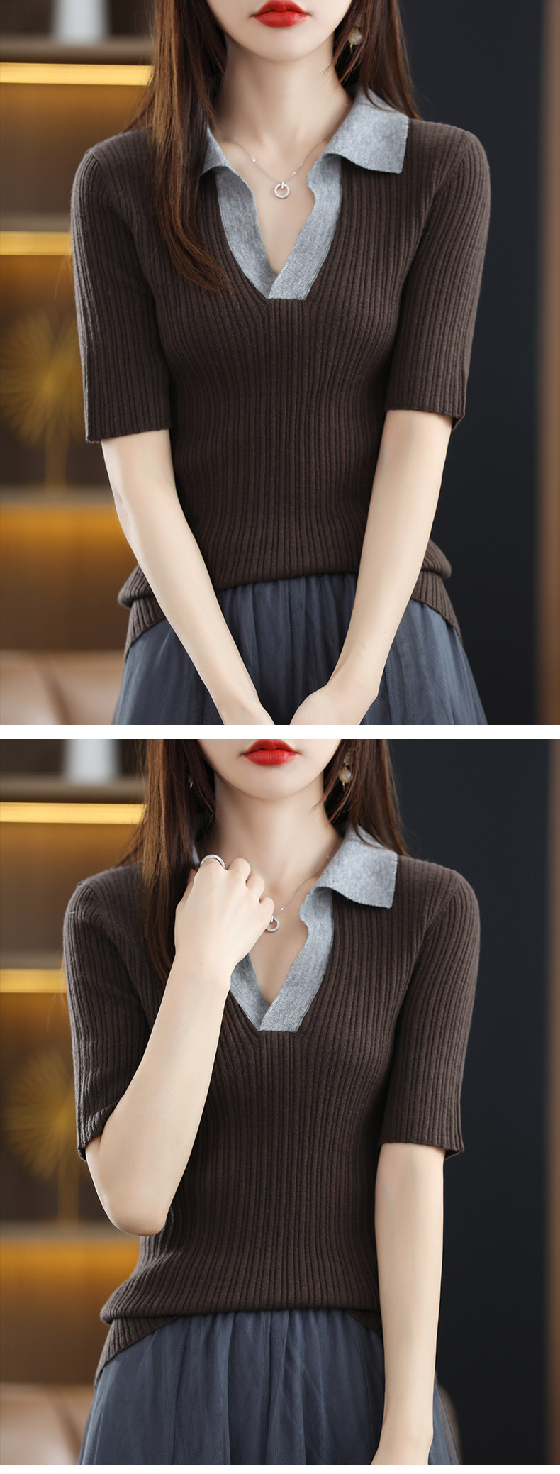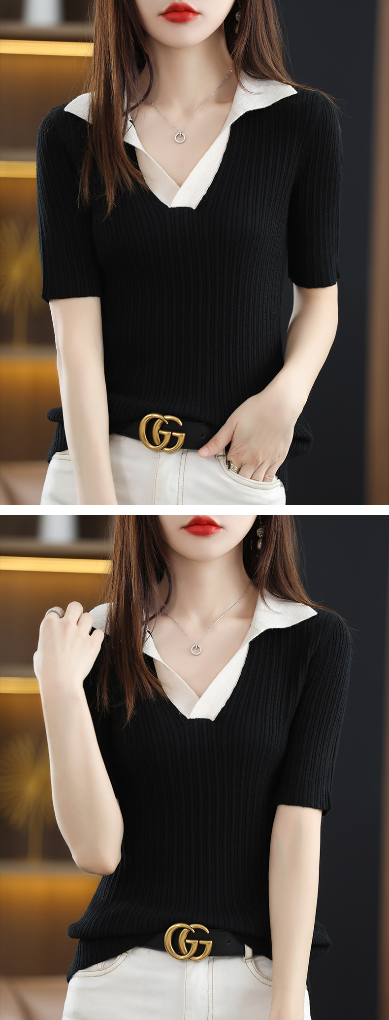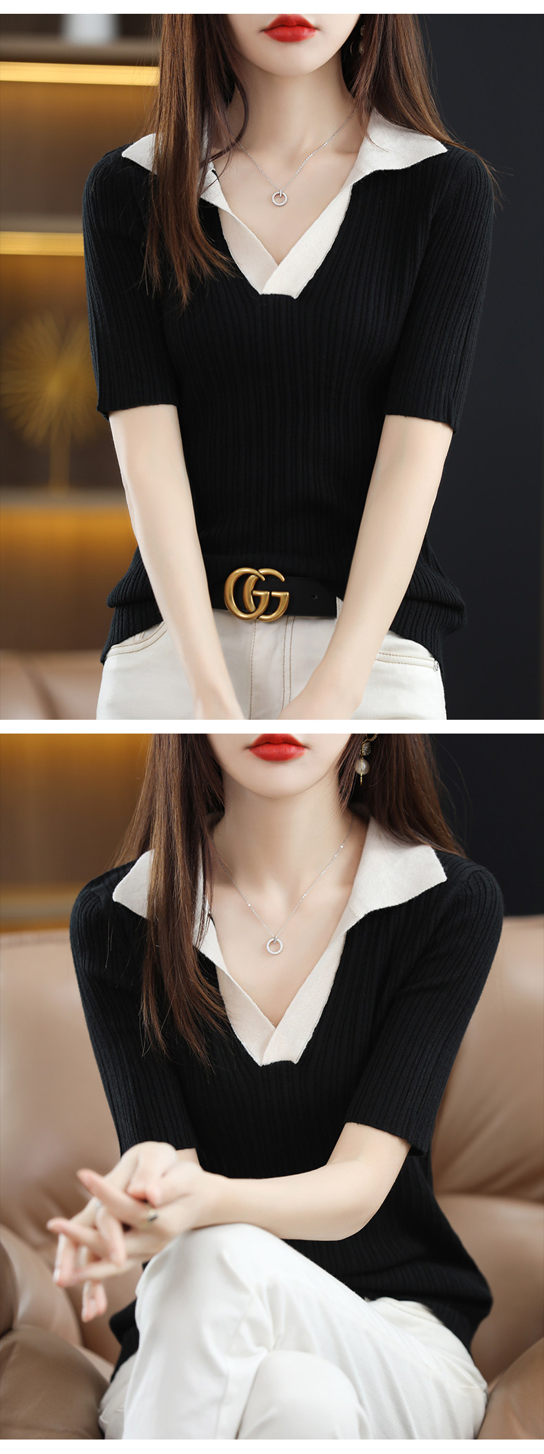 Летняя шелковая футболка, трикотажный короткий свитер, коллекция 2022, воротник поло