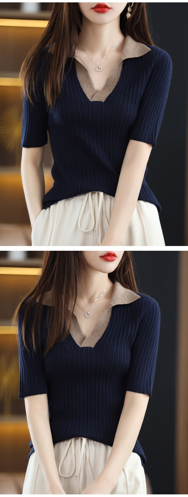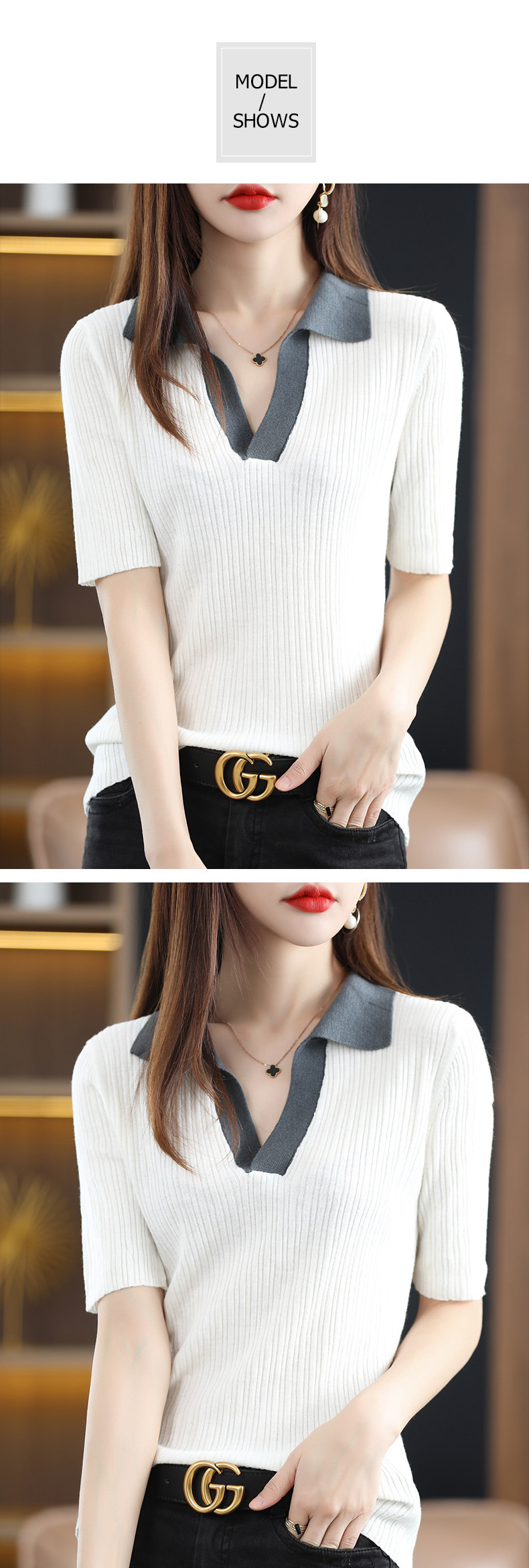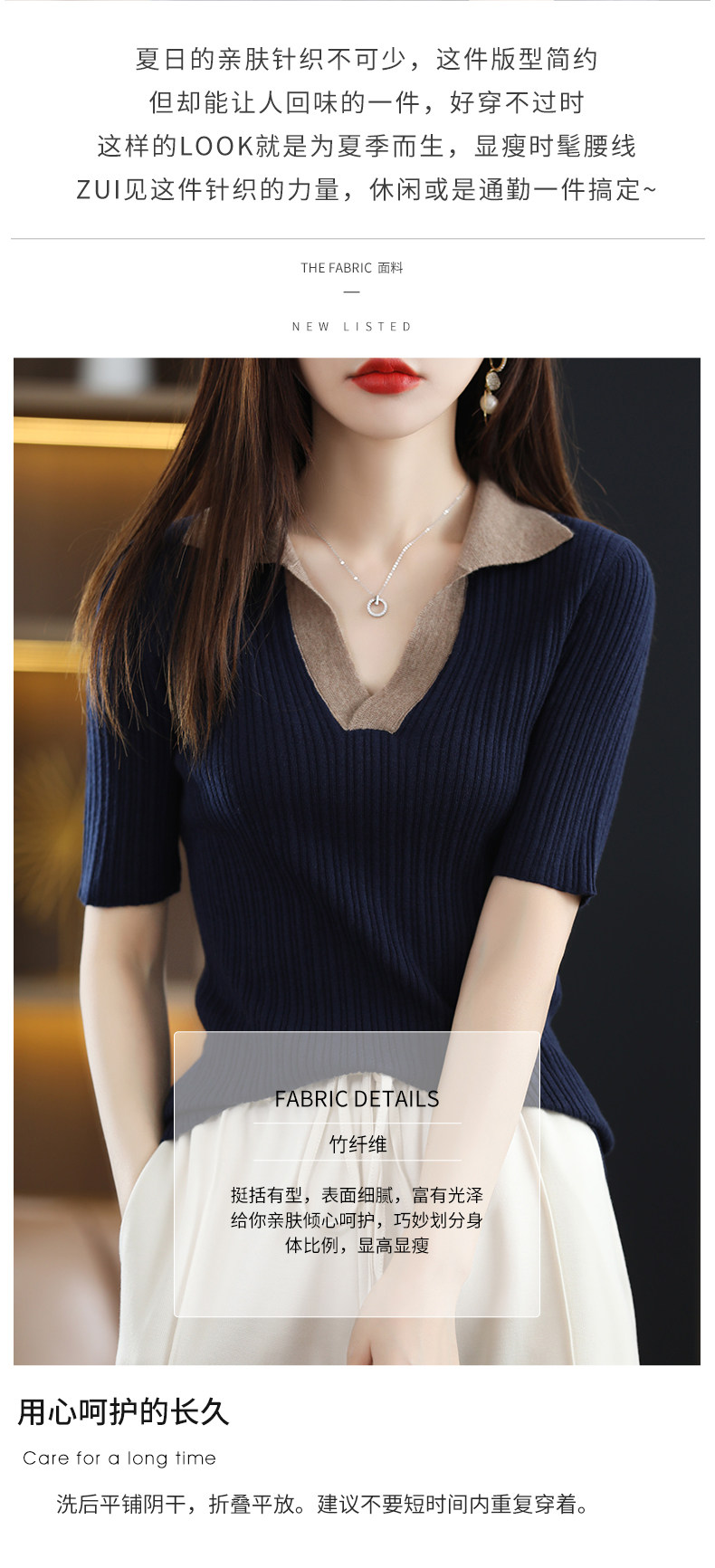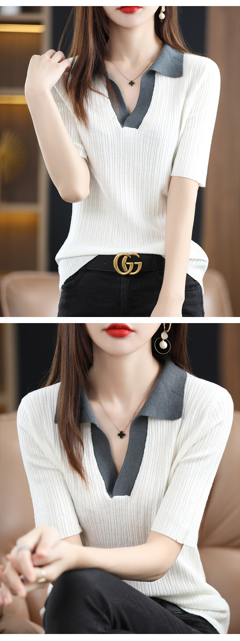 Летняя шелковая футболка, трикотажный короткий свитер, коллекция 2022, воротник поло