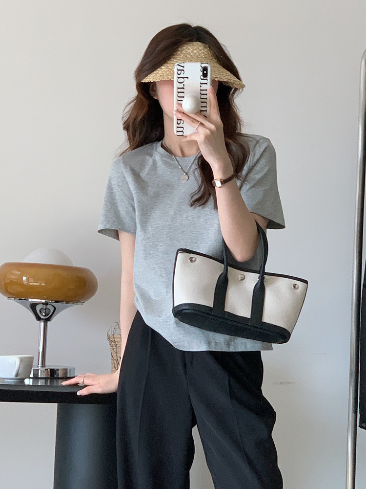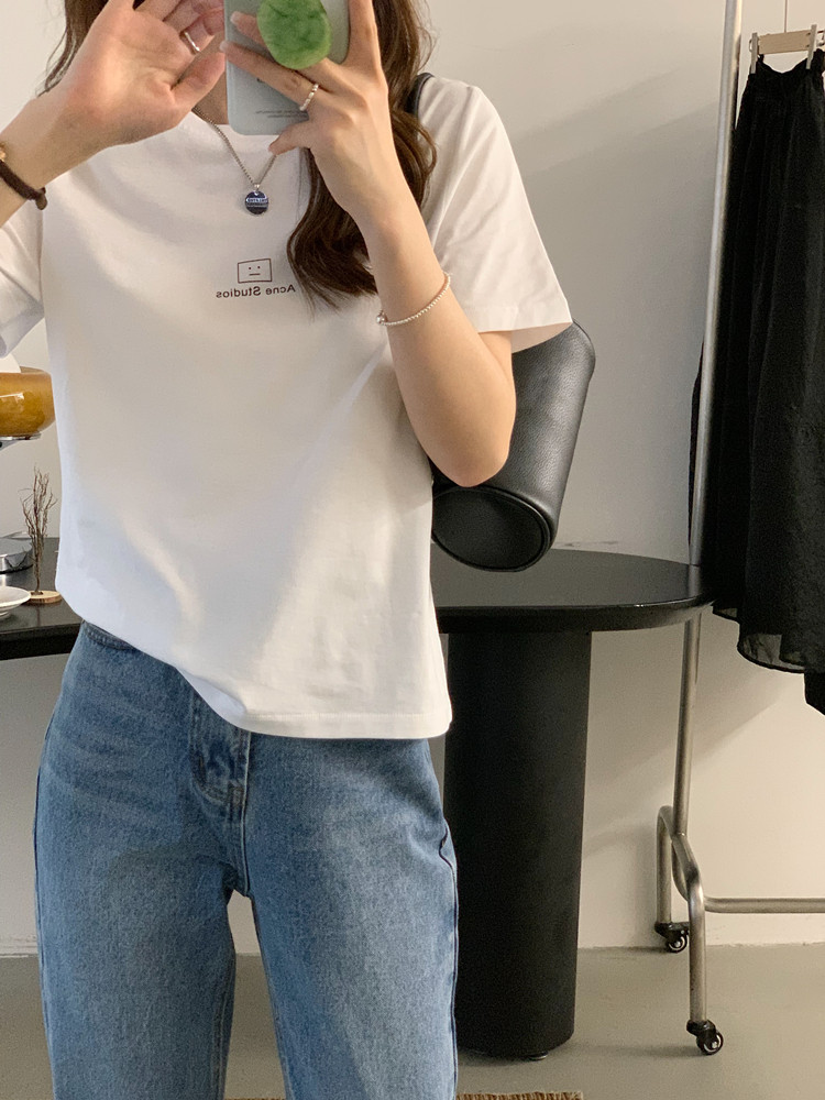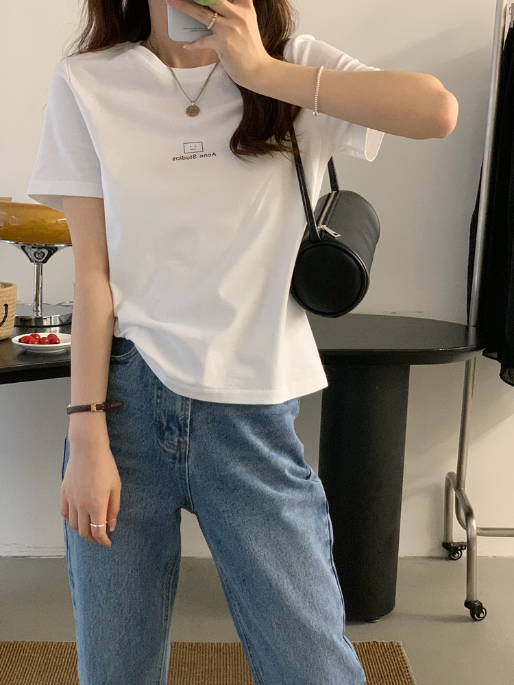 Базовая брендовая хлопковая летняя футболка с коротким рукавом для отдыха с круглым воротником