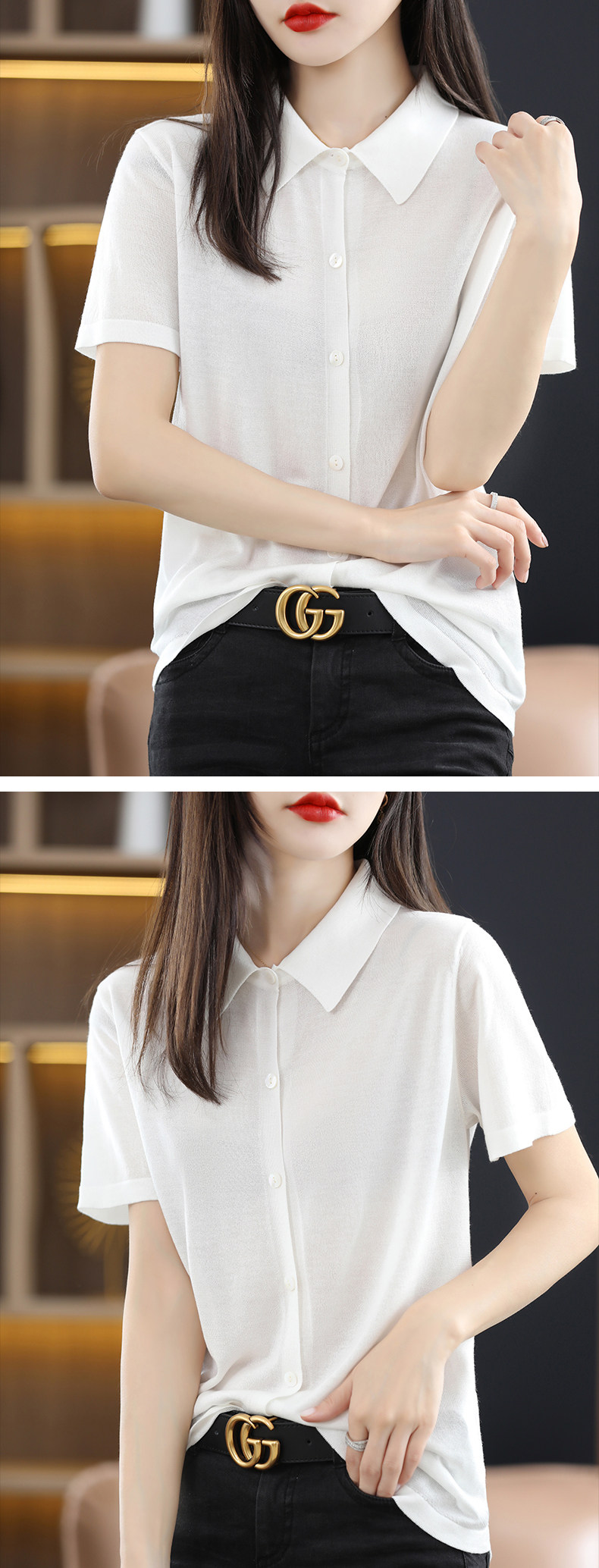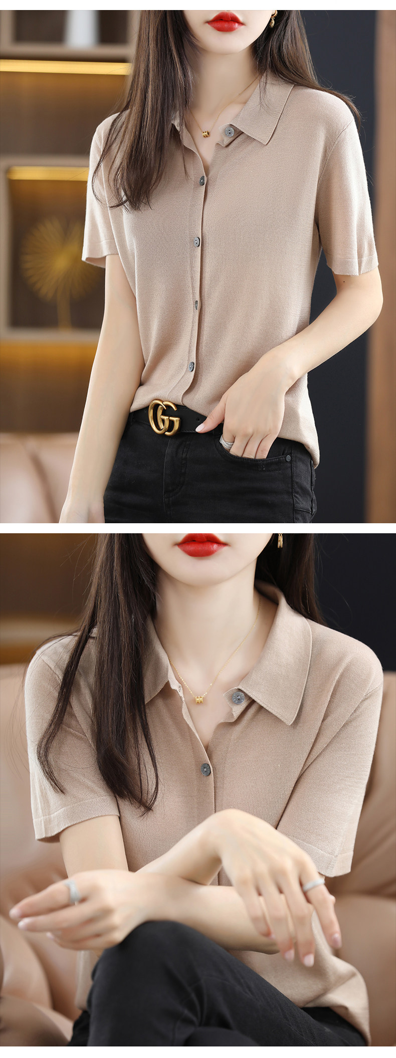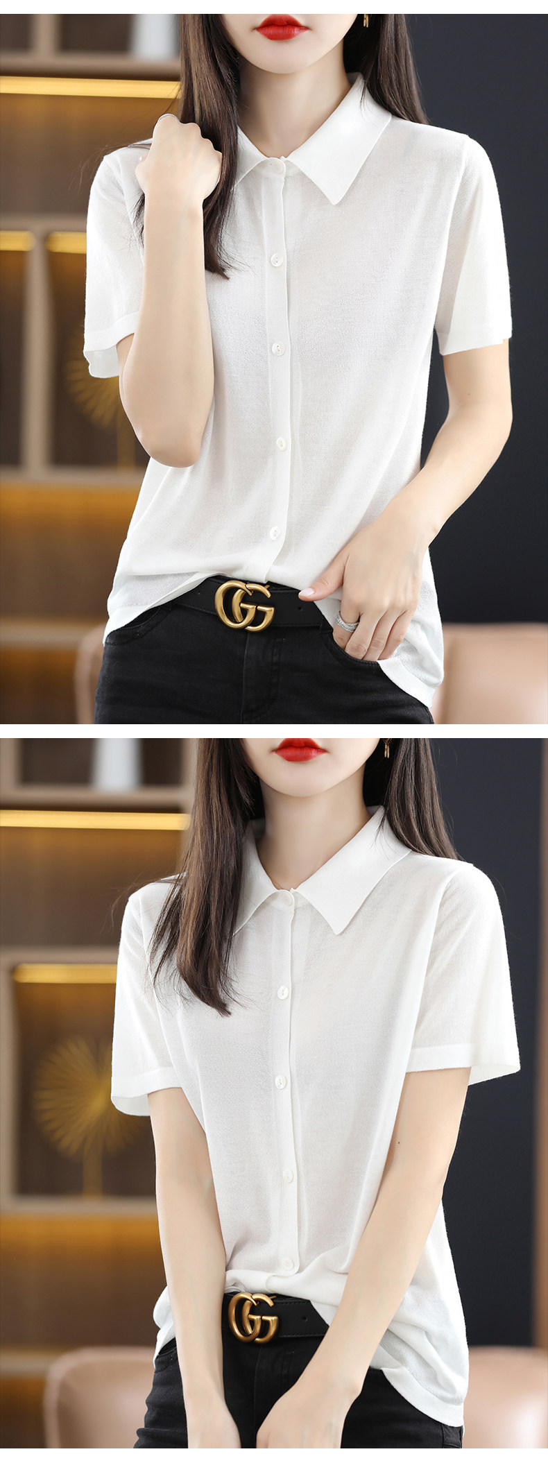 Футболка, тонкий кардиган, шелковая рубашка, воротник поло
