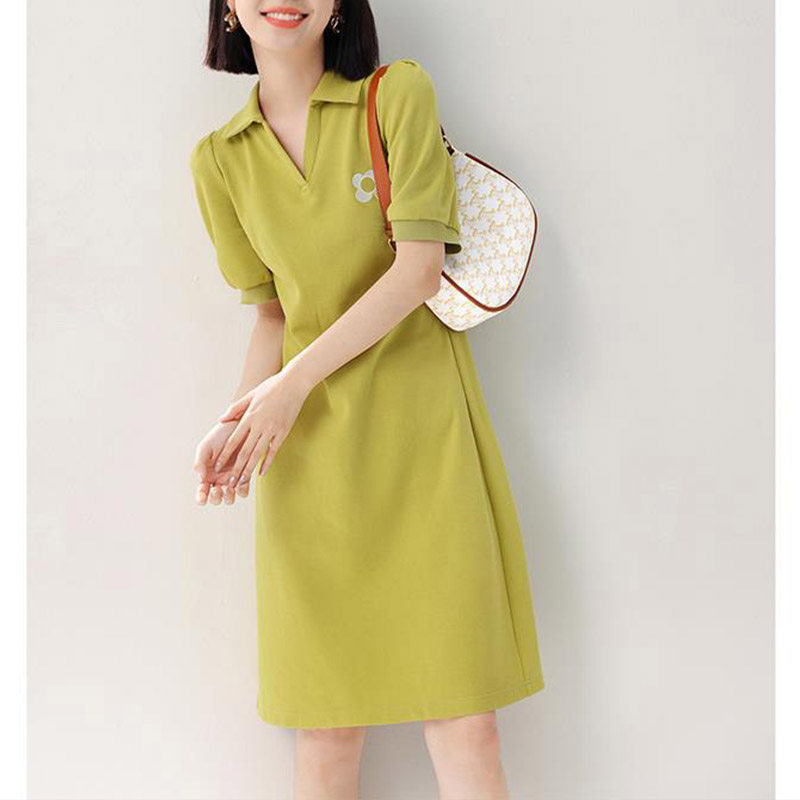 Летняя длинная юбка для отдыха, шелковое платье в форме цветка, воротник поло, средней длины, с вышивкой