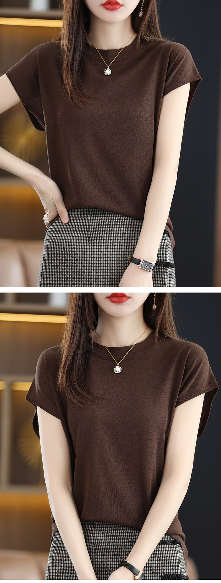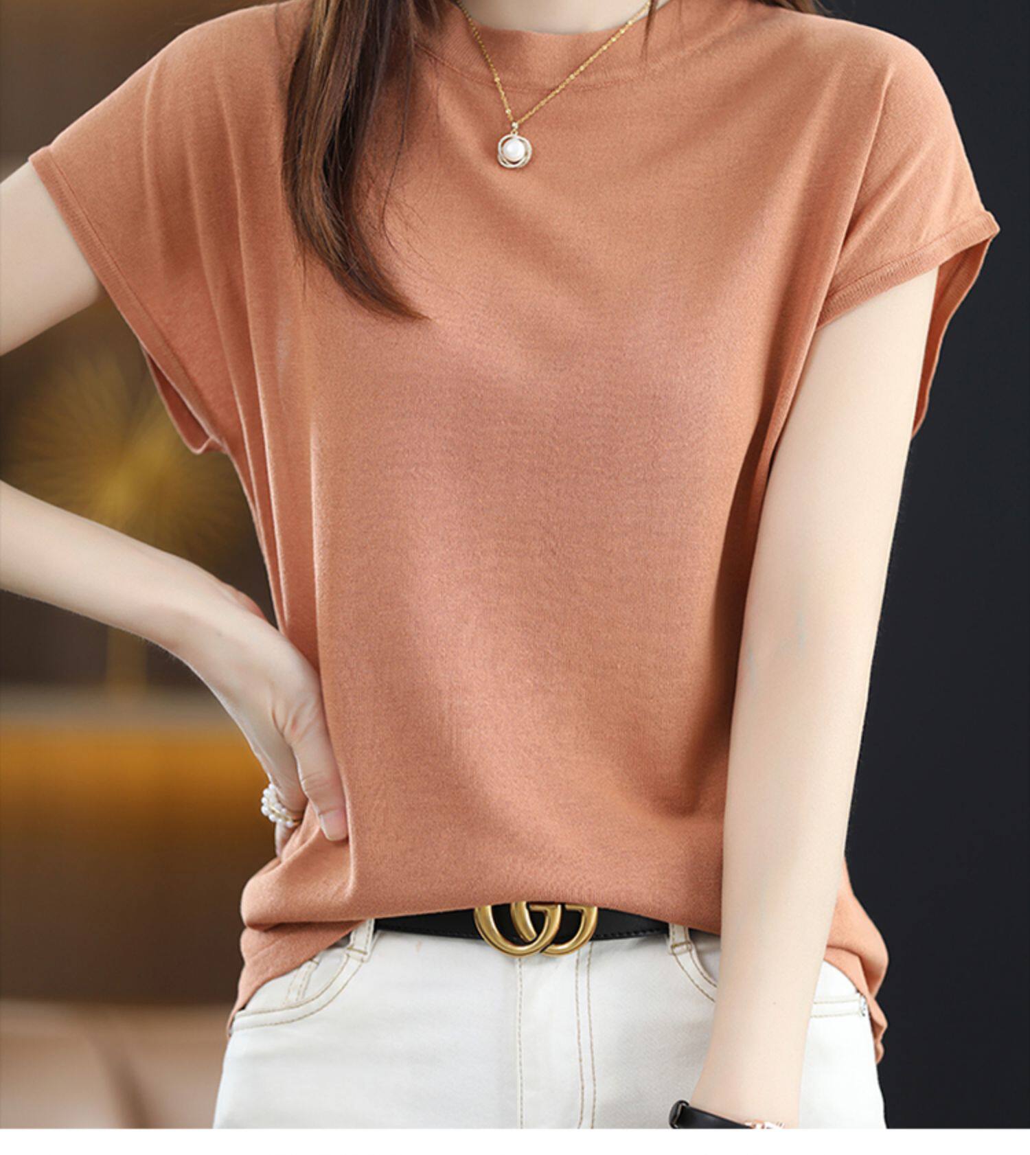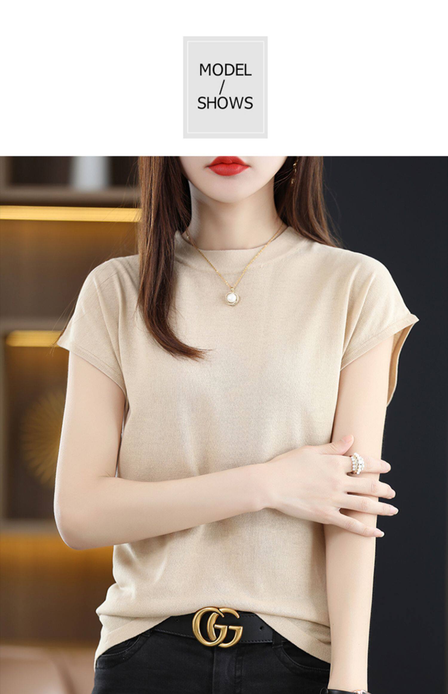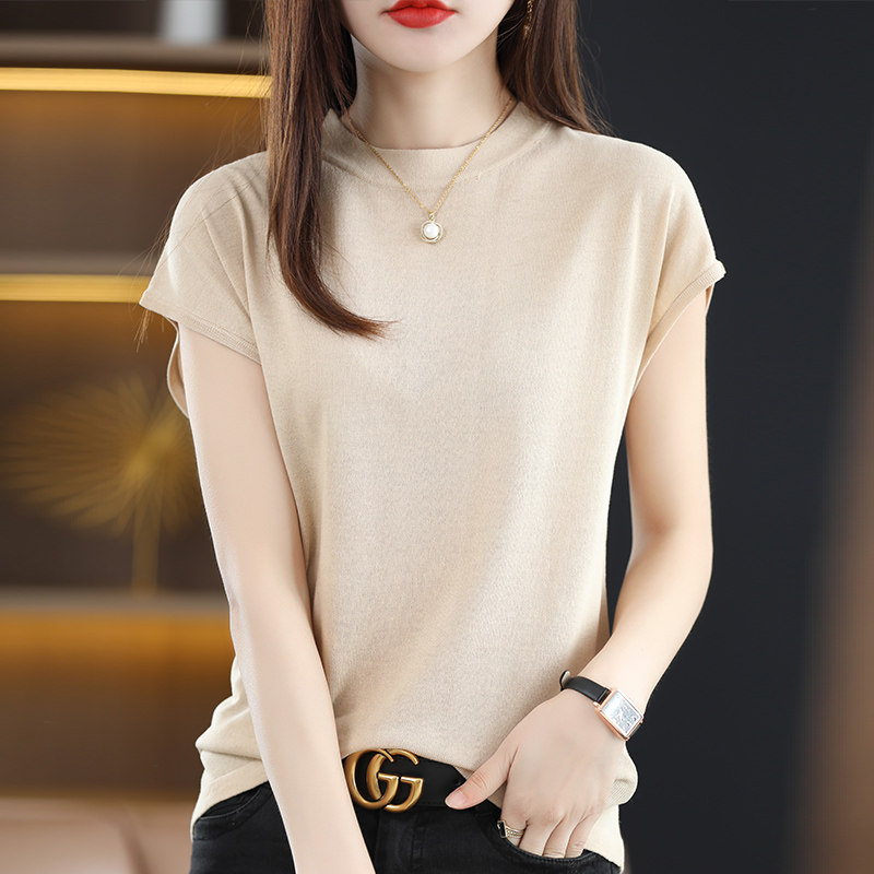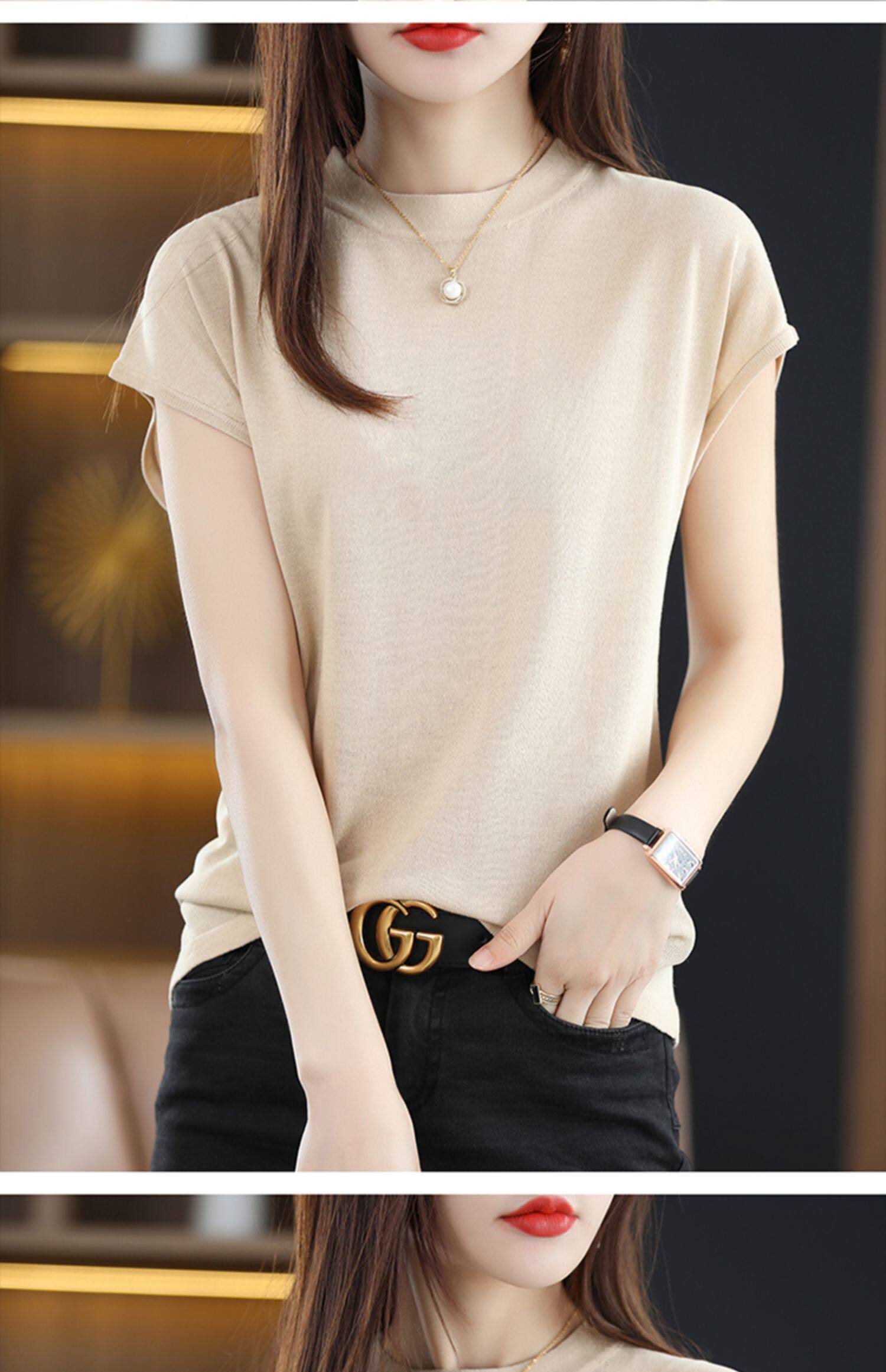 Летняя короткая футболка, трикотажный жилет без рукавов, свитер, высокий воротник, 2024 года