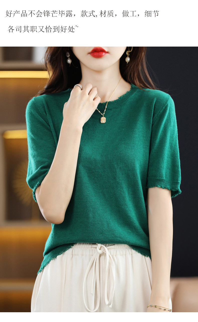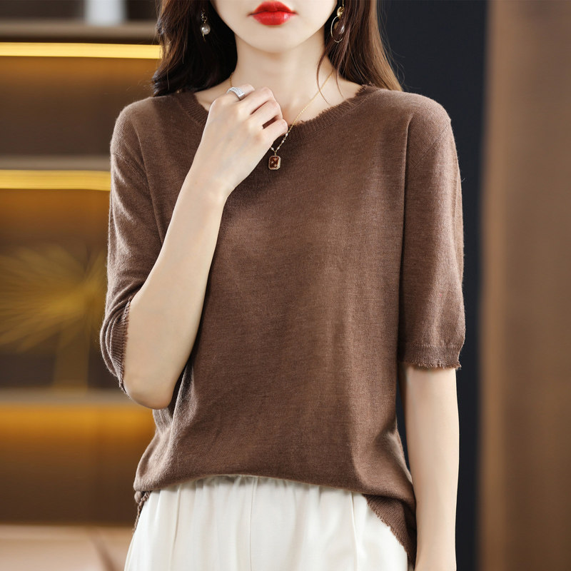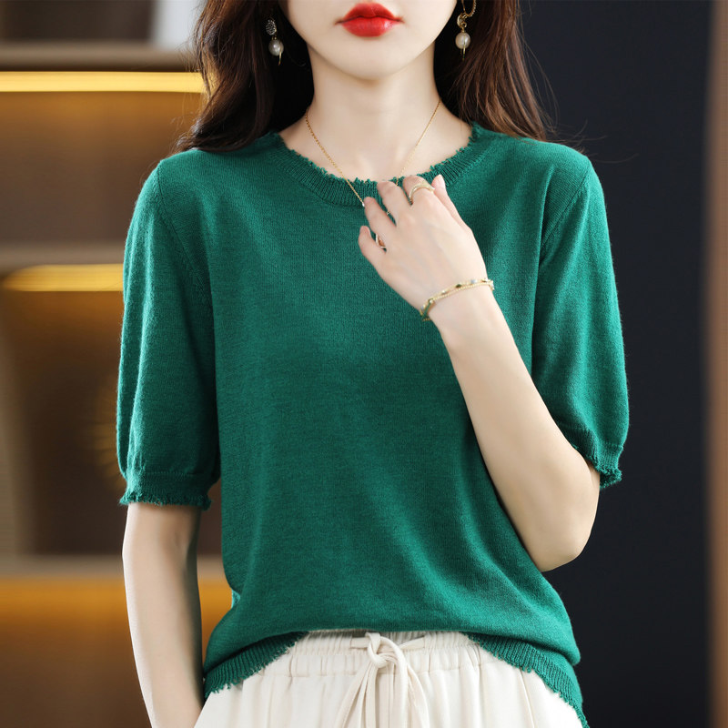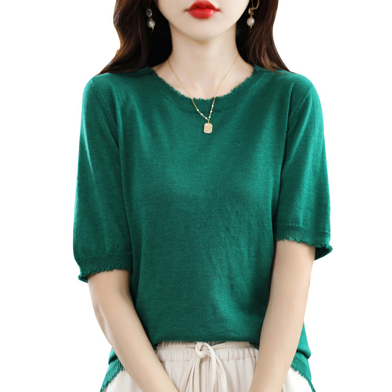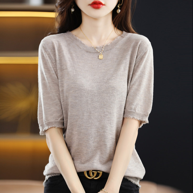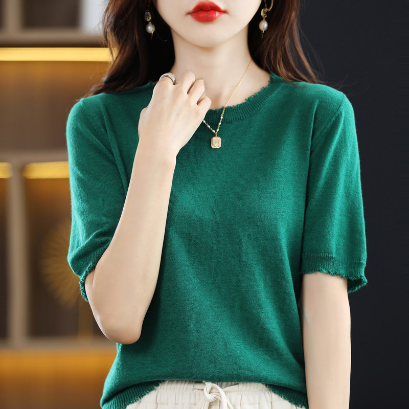 Летняя футболка с коротким рукавом, тонкий трикотажный короткий дизайнерский свитер с круглым воротником, коллекция 2022, тренд сезона