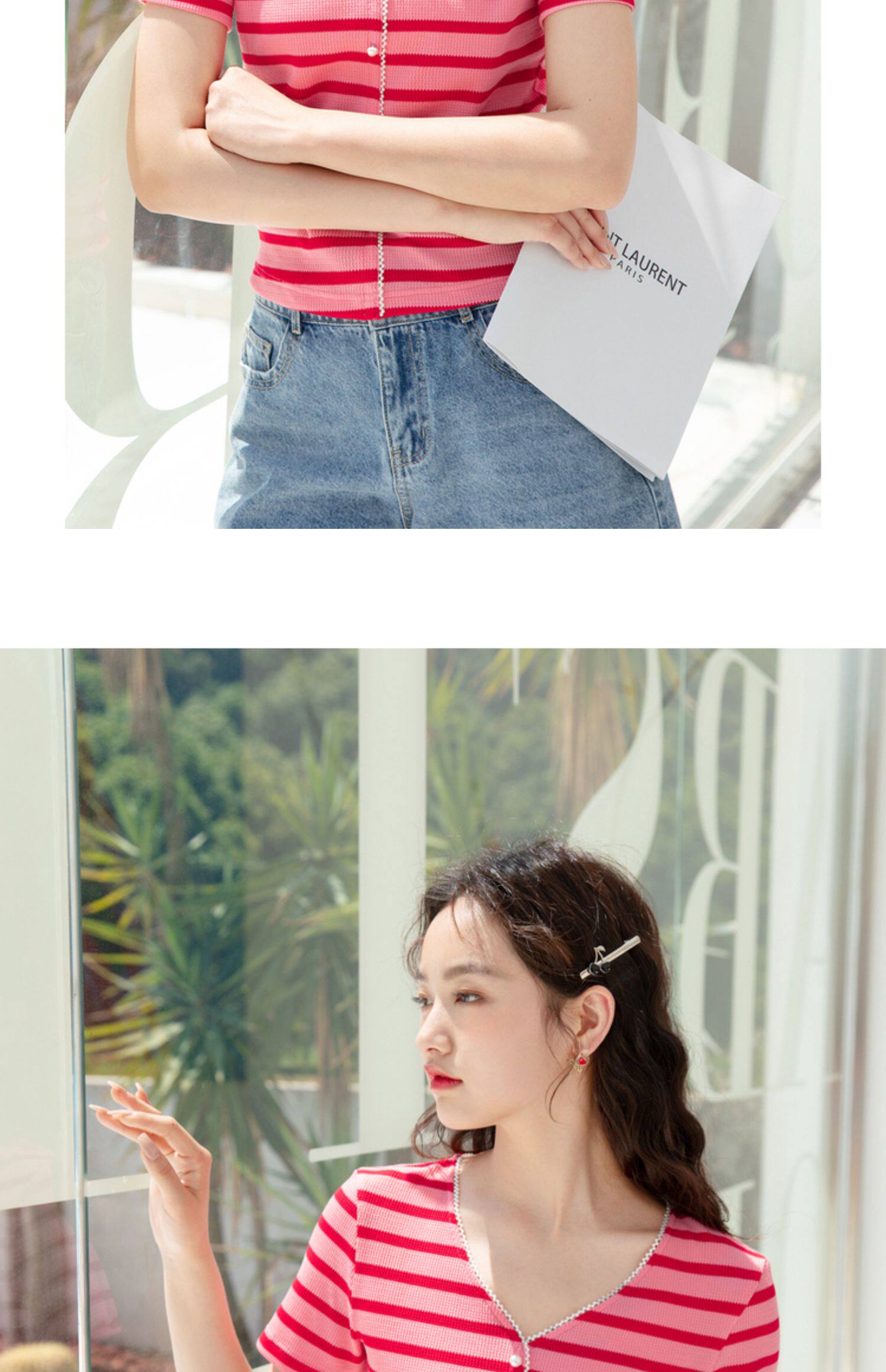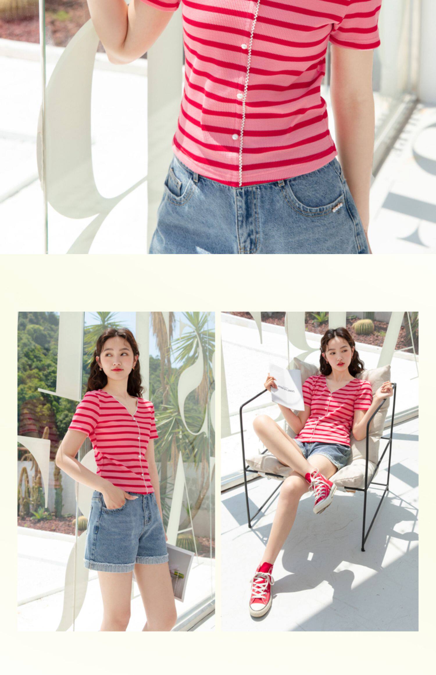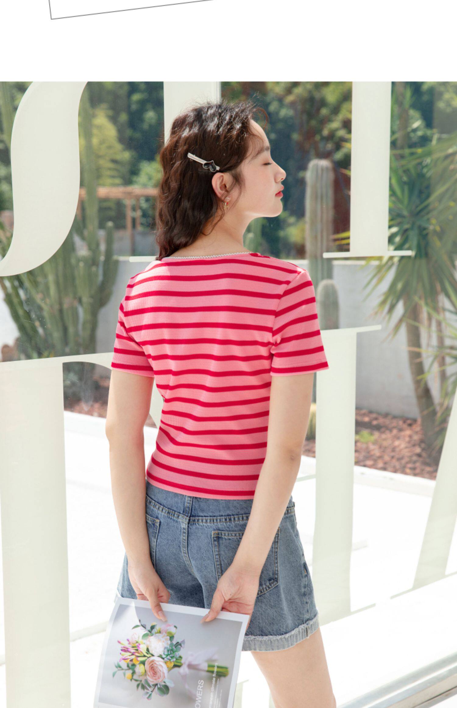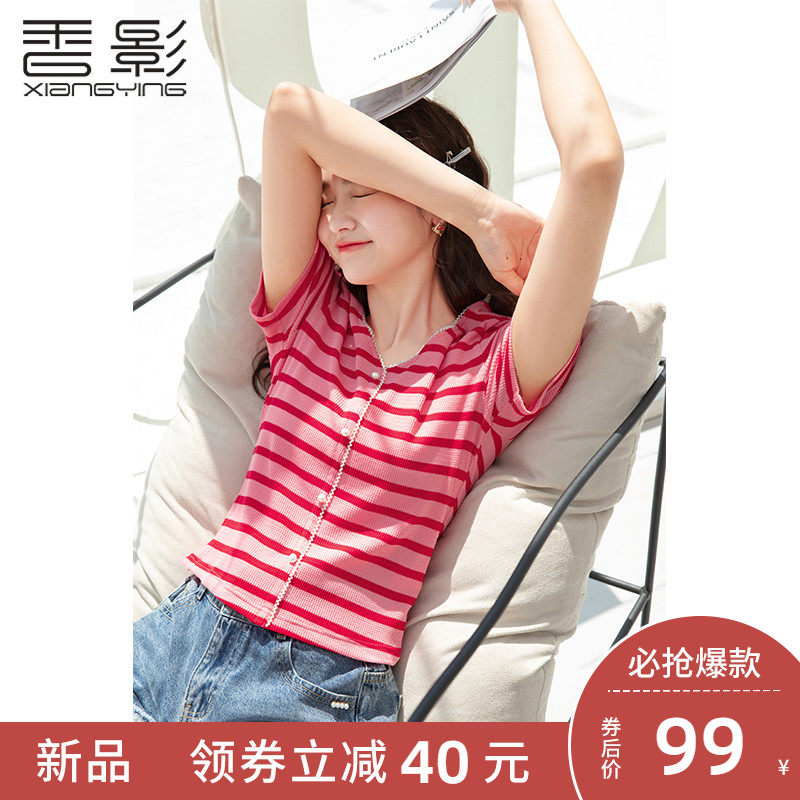 Красная трикотажная летняя дизайнерская короткая футболка, короткий рукав, тренд сезона, V-образный вырез