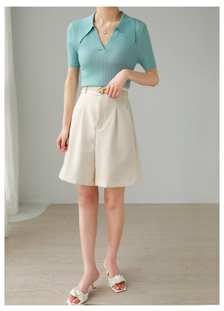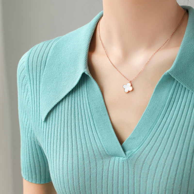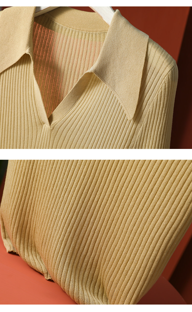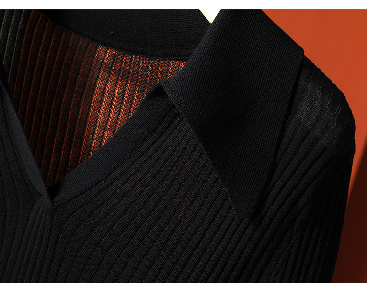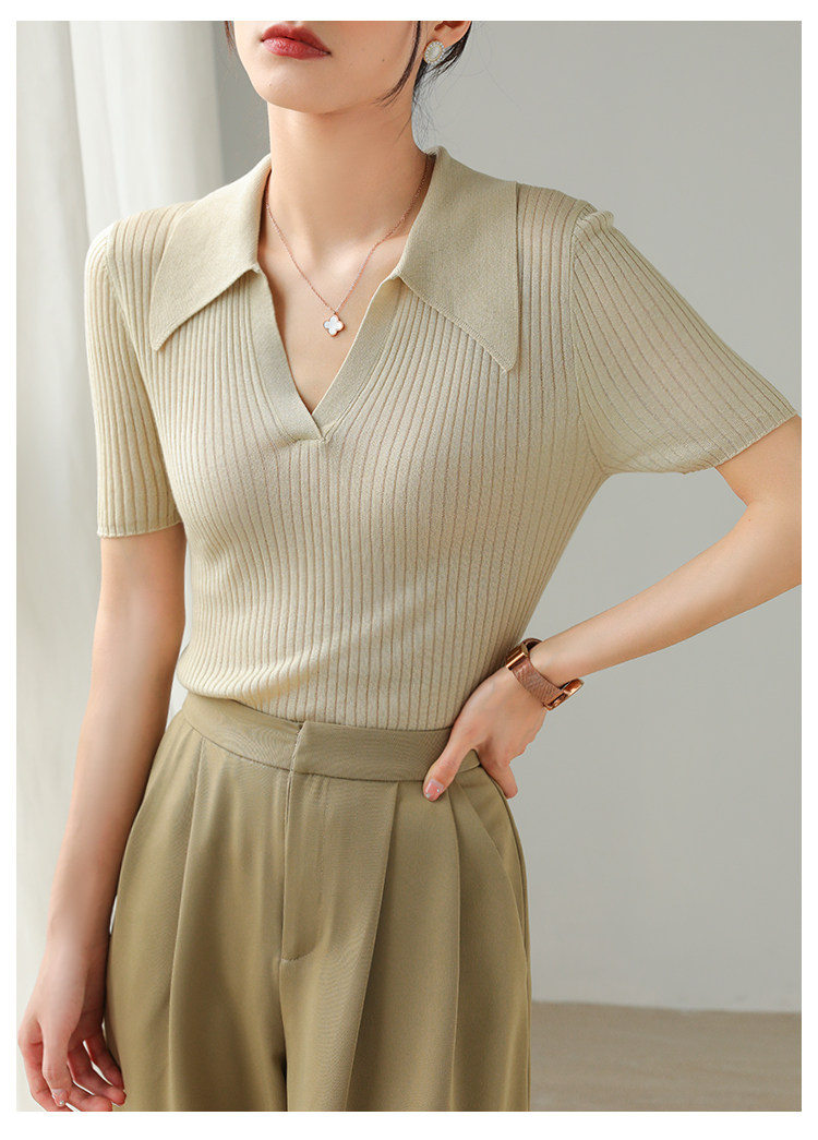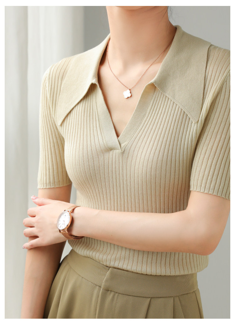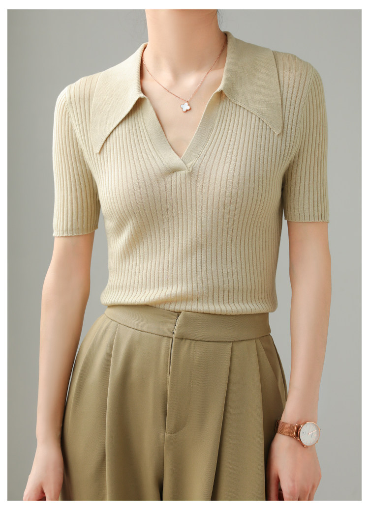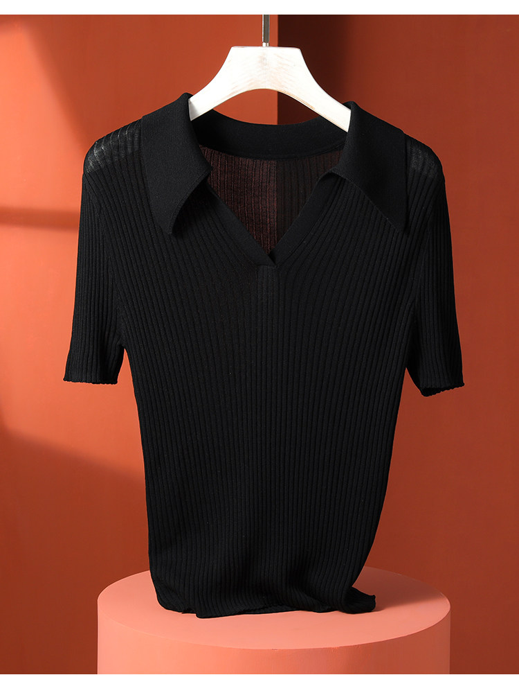 Тонкий трикотажный летний свитер, футболка, воротник поло, яркий броский стиль, короткий рукав, подходит для подростков