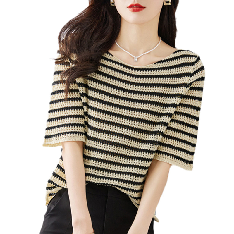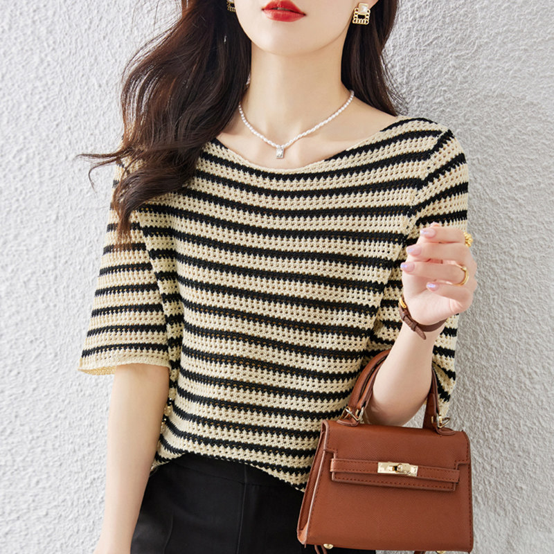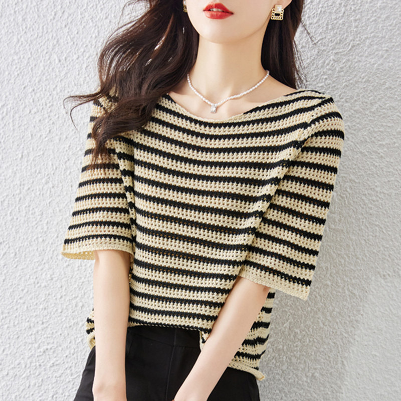 Летняя трикотажная футболка с коротким рукавом, коллекция 2023, свободный крой, в западном стиле
