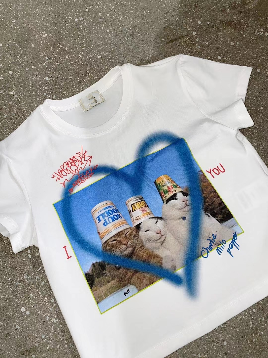 Уникальный Sei Summer New Three Cats Love Print нерегулярно галстук -Дя -дефуал -короткий