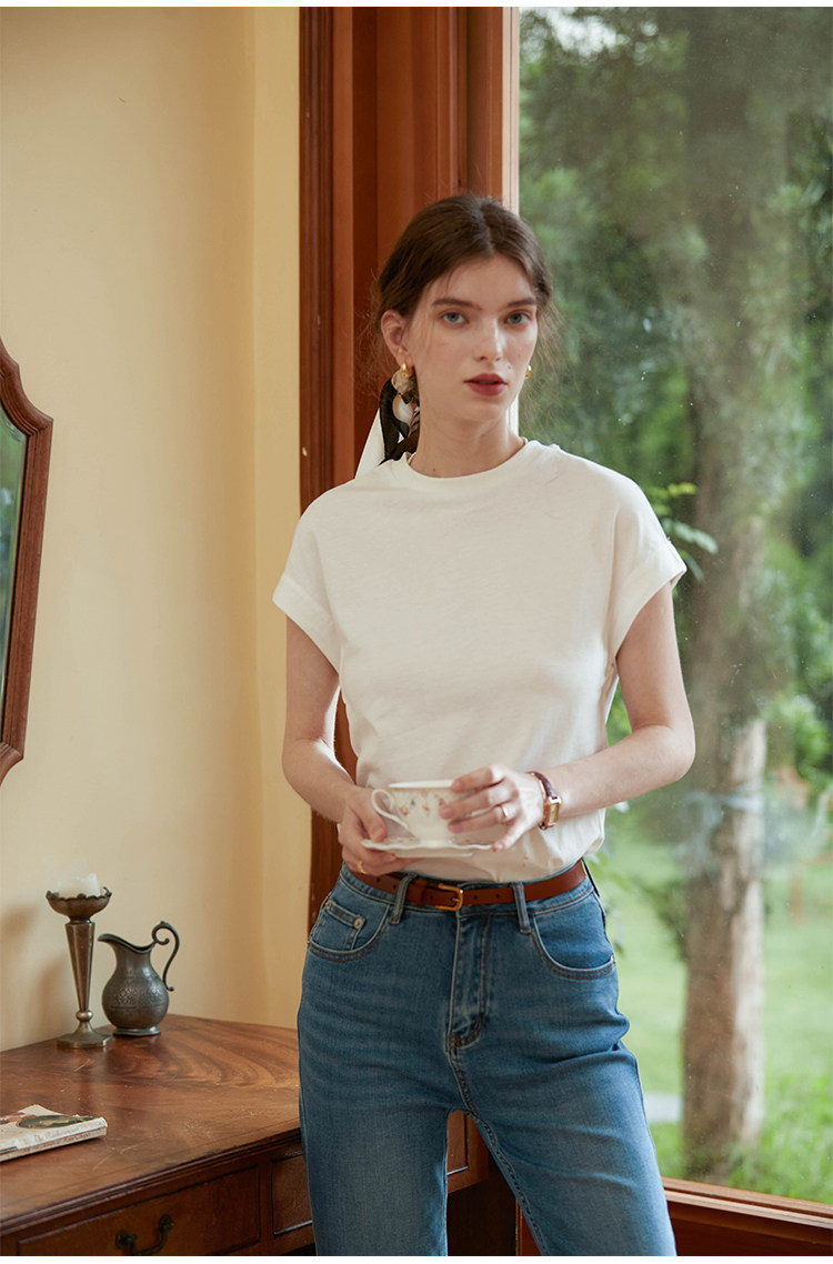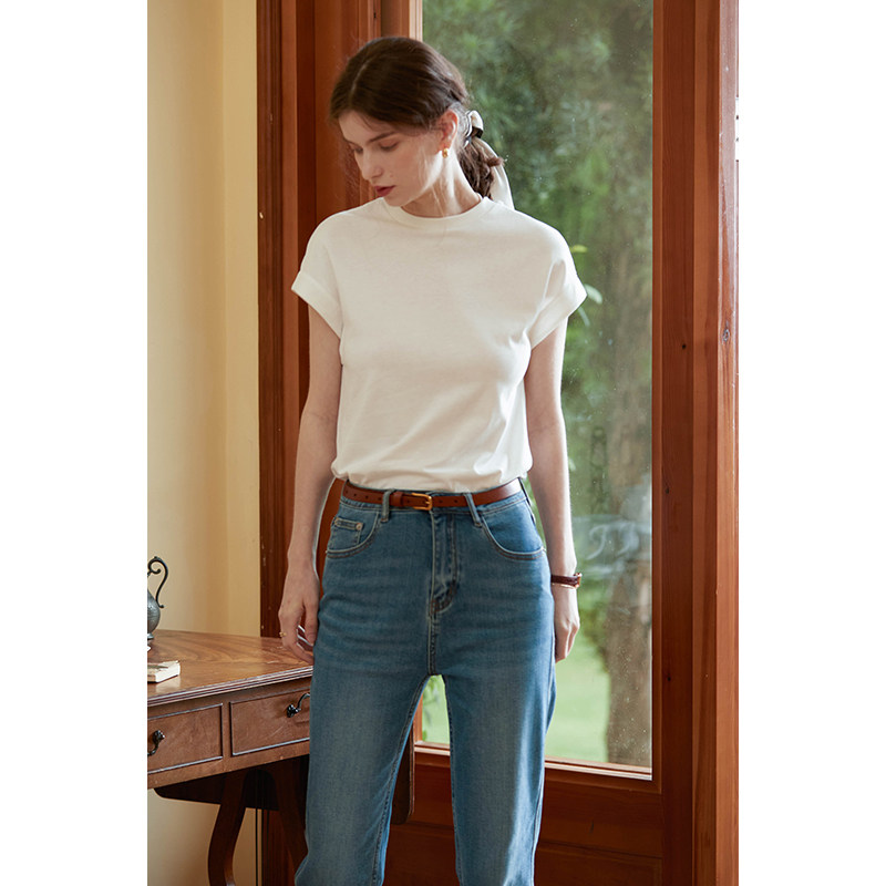 Летняя базовая хлопковая цветная футболка с круглым воротником, короткий рукав