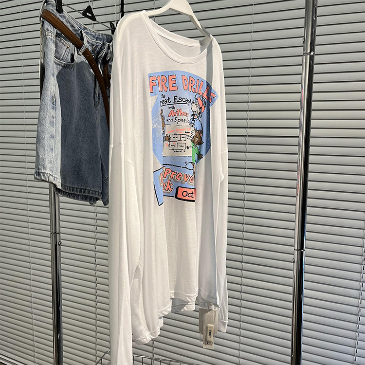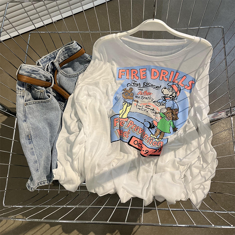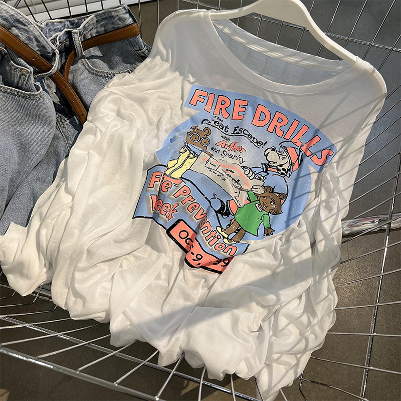 Прохладный легкий и тонкий дышащий летний мультяшный лонгслив, в корейском стиле, защита от солнца