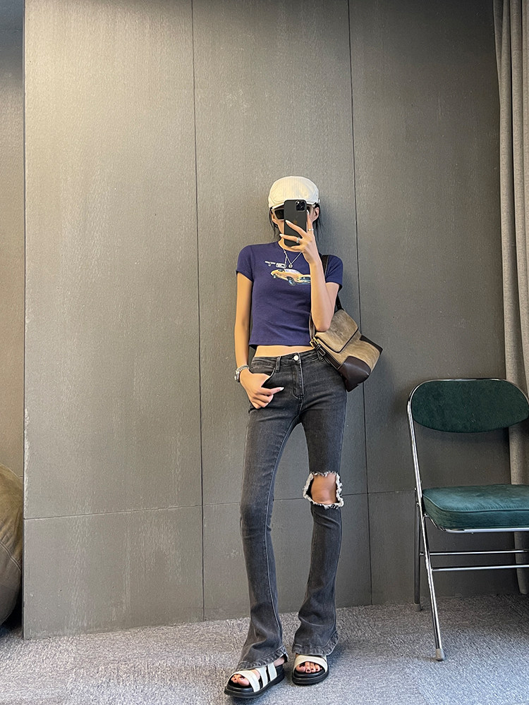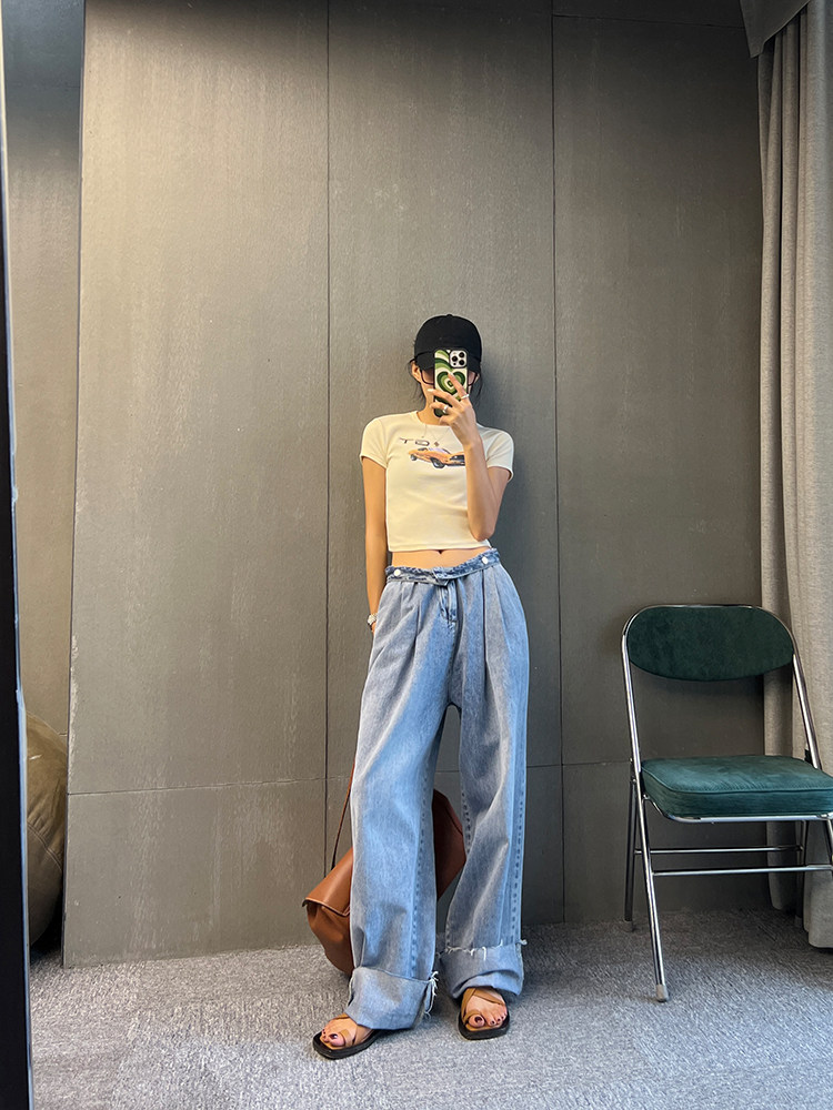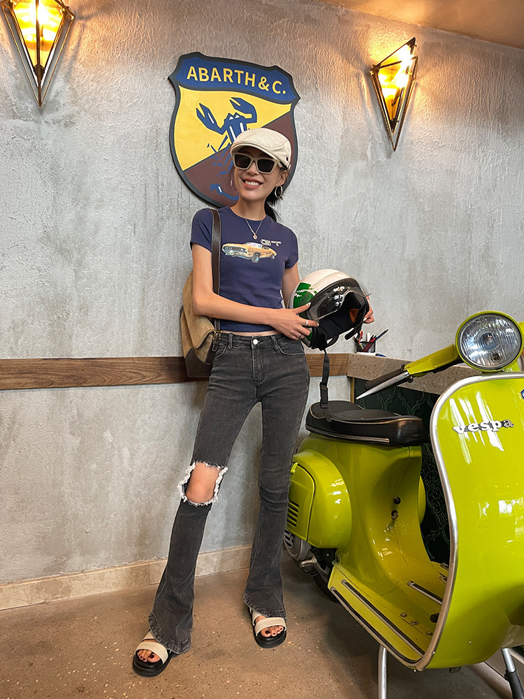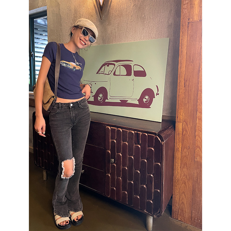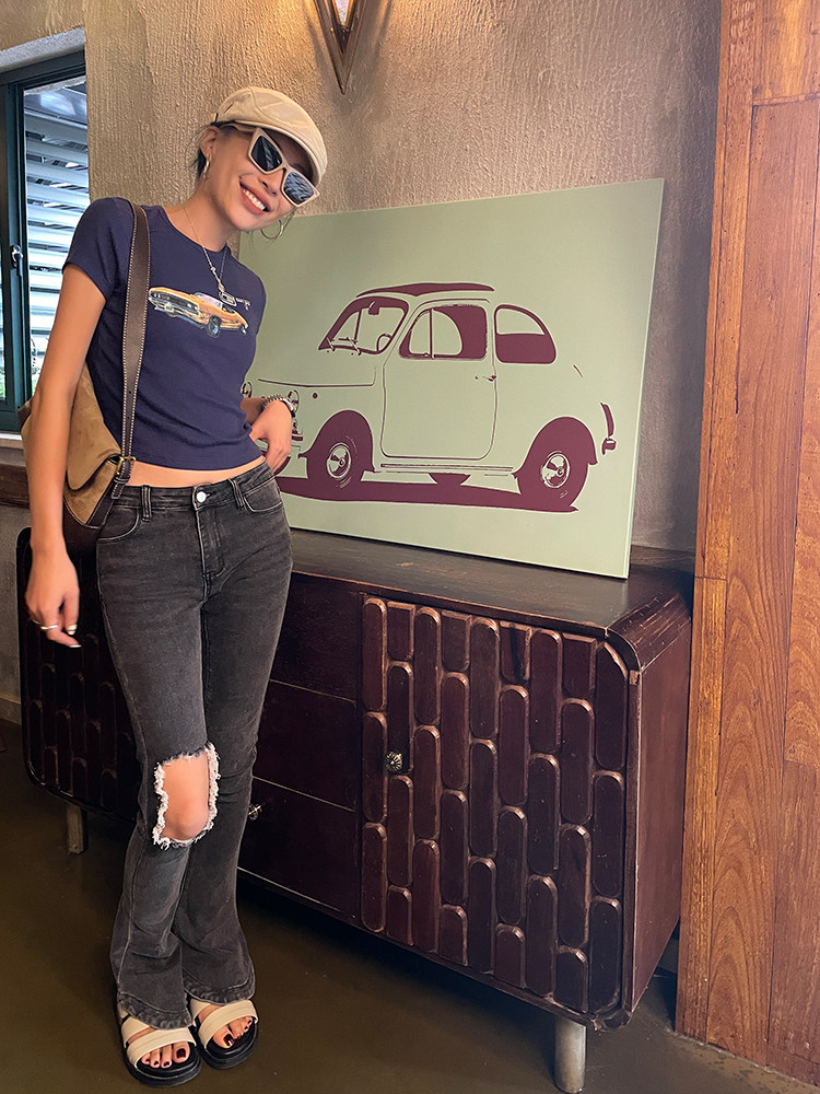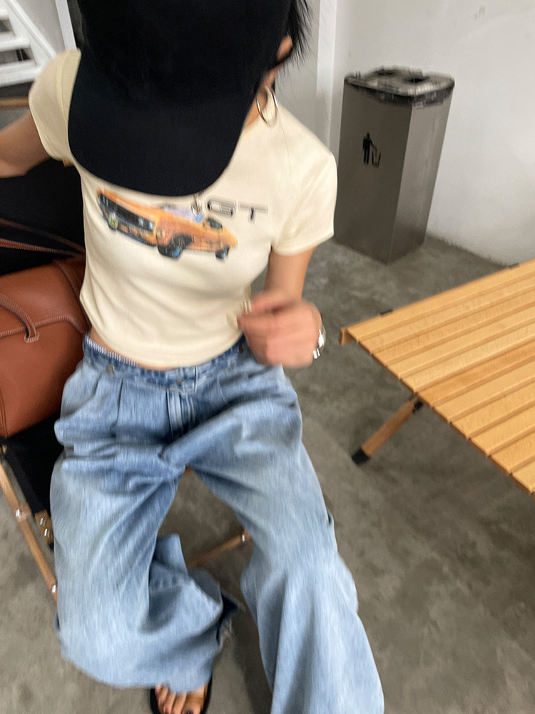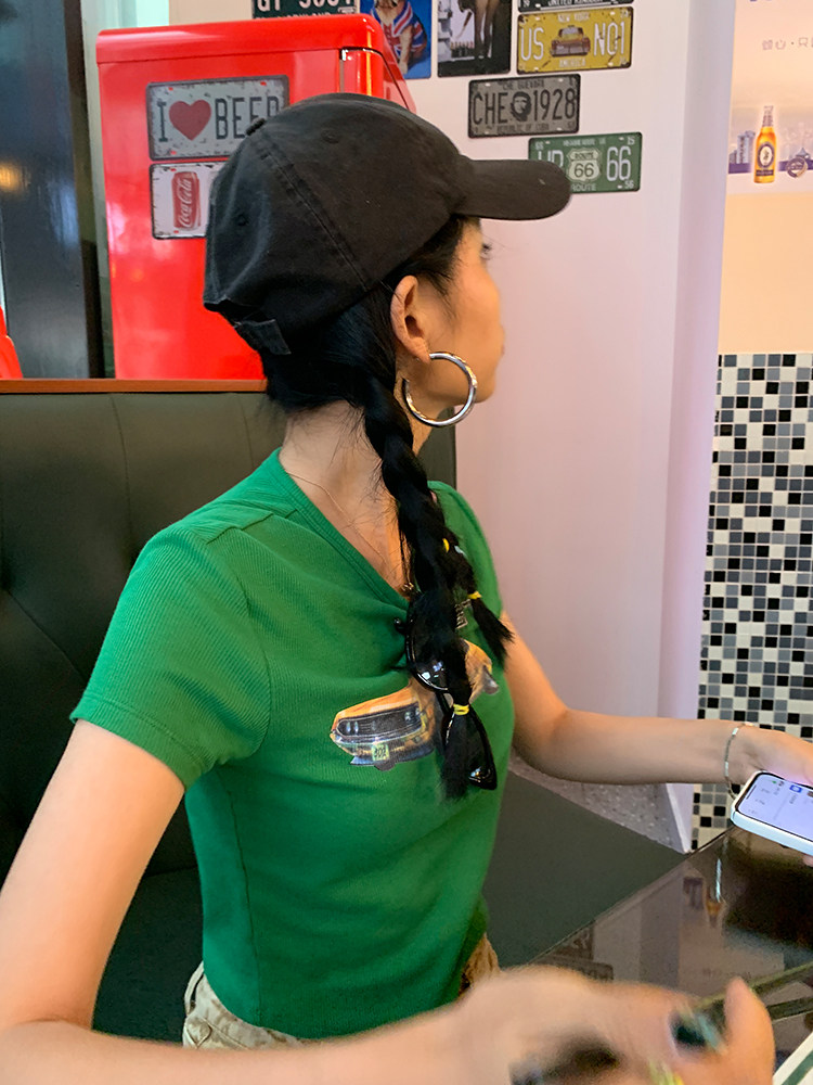 Ретро короткая футболка с круглым воротником, в американском стиле, облегающий крой