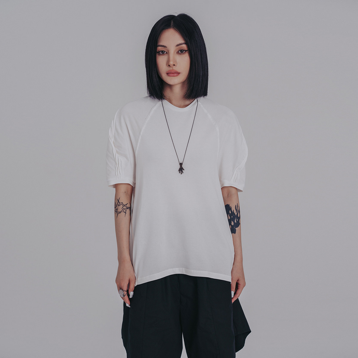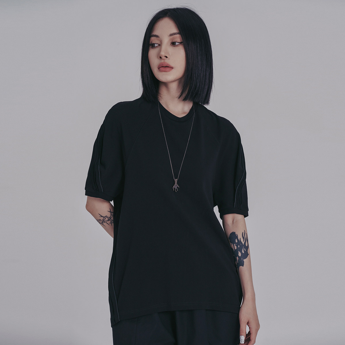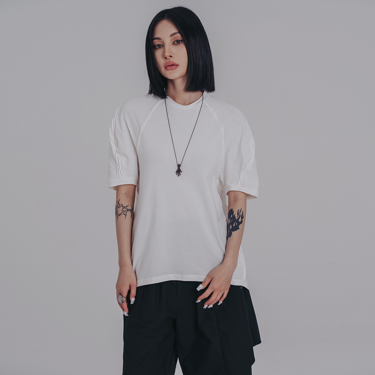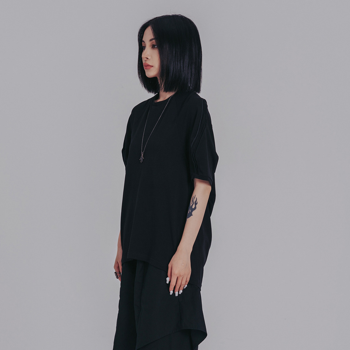 Простая черная летняя новая индивидуальность Простая черно -белая свободная случайная коротка -