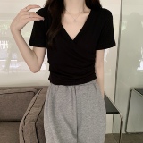Высококачественная сексуальная летняя футболка, большой размер, в корейском стиле, V-образный вырез