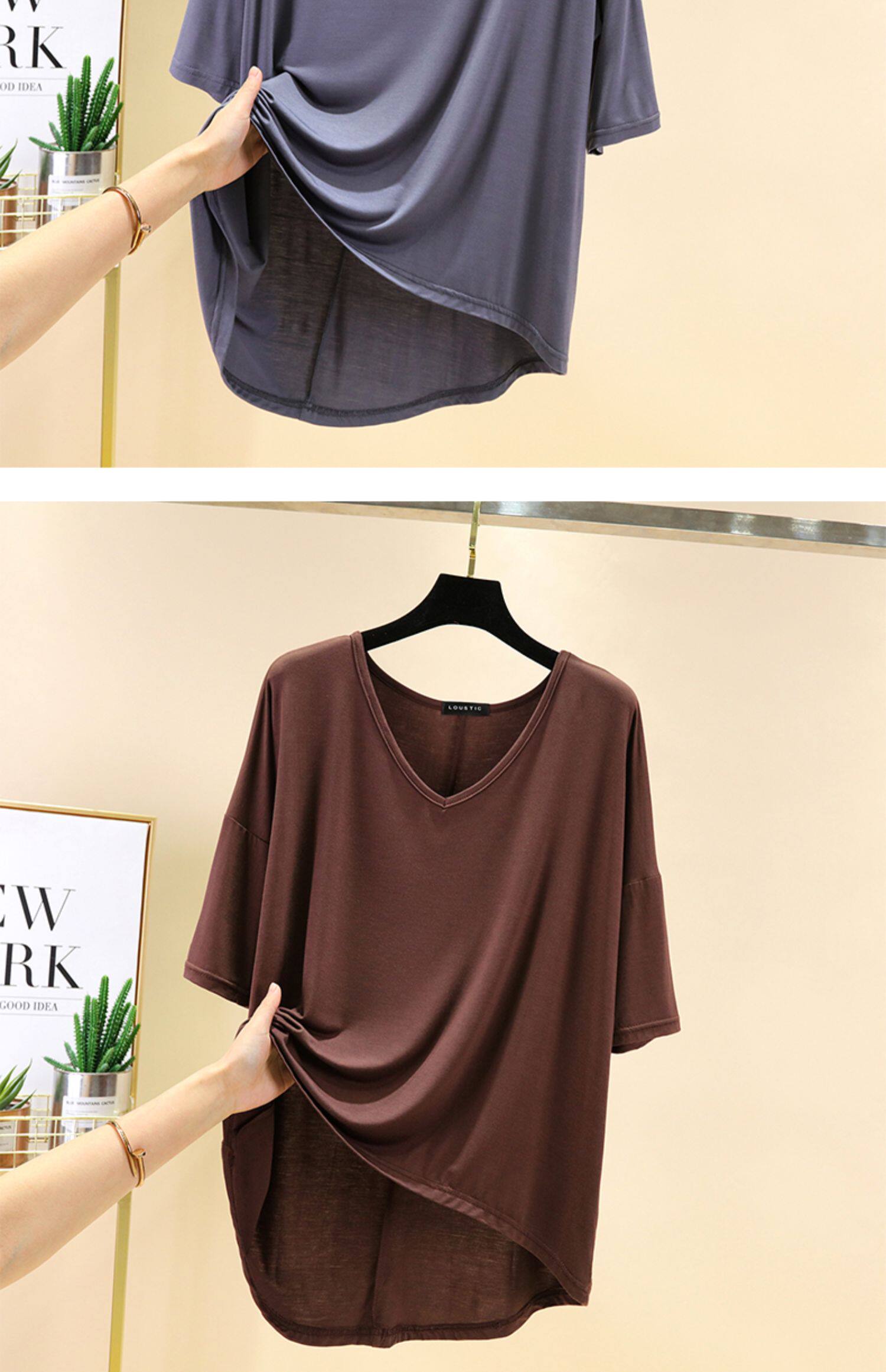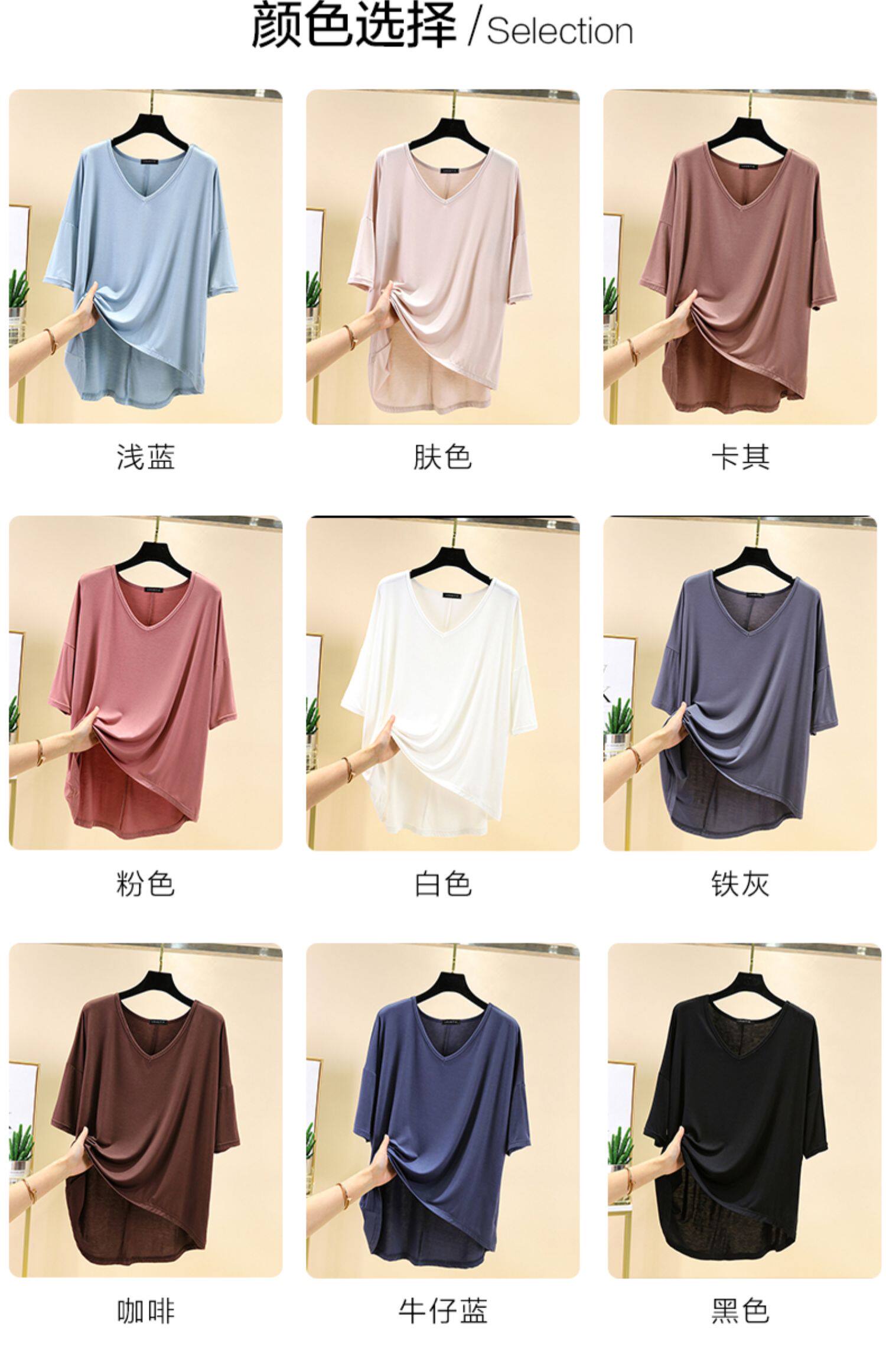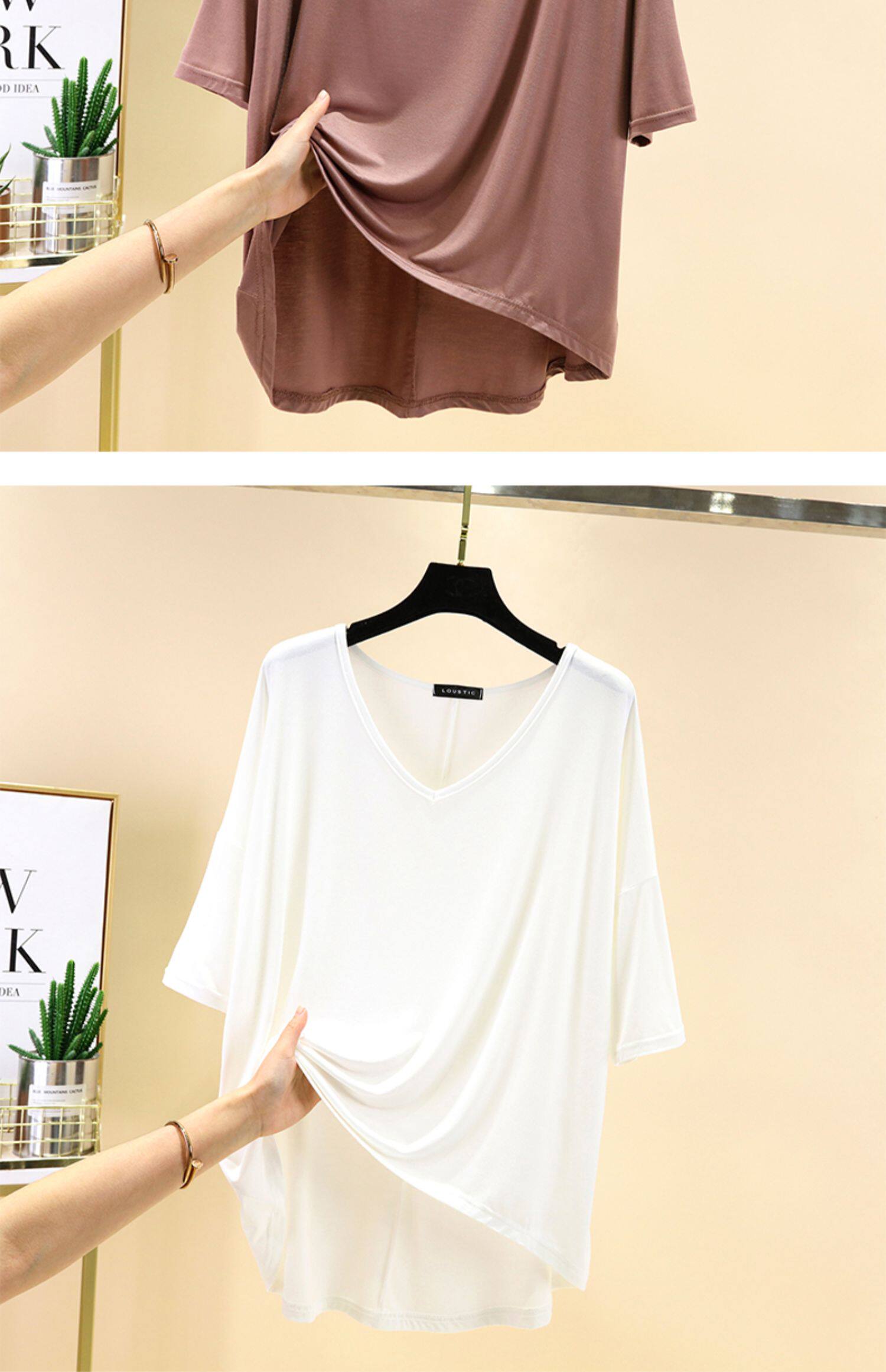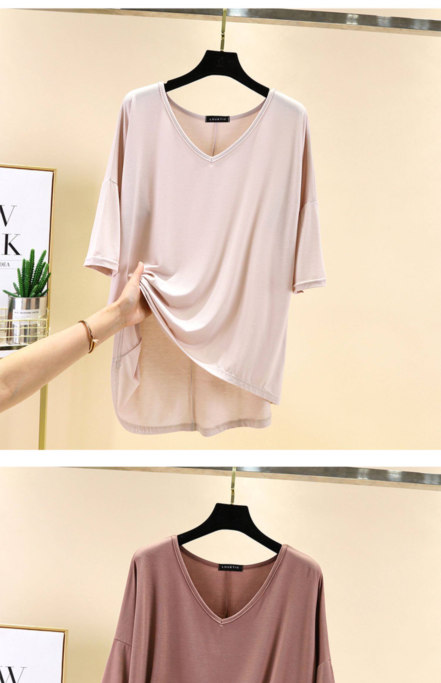 Тонкая базовая приятная телу цветная футболка с коротким рукавом, короткий рукав, V-образный вырез, большой размер