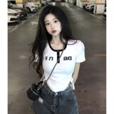 Короткая базовая приятная телу летняя футболка, коллекция 2023, короткий рукав