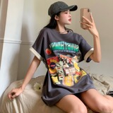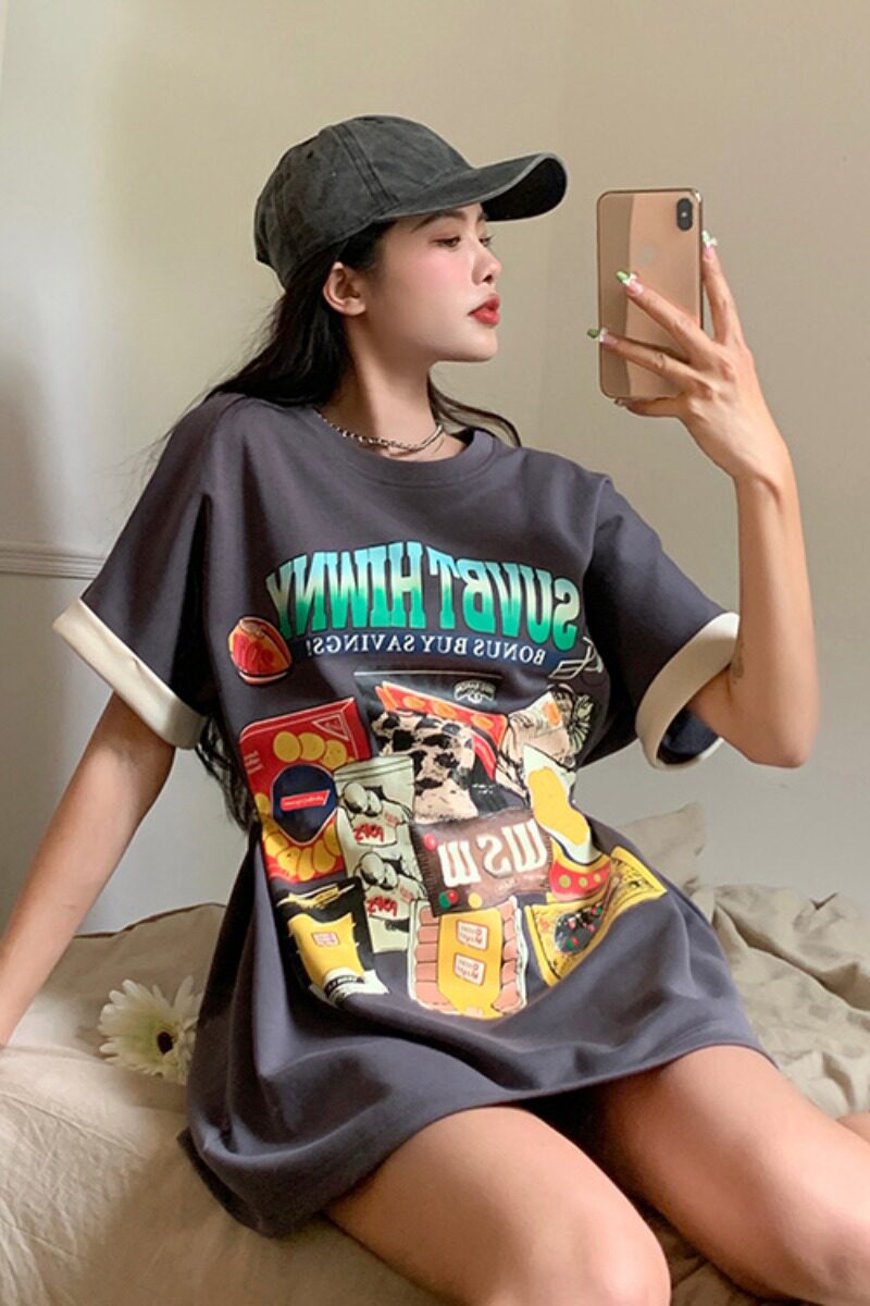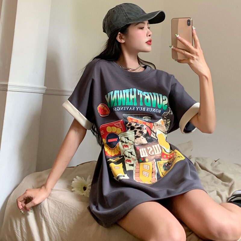 Дизайнерский брендовый длинный корсет, платье-футболка, большой размер, тренд сезона, принт, средней длины, короткий рукав