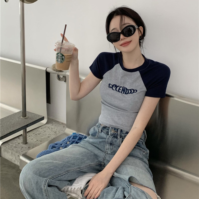 Ретро летняя приталенная короткая футболка с коротким рукавом, в американском стиле