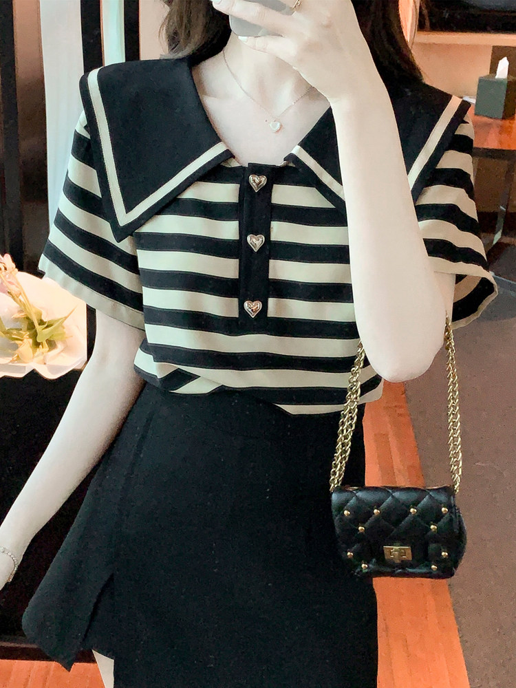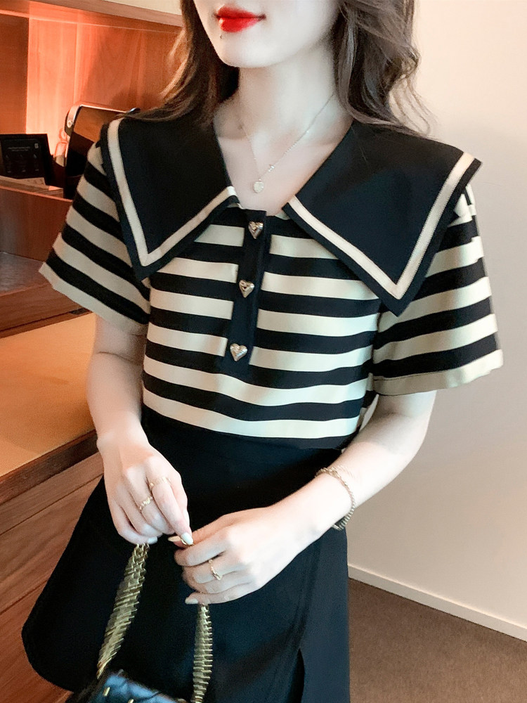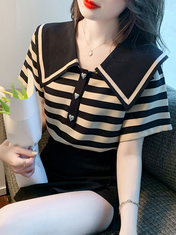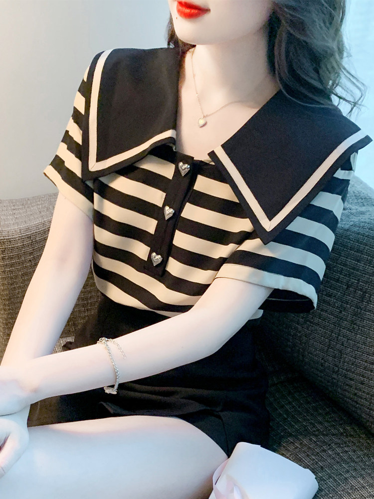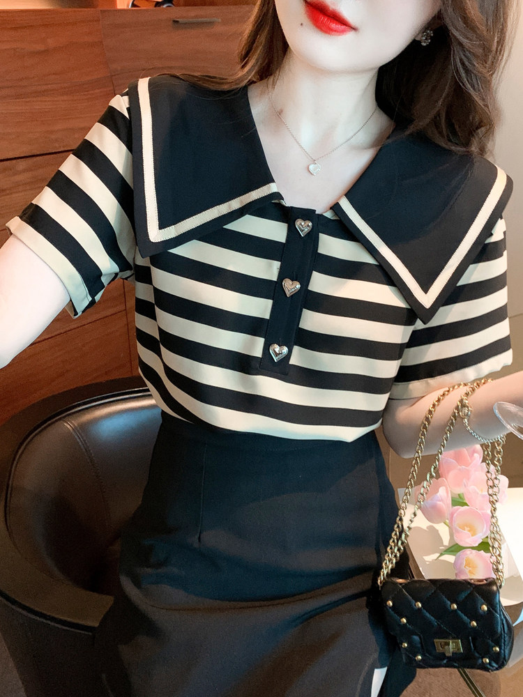 Кукла, шифоновая летняя футболка, в западном стиле, кукольный воротник, короткий рукав, 2024 года, новая коллекция